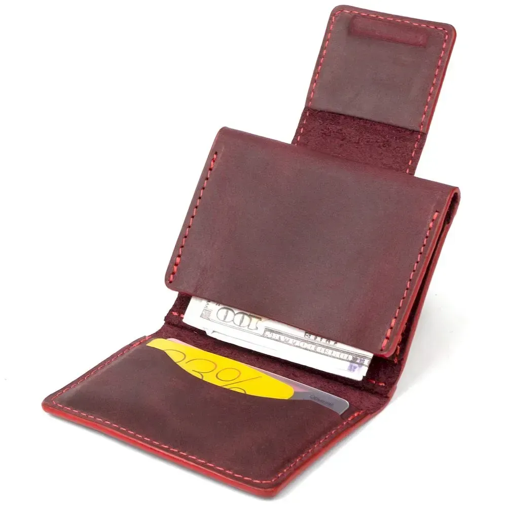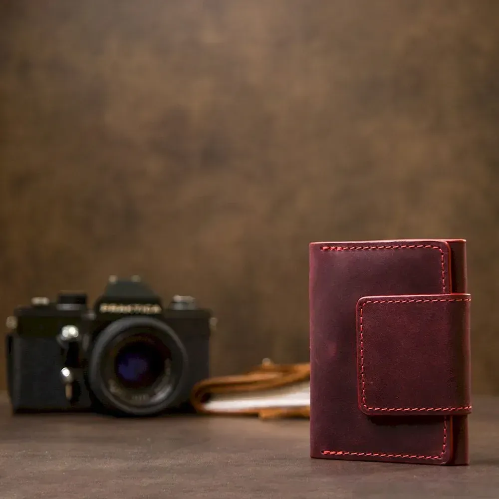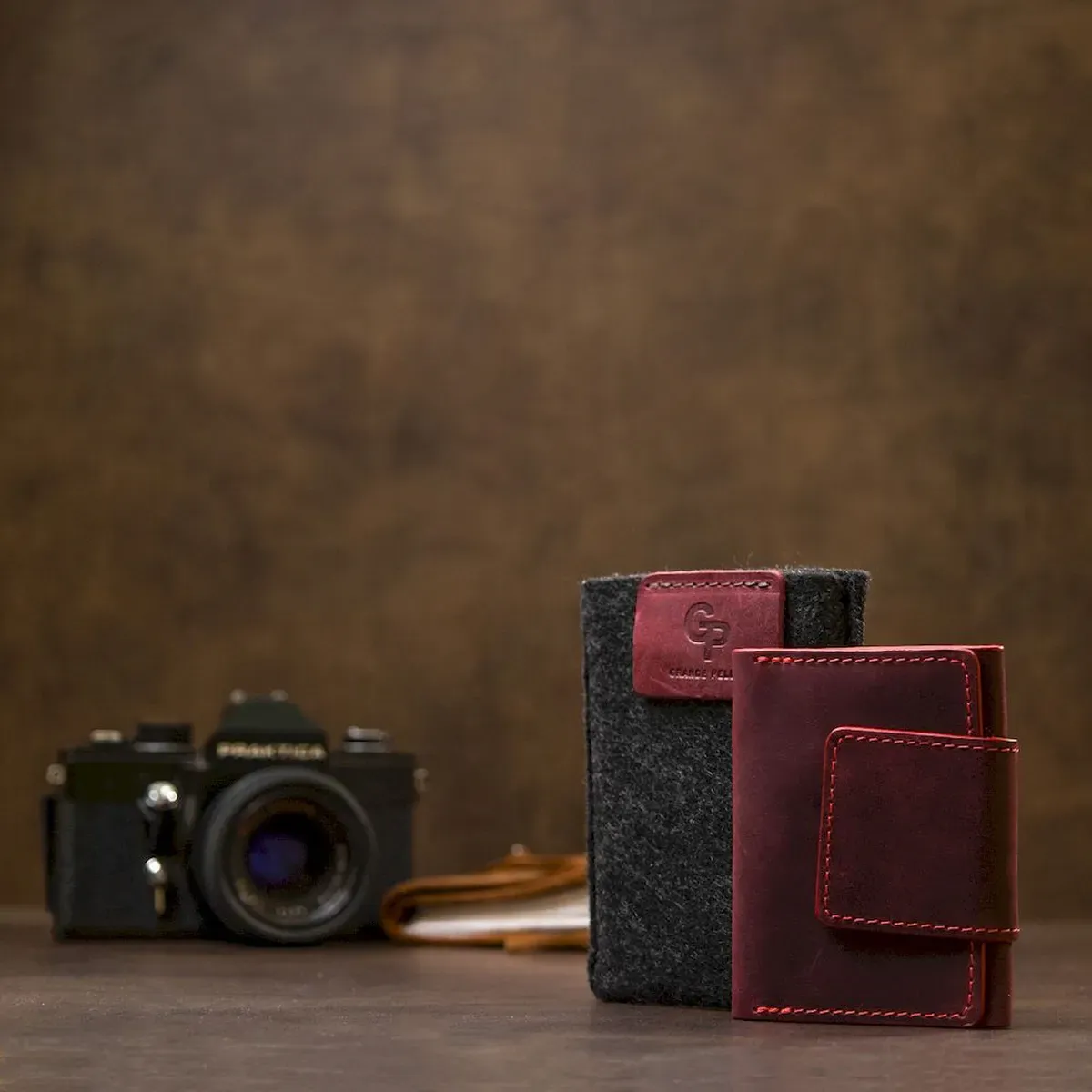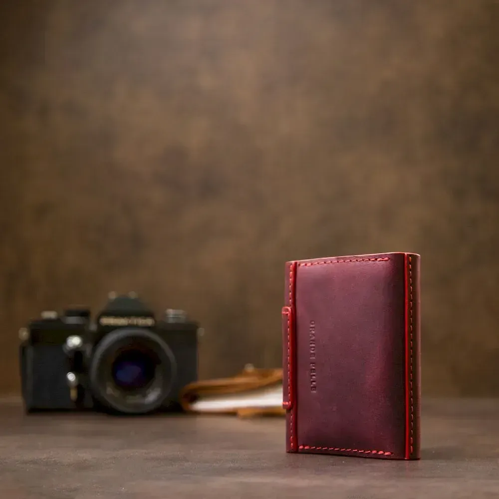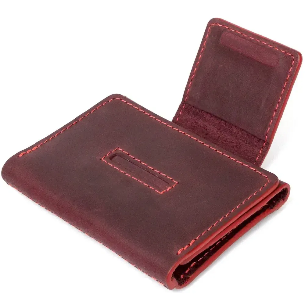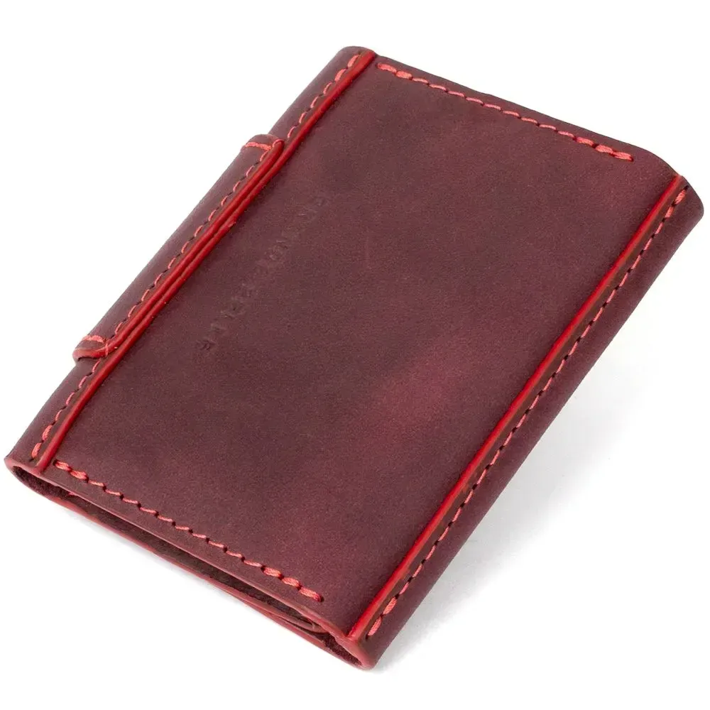 Винтажная кожаная визитница GRANDE PELLE 11408 Бордовый