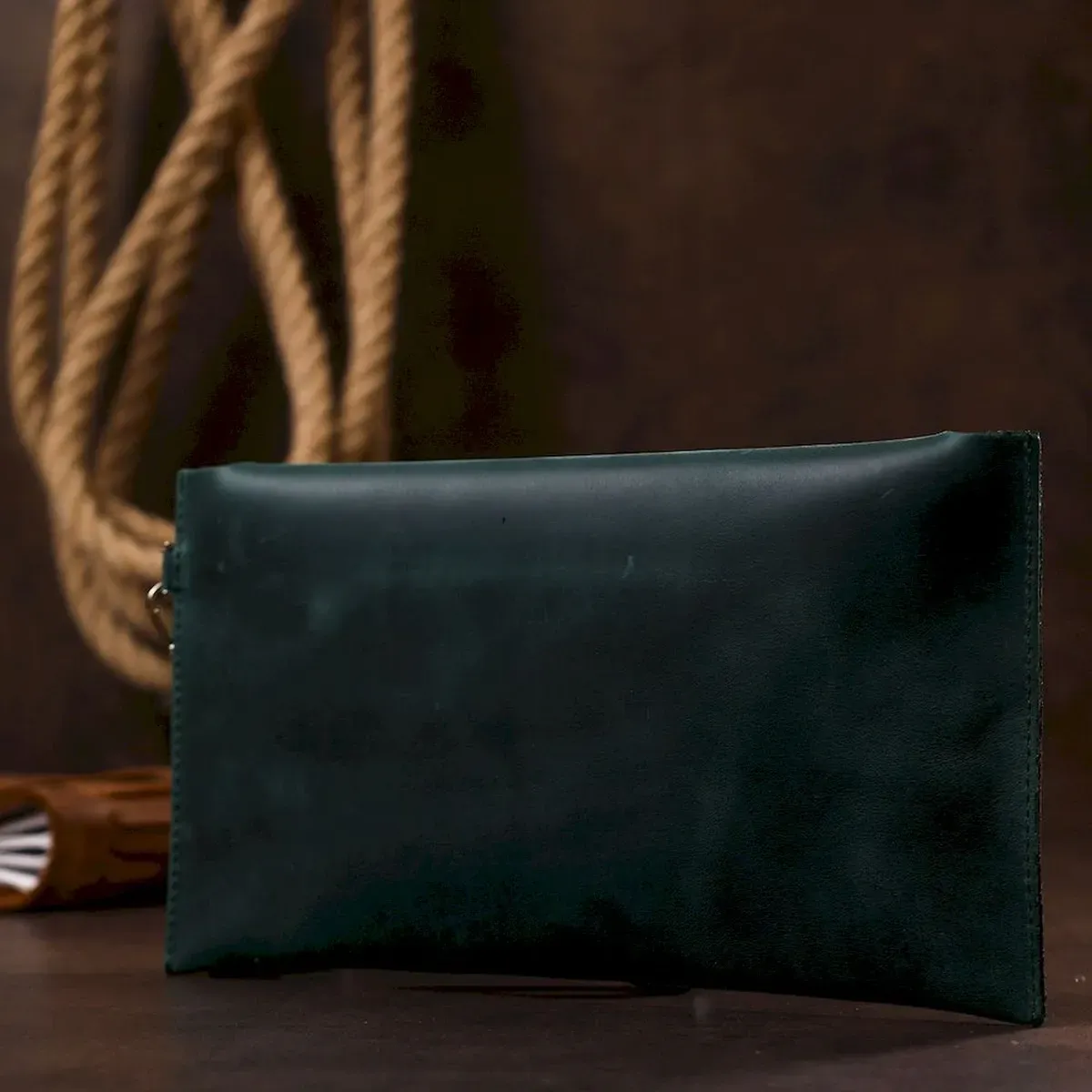 Практичная и удобная в использовании тревел-косметичка от украинского производителя. Выполнена из натуральной высококлассной кожи с отменными характеристиками и показателями прочности. Цвет изделия – матовый темно-зеленый, фактура – гладкая и очень приятная на ощупь. Благодаря, съёмному ремешку превращается в клатч.