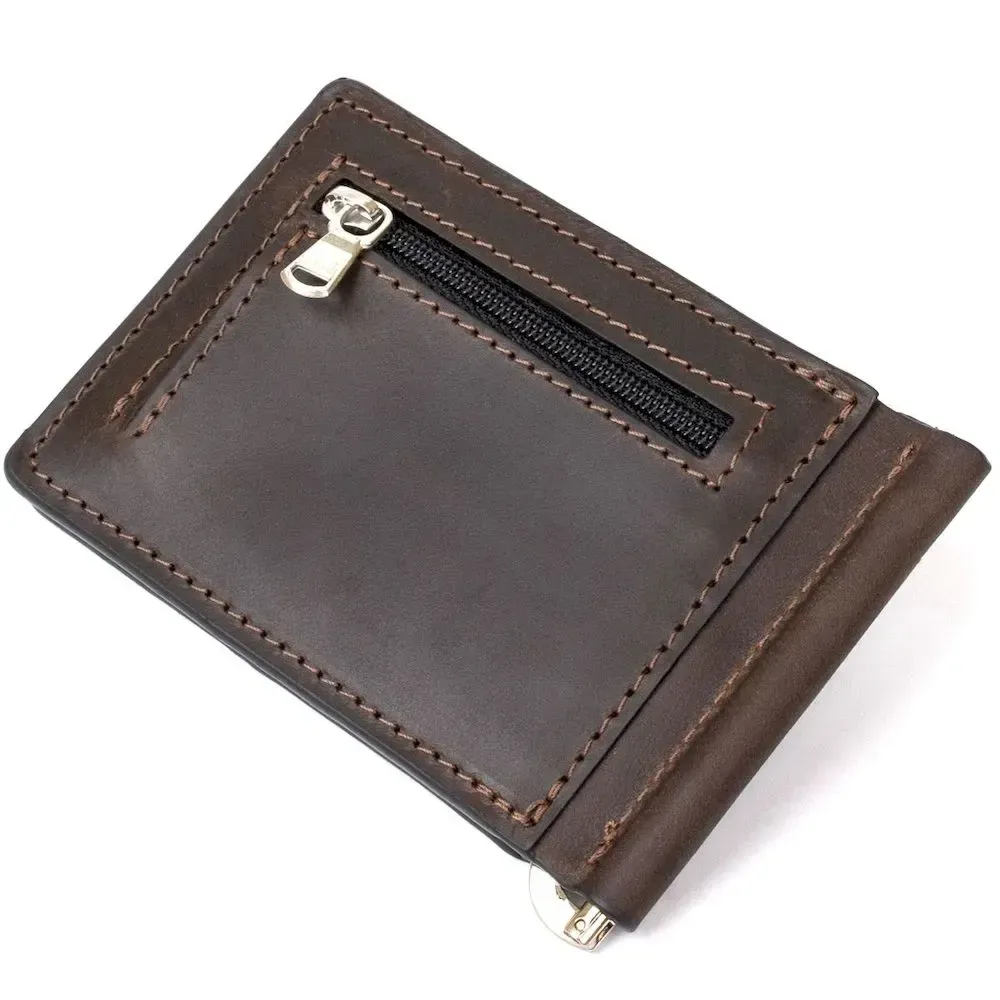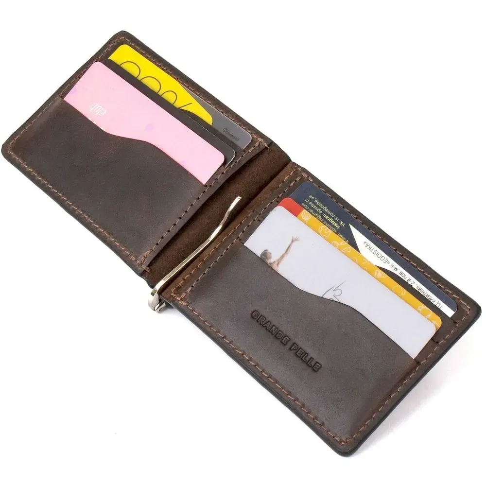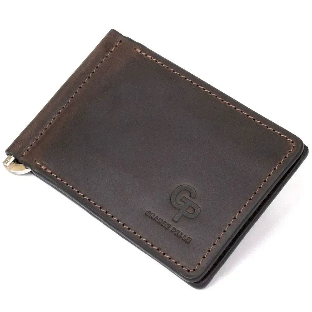 Винтажный кожаный зажим для денег GRANDE PELLE 11473 Коричневый