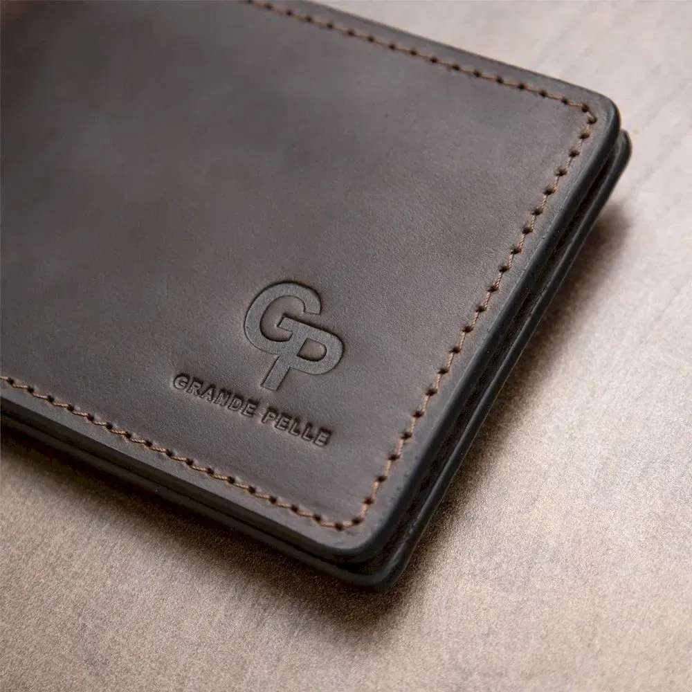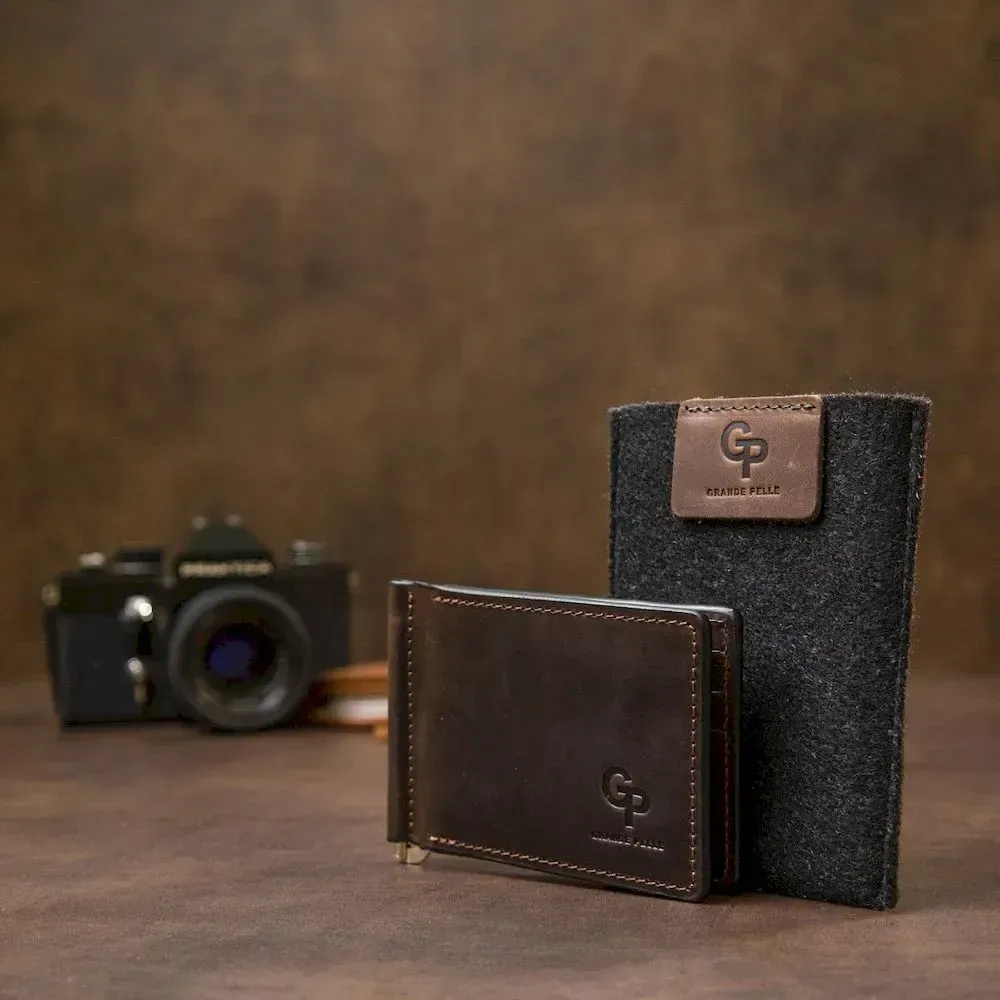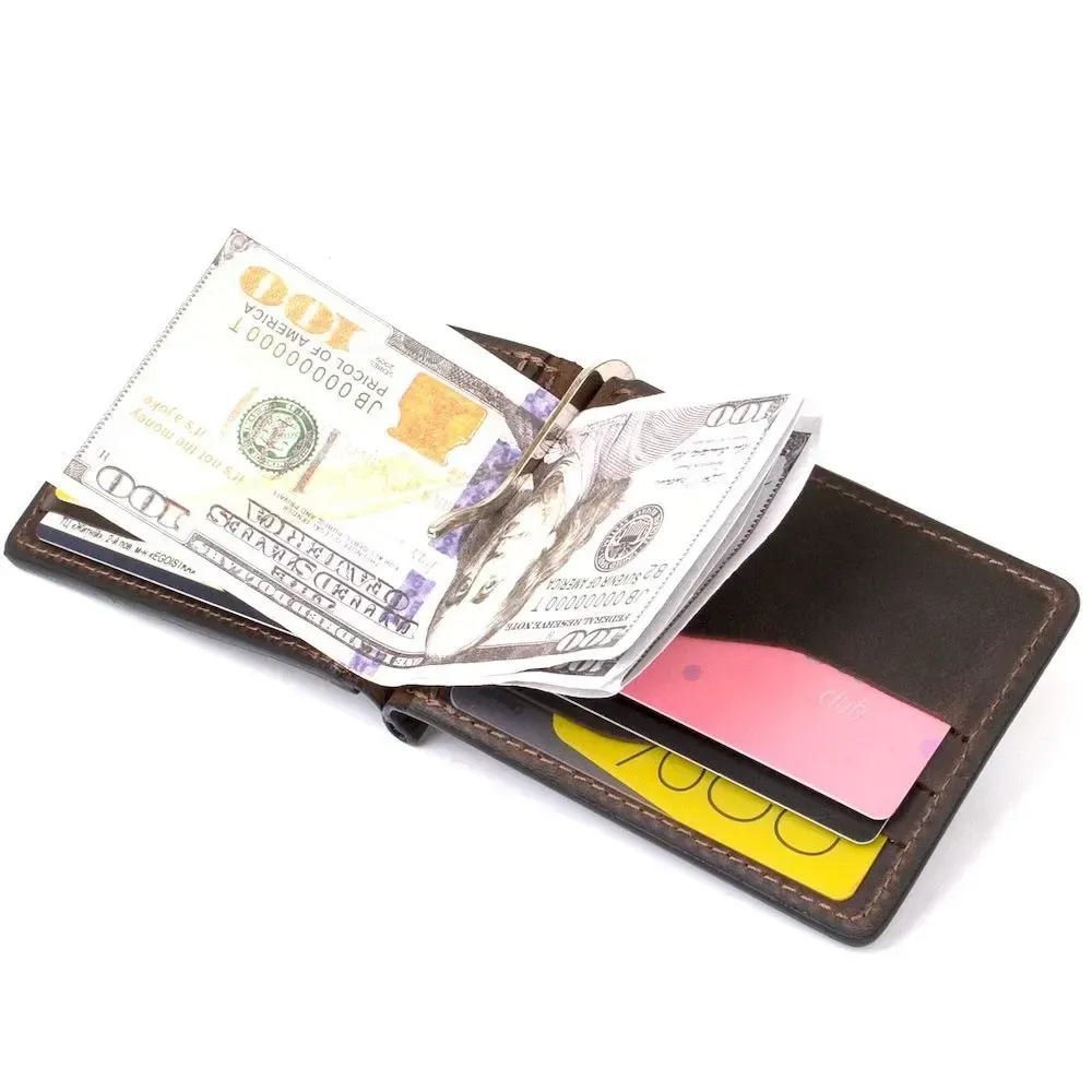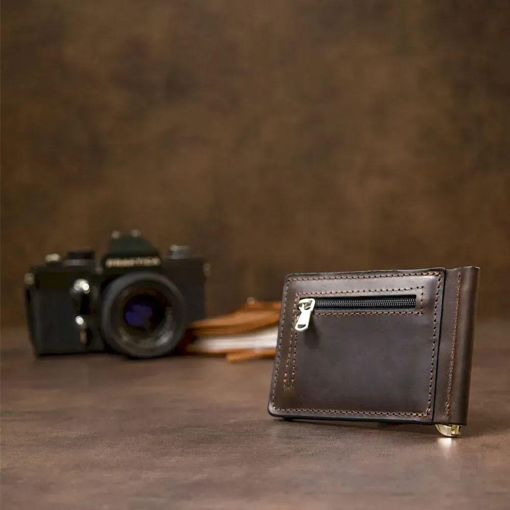Винтажный кожаный зажим для денег GRANDE PELLE 11473 Коричневый