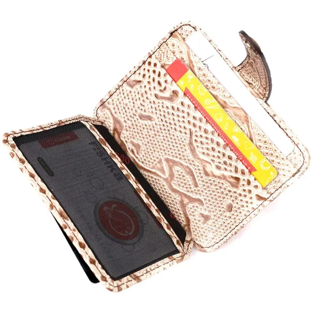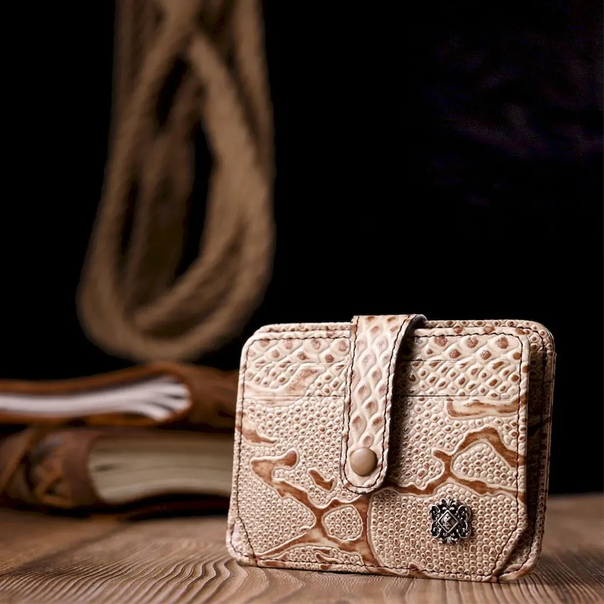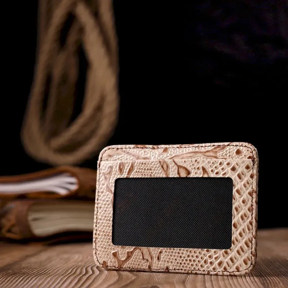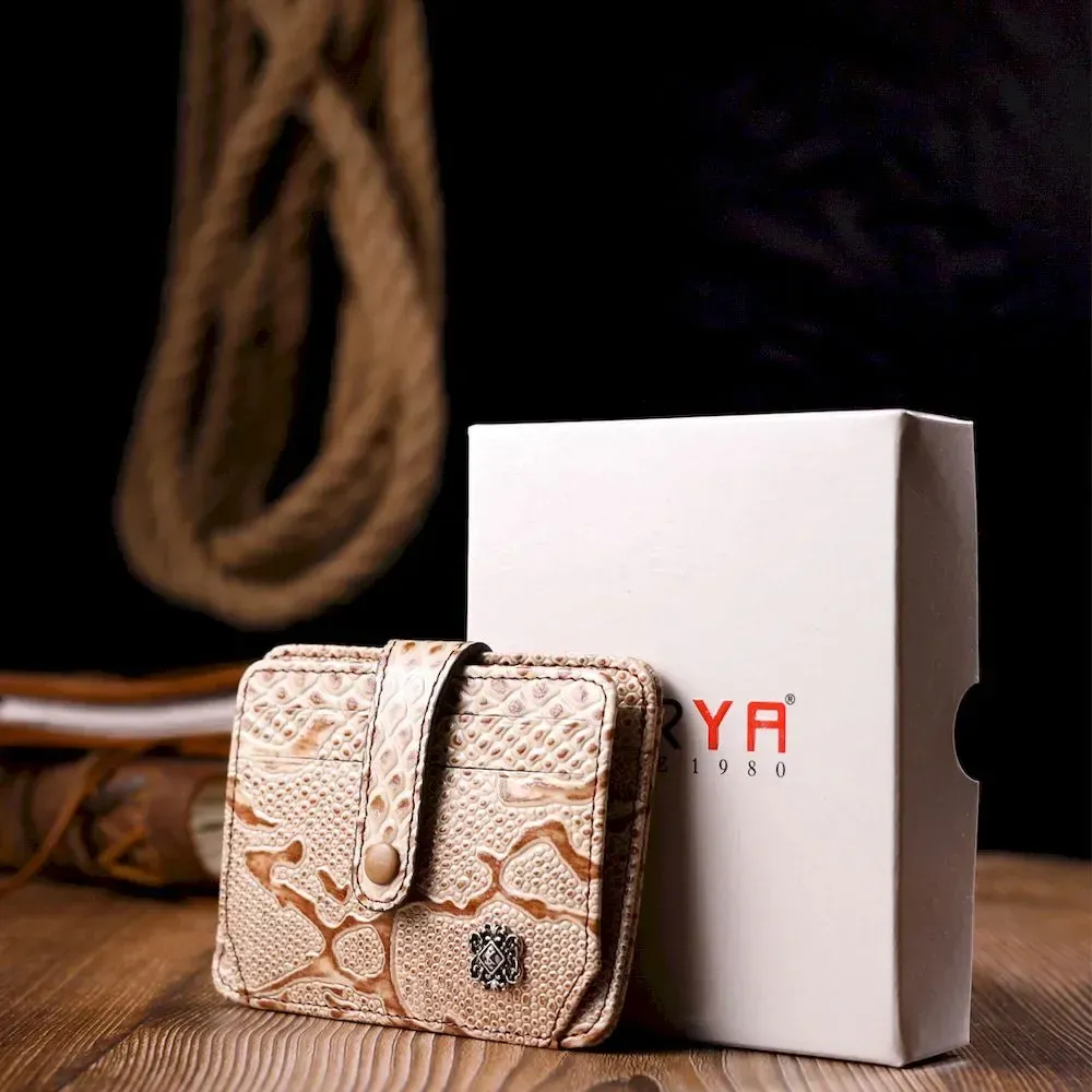 Визитница из натуральной фактурной кожи под змею KARYA 20962 Бежевый
