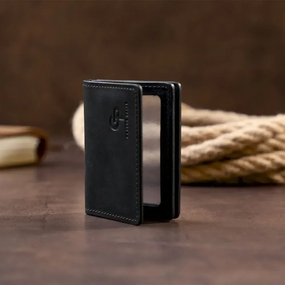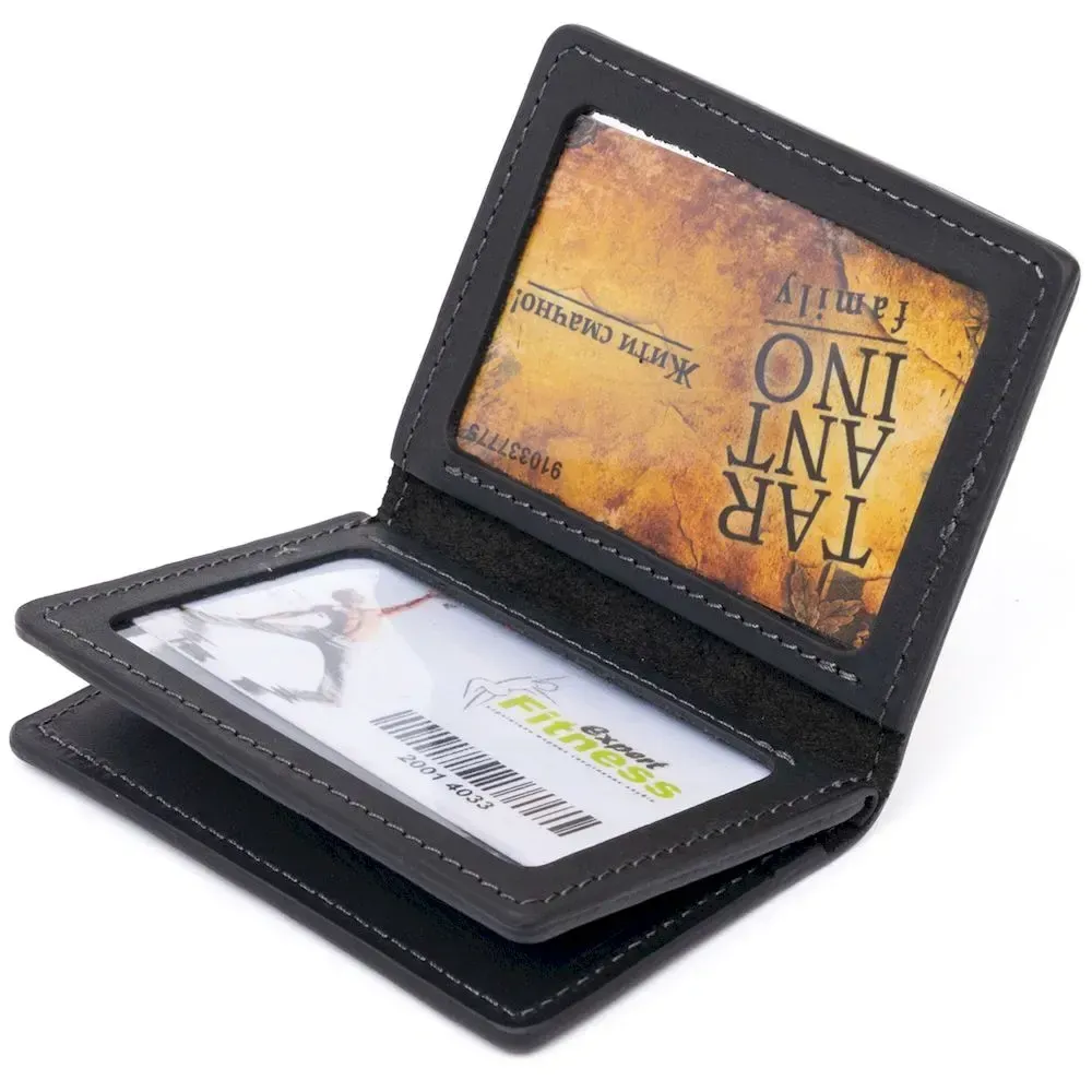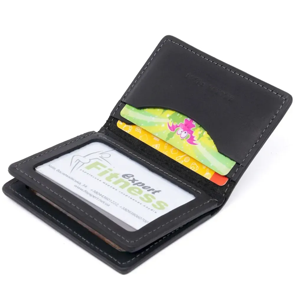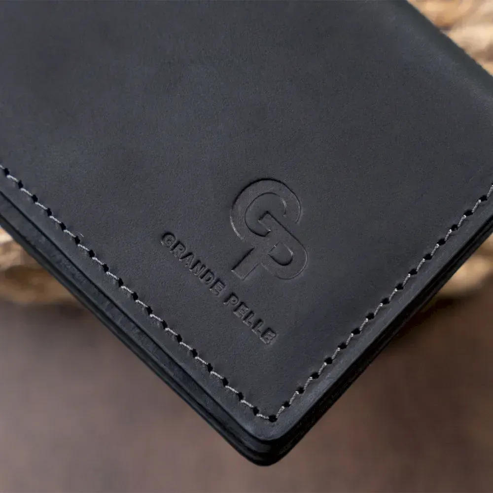 Визитница с обложкой для ID-паспорта из натуральной кожи GRANDE PELLE 11291 Черная