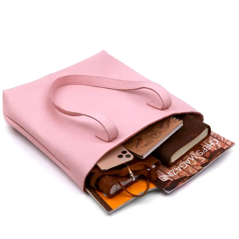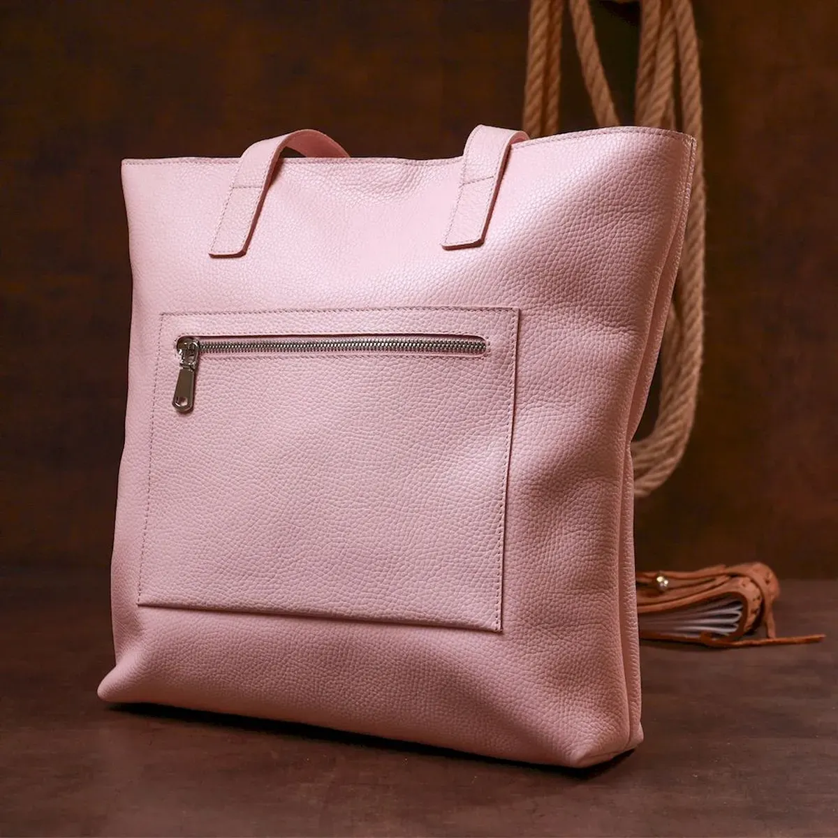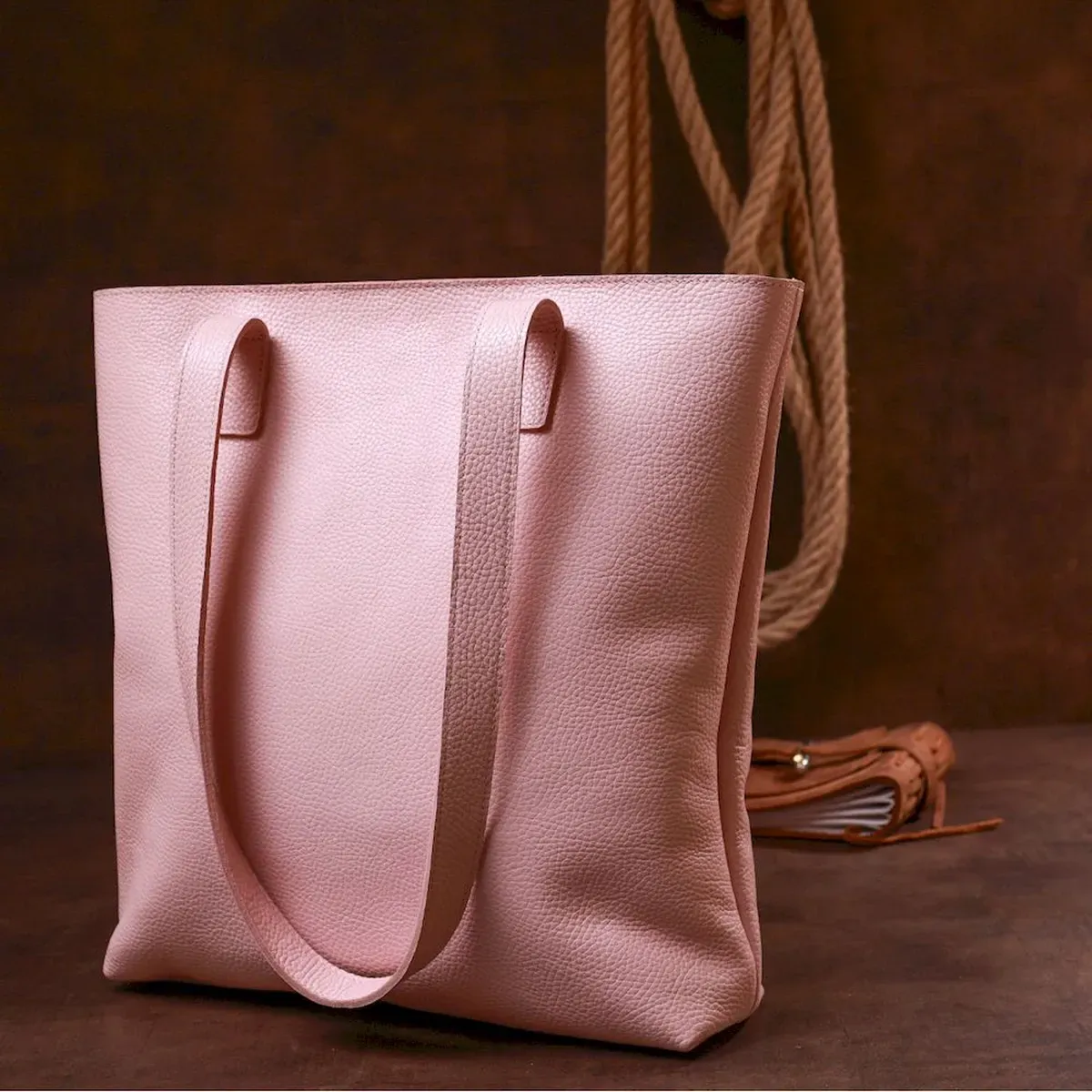 Вместительная кожаная женская сумка-шоппер Shvigel 16356 Розовый