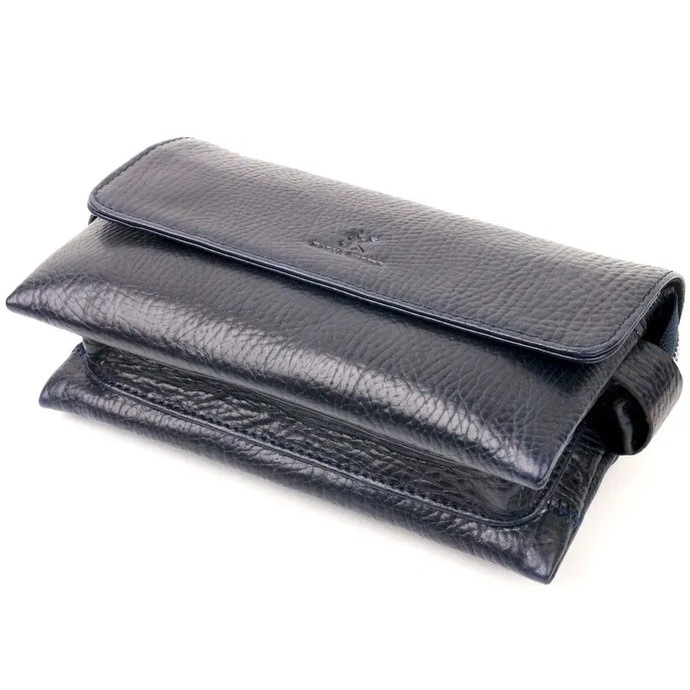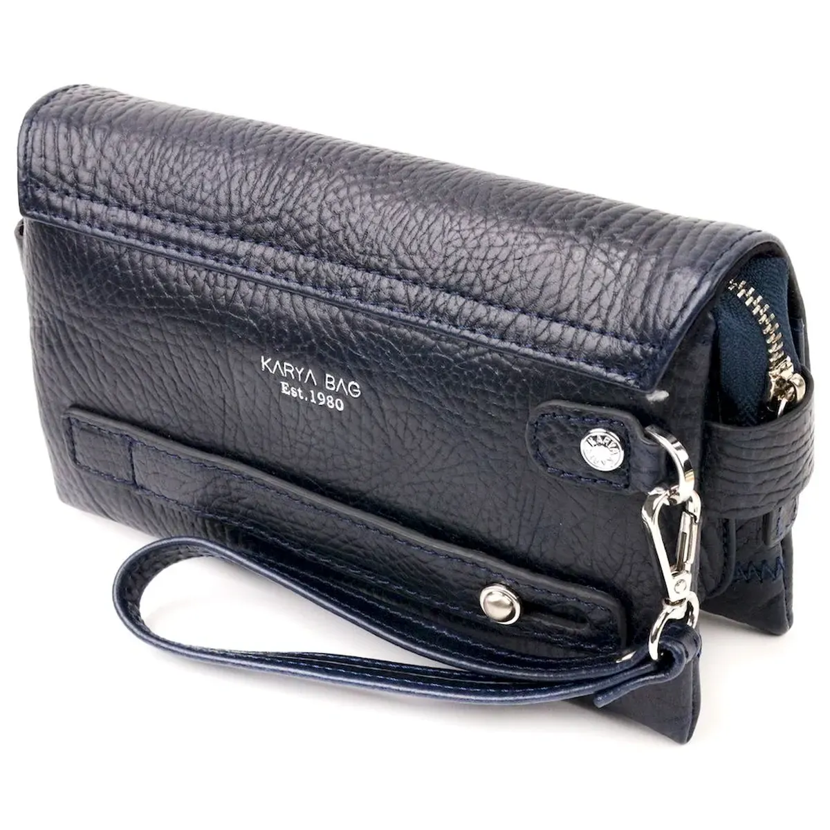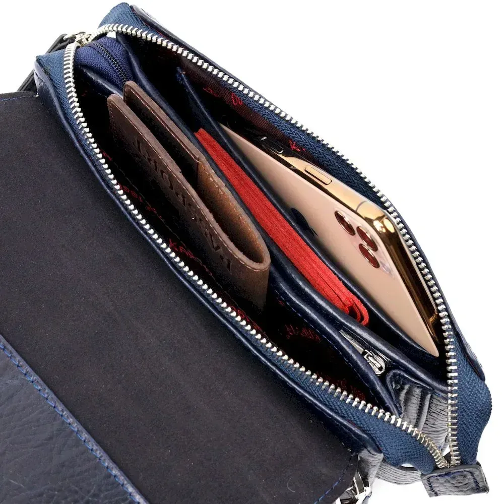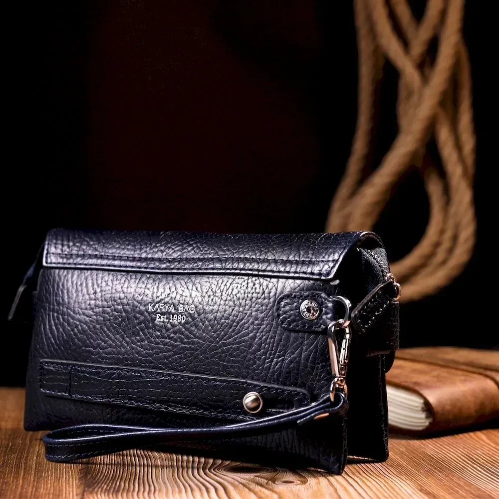 Вместительная мужская барсетка с клапаном KARYA 20909 кожаная Синий