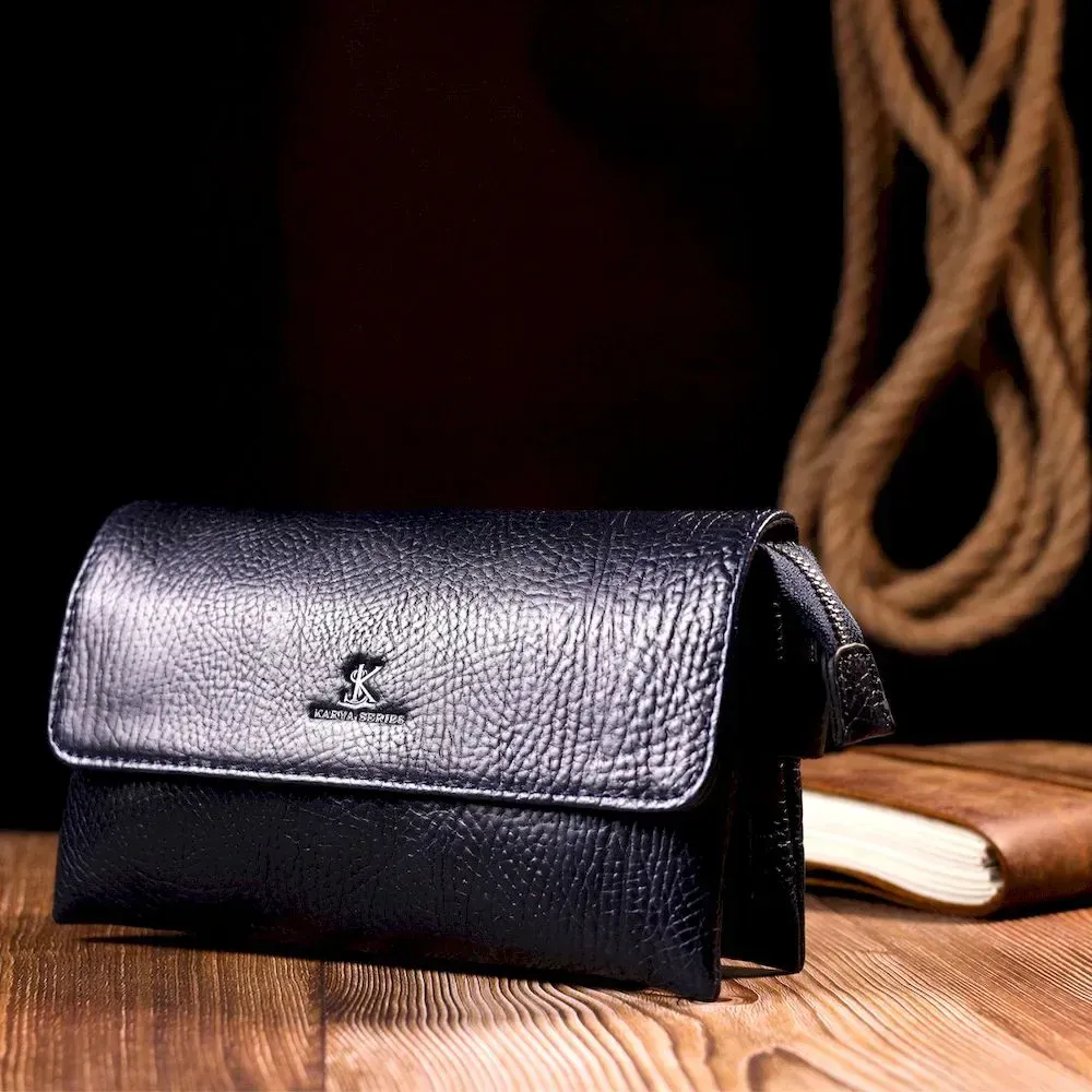 - мужской клатч упакован в фирменный текстильный мешок Karya.