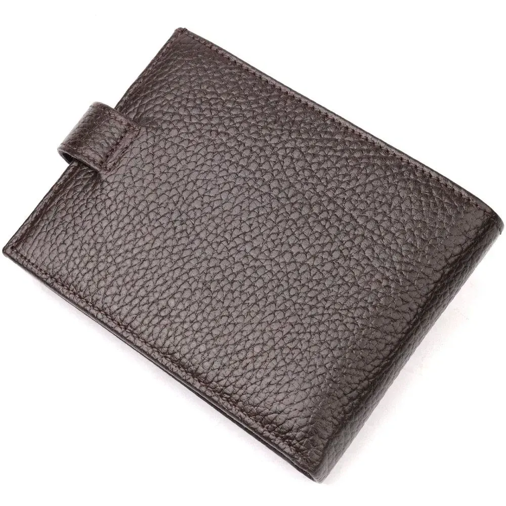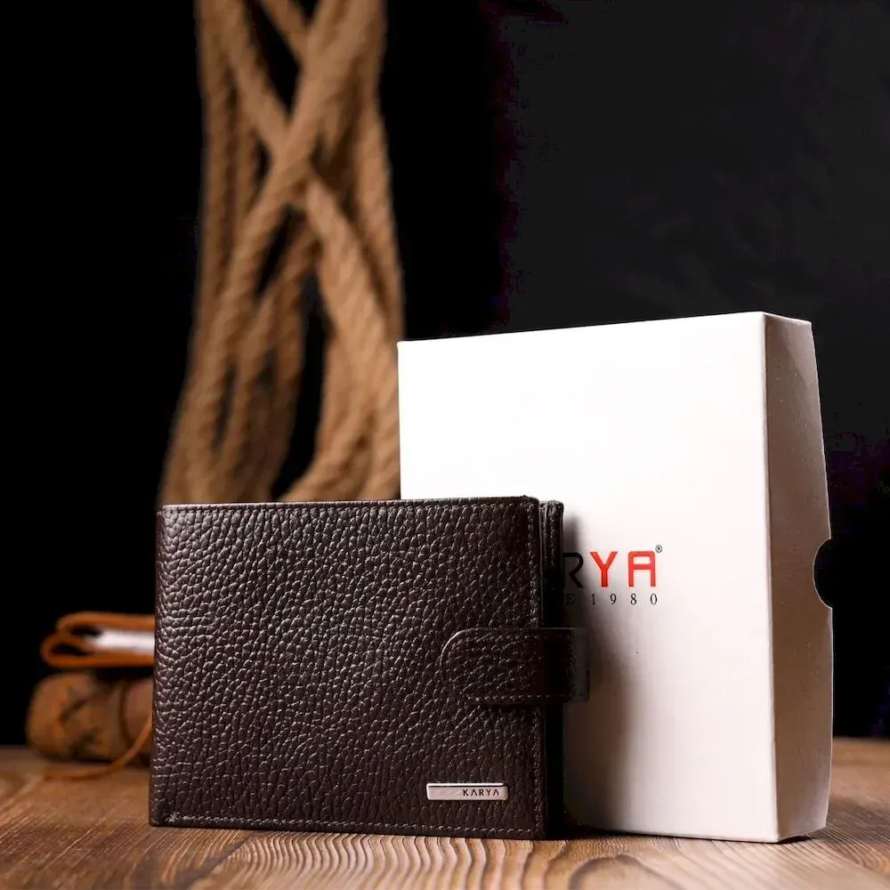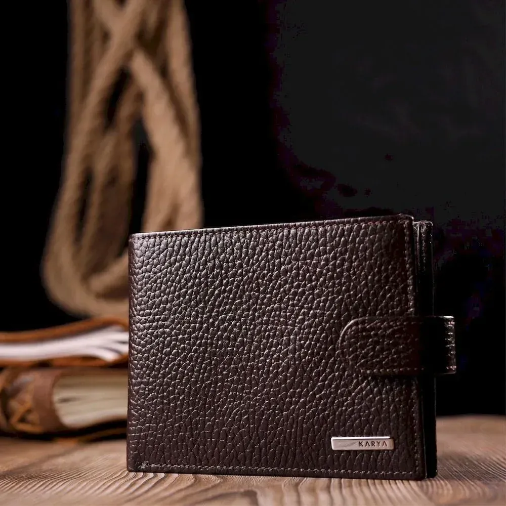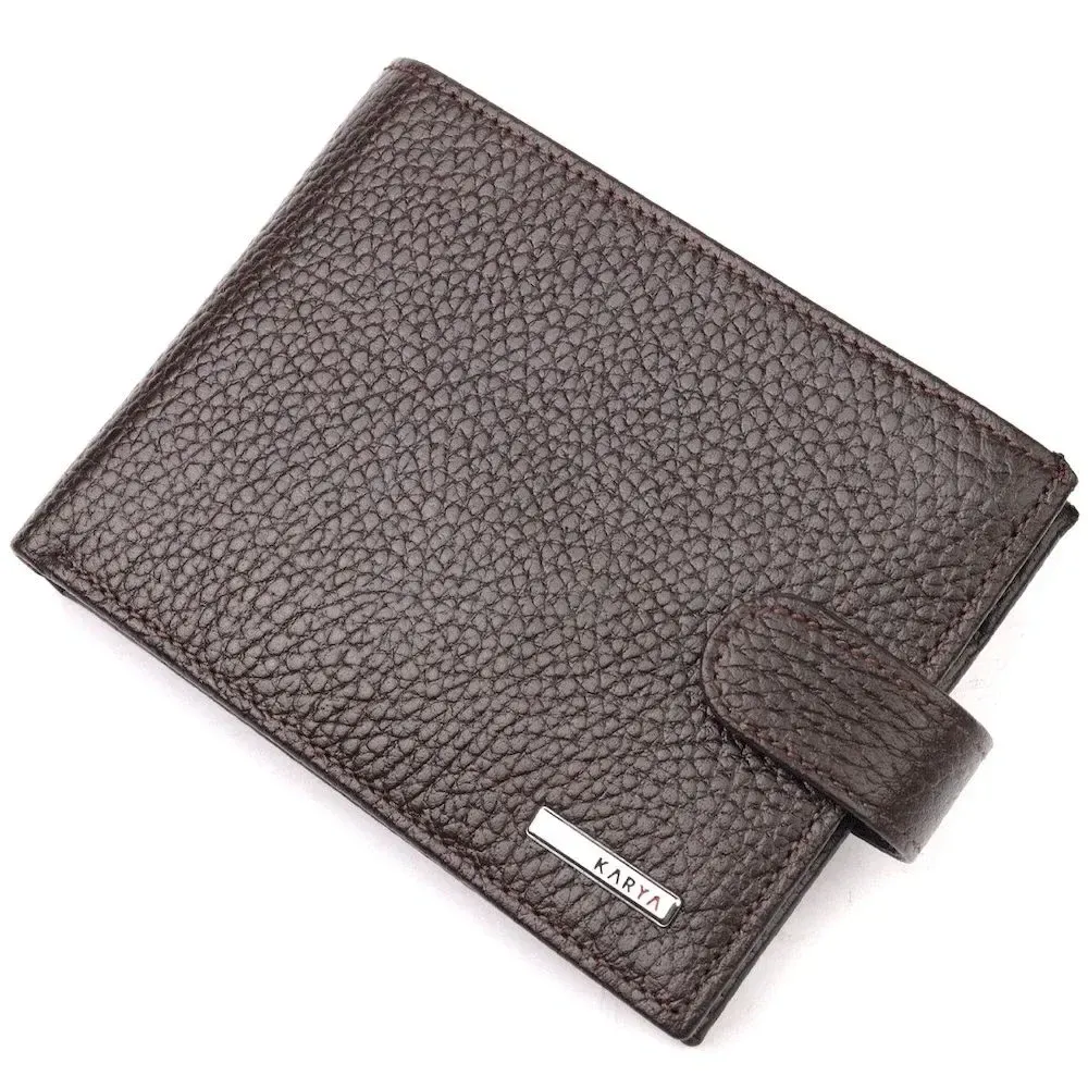 Вместительное мужское портмоне с хлястиком из натуральной кожи KARYA 21081 Коричневый