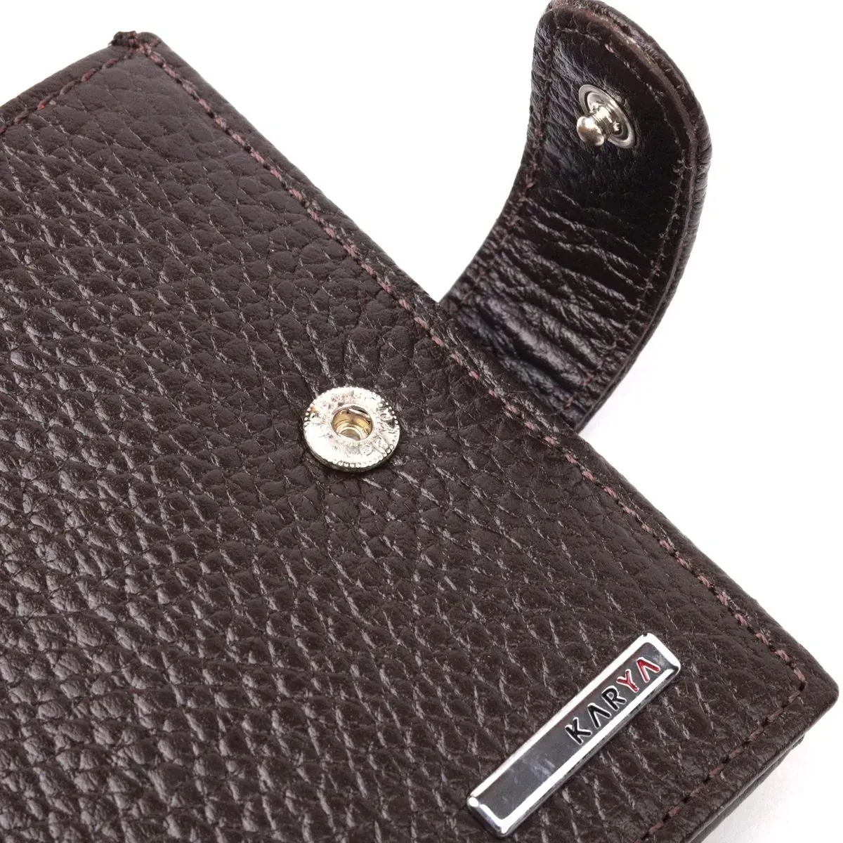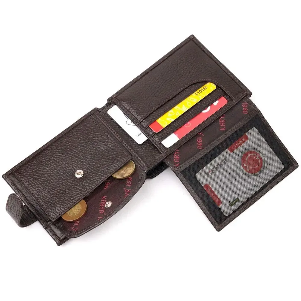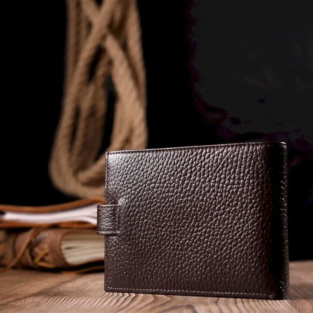 Вместительное мужское портмоне с хлястиком из натуральной кожи KARYA 21081 Коричневый