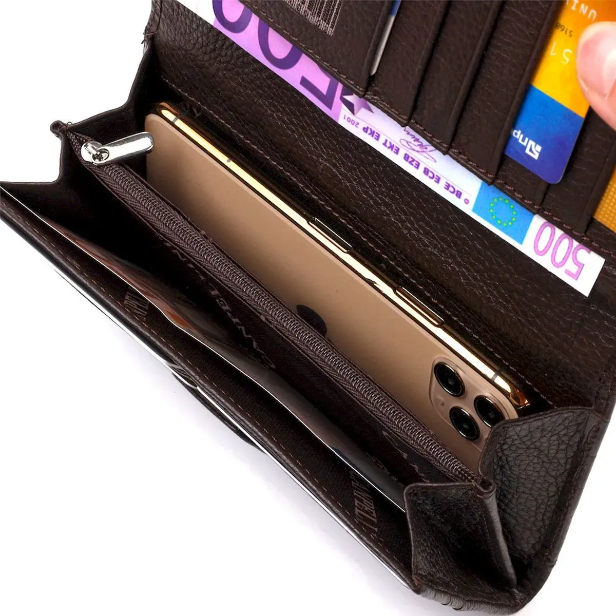- основное отделение для купюр с карманом-перегородкой на молнии;