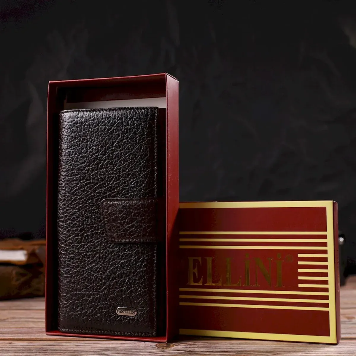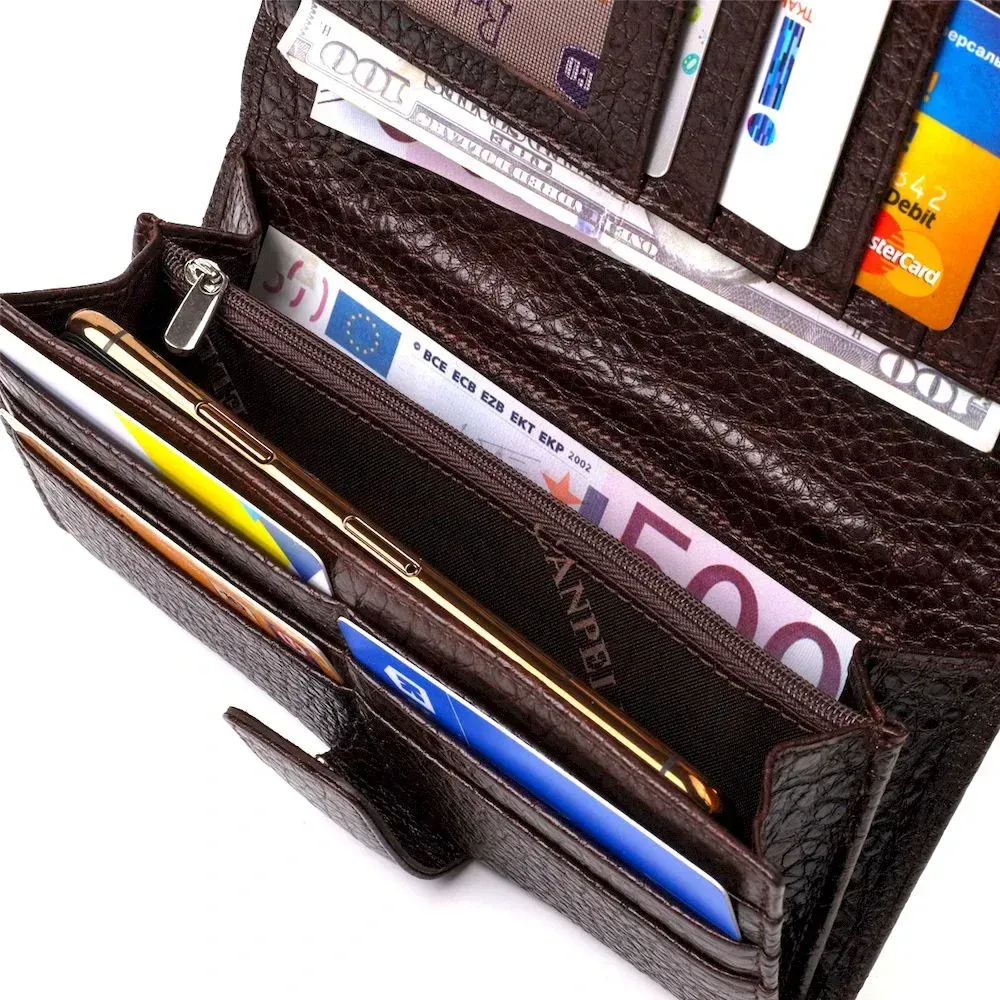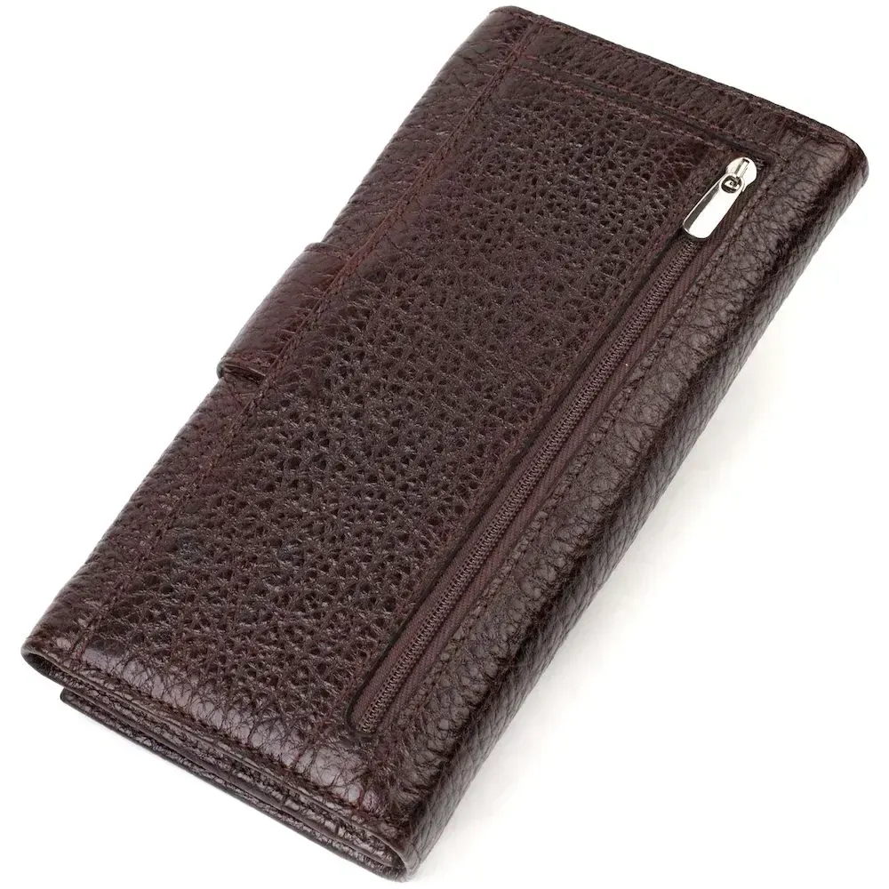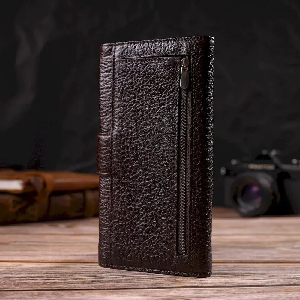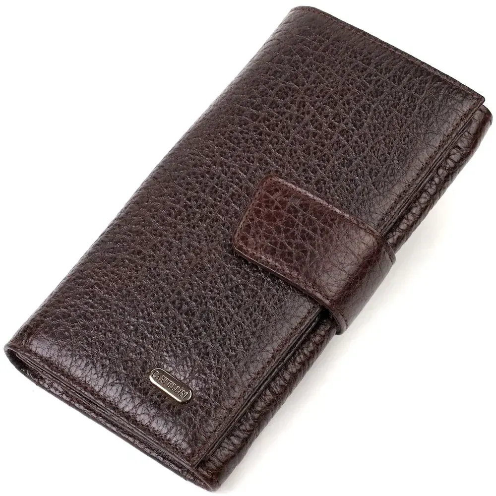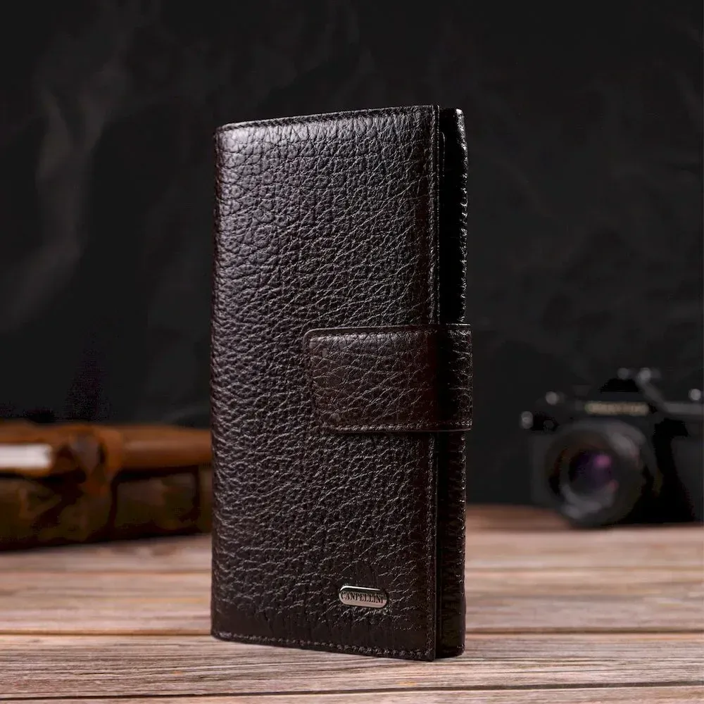 Вместительное вертикальное мужское портмоне из натуральной крупнозернистой кожи CANPELLINI 21840 Коричневое