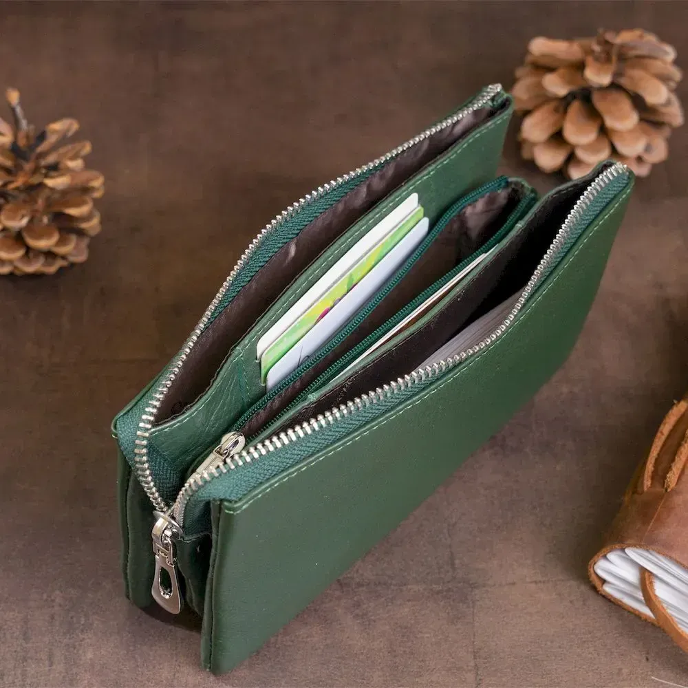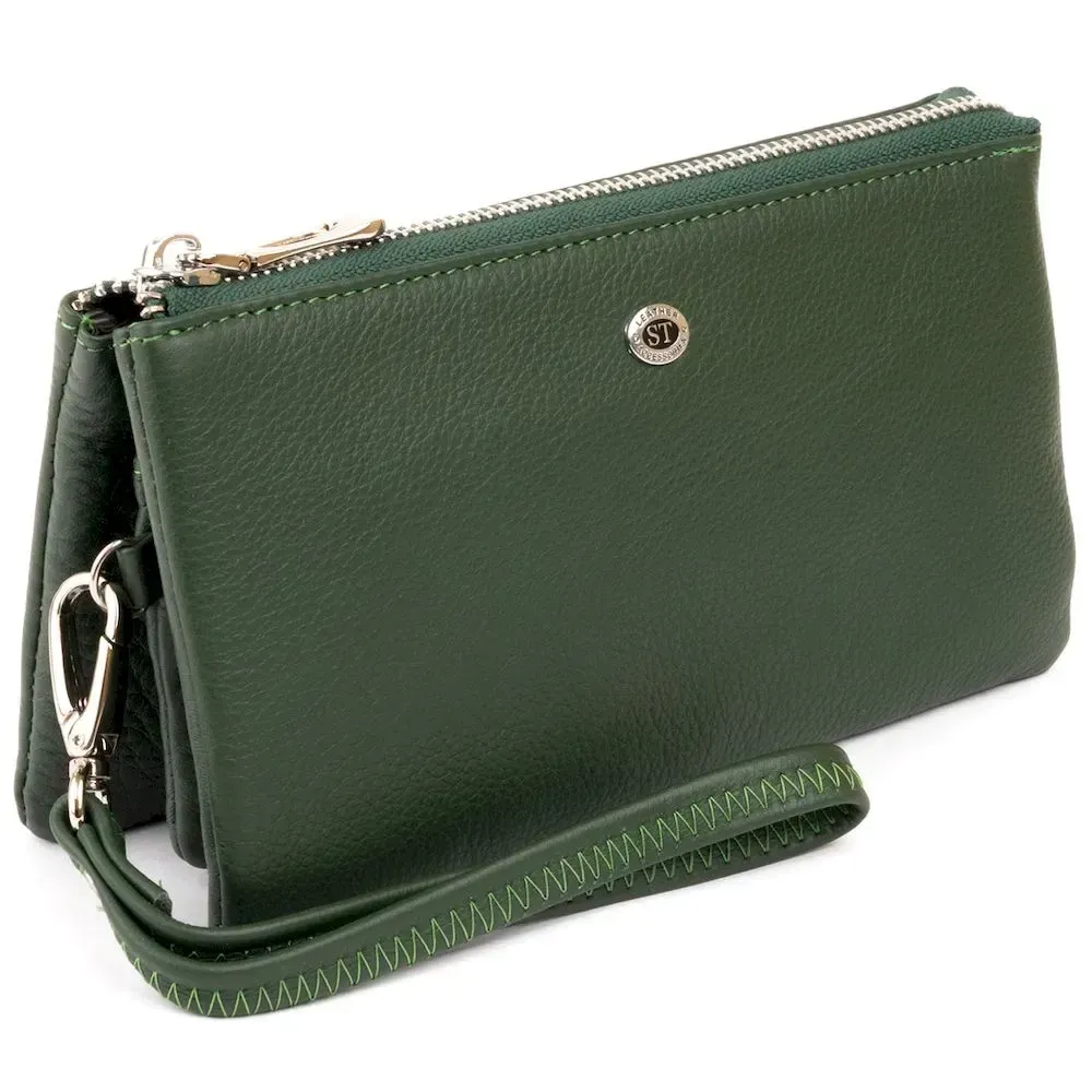 Вместительный клатч из двух частей женский ST Leather 19253 Зеленый