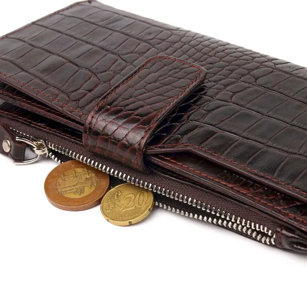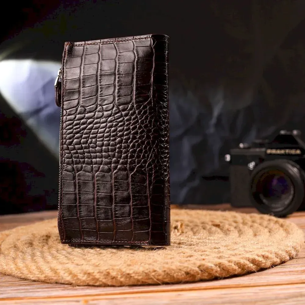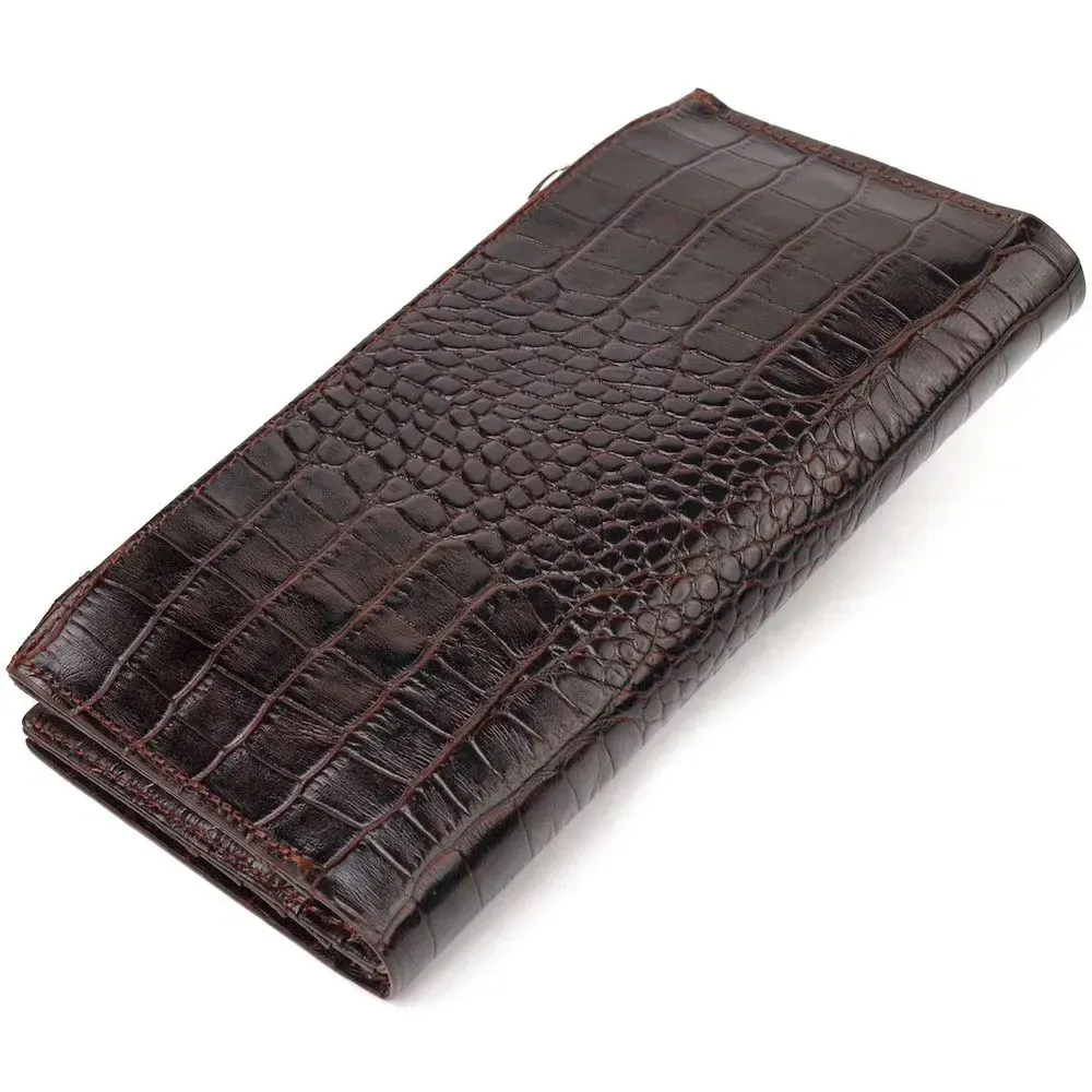 Вместительный кошелек из натуральной кожи с тиснением под крокодила CANPELLINI 21637 Коричневый