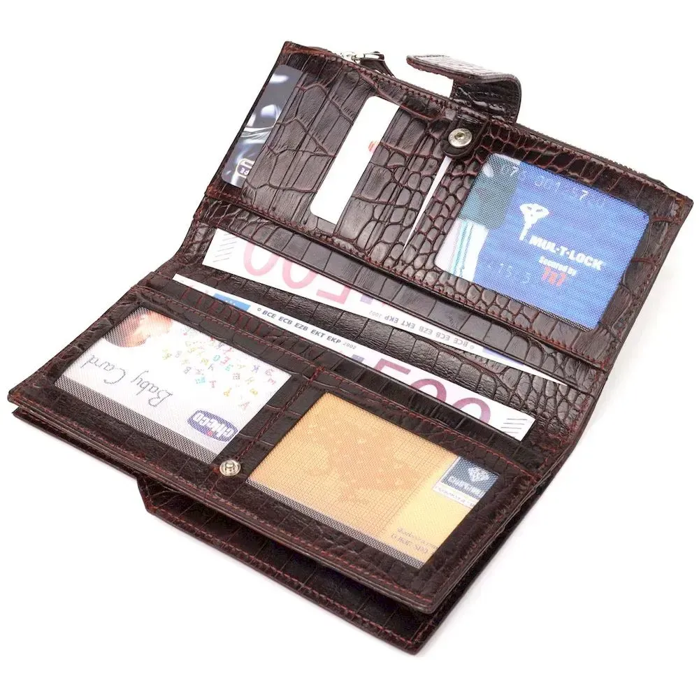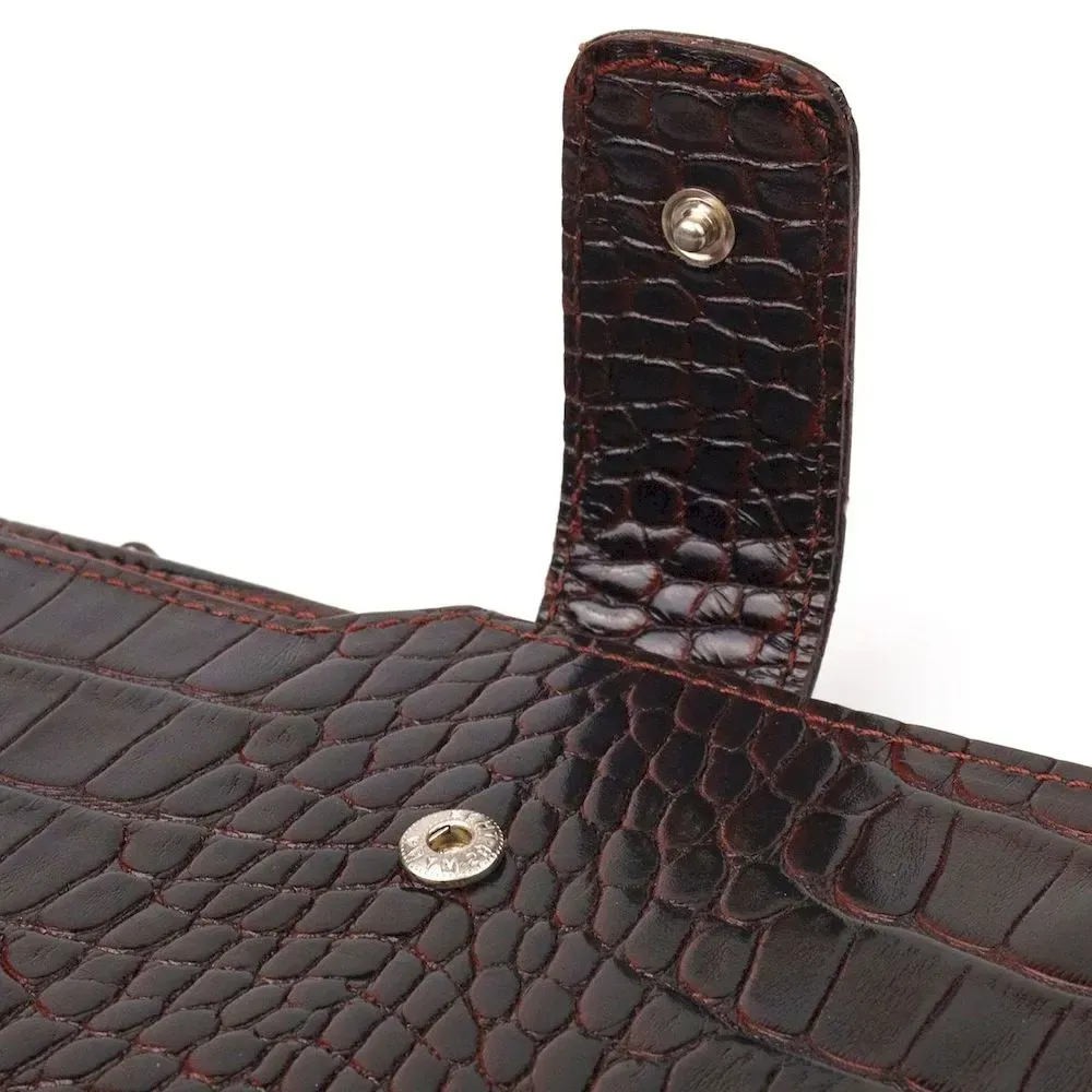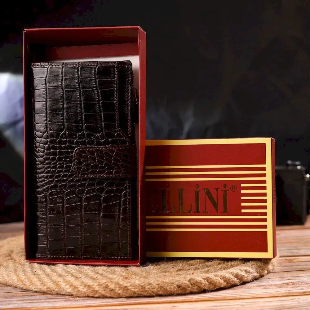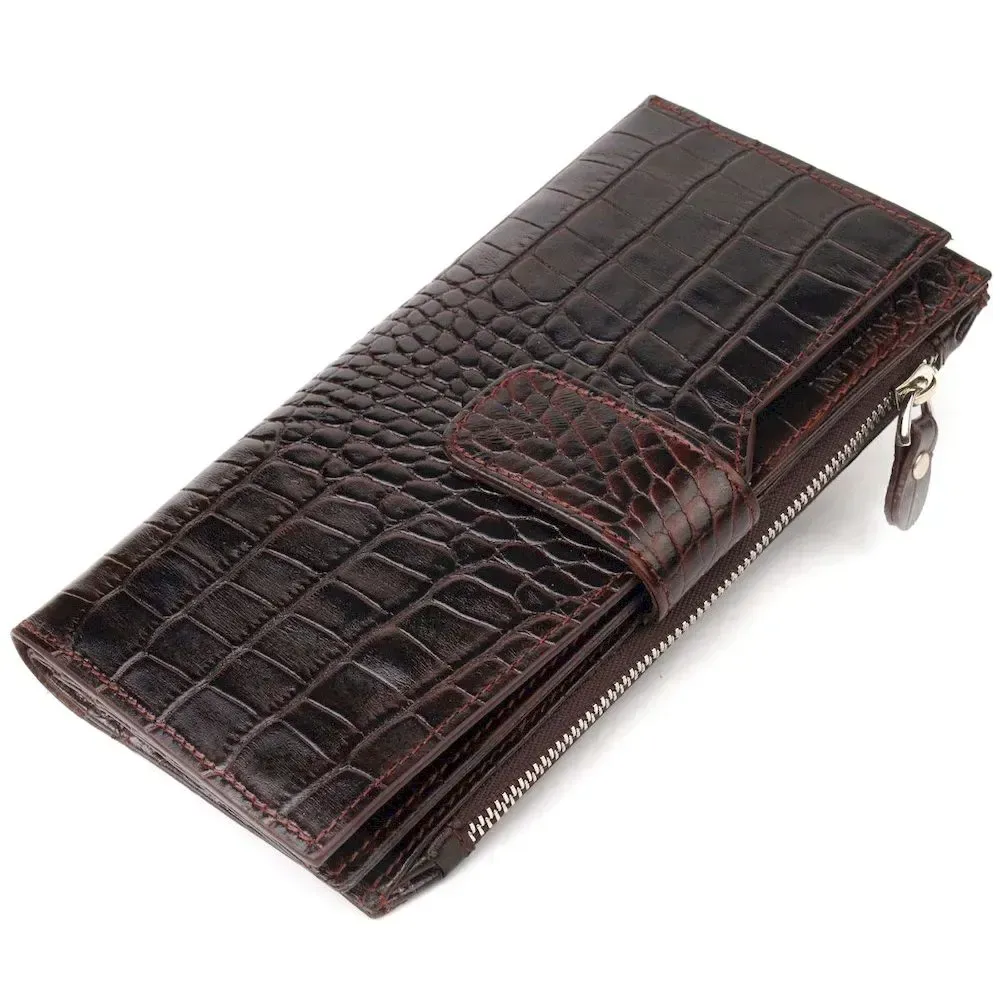 Вместительный кошелек из натуральной кожи с тиснением под крокодила CANPELLINI 21637 Коричневый