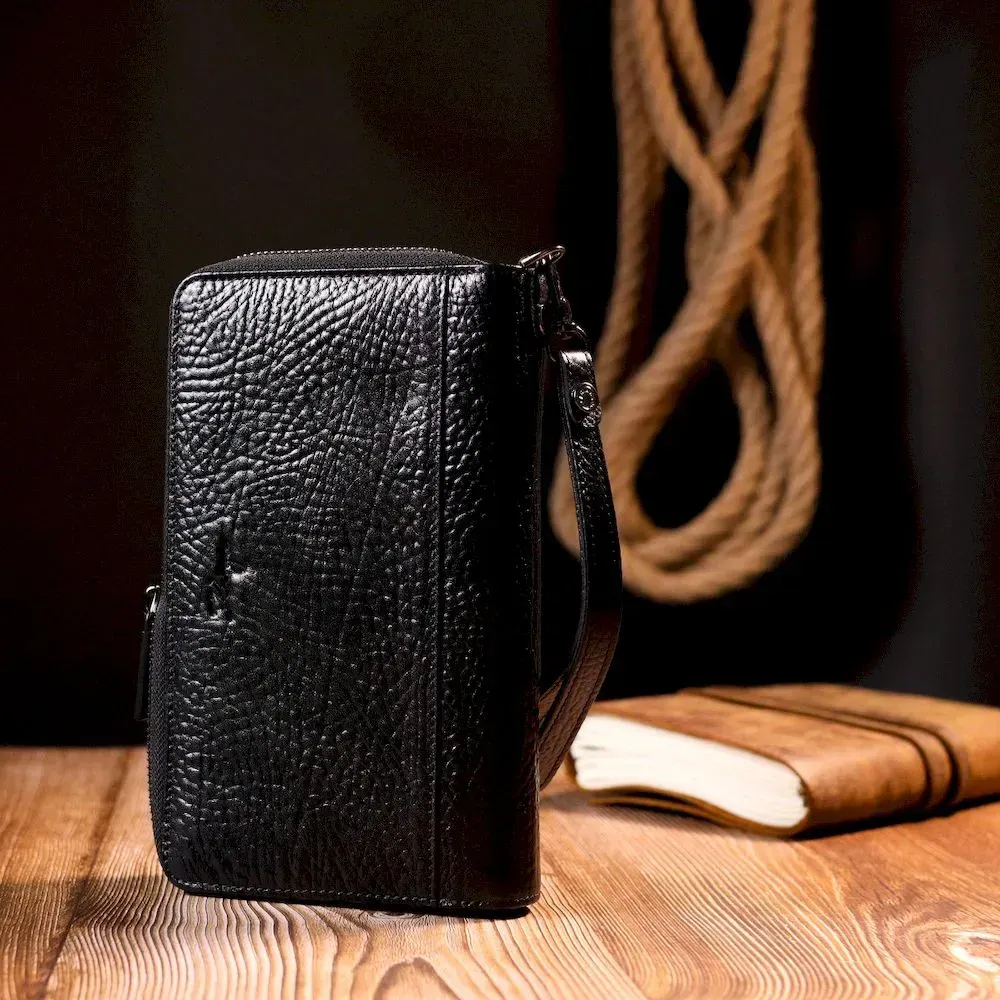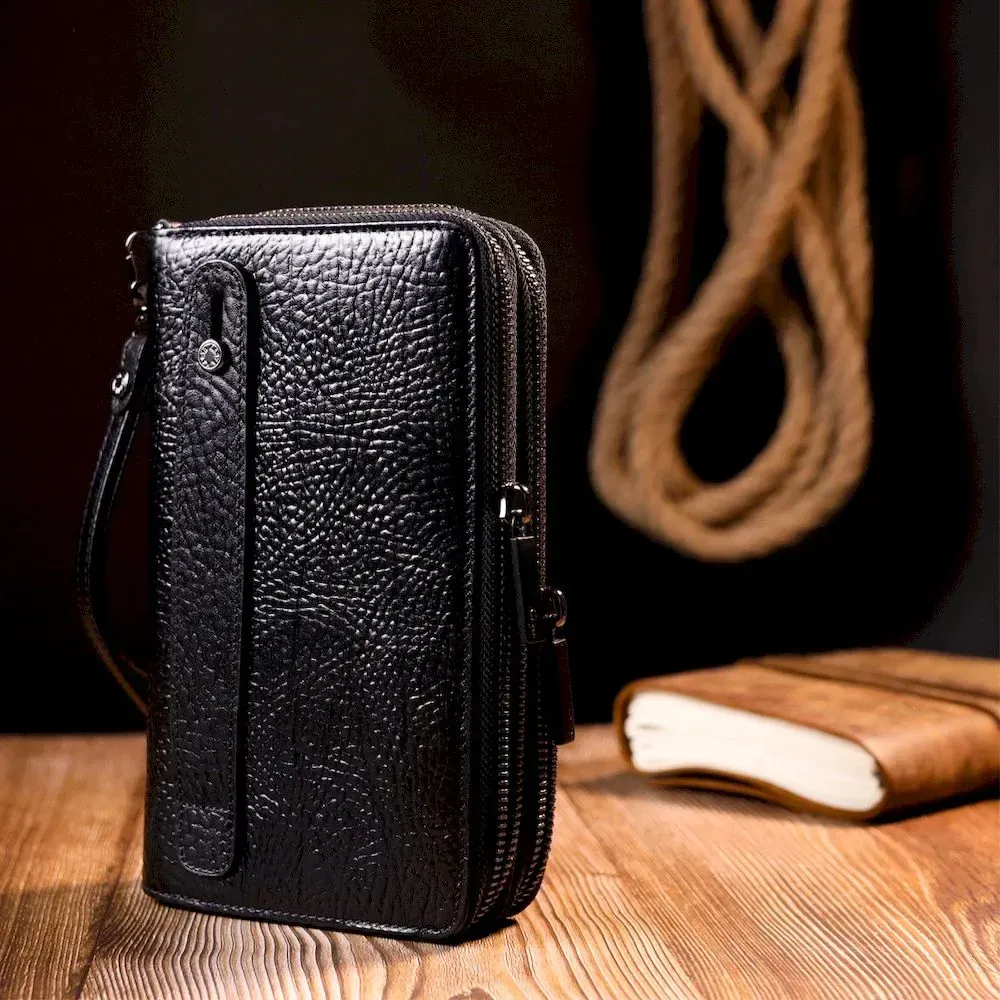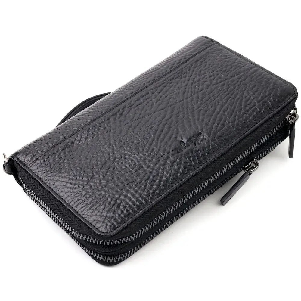 Отличный мужской клатч из натуральной крупнозернистой кожи с использованием добротного текстиля (внутренняя подкладка). Носится с помощью ремешка на запястье или просто в руке. Используется качественная фурнитура цвета темного серебра. Барсетка в одно и тоже время, компактна и функциональна. С таким аксессуаром, мужчина будет выглядеть солидно и уверенным в себе.