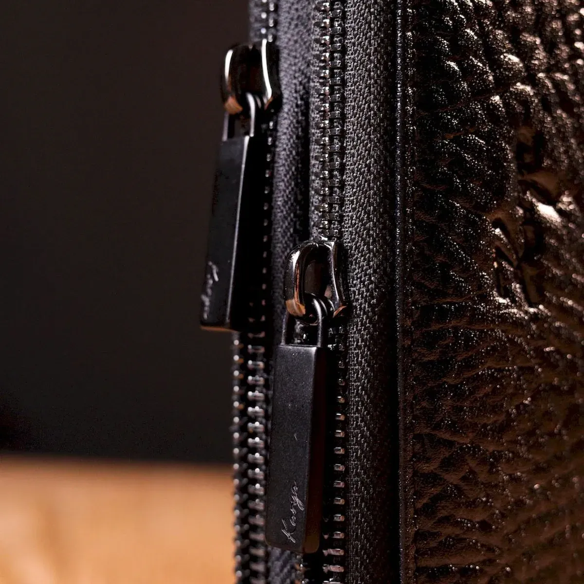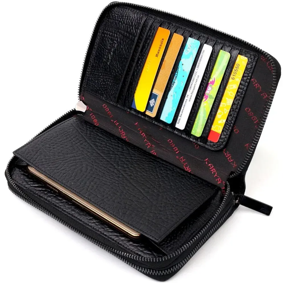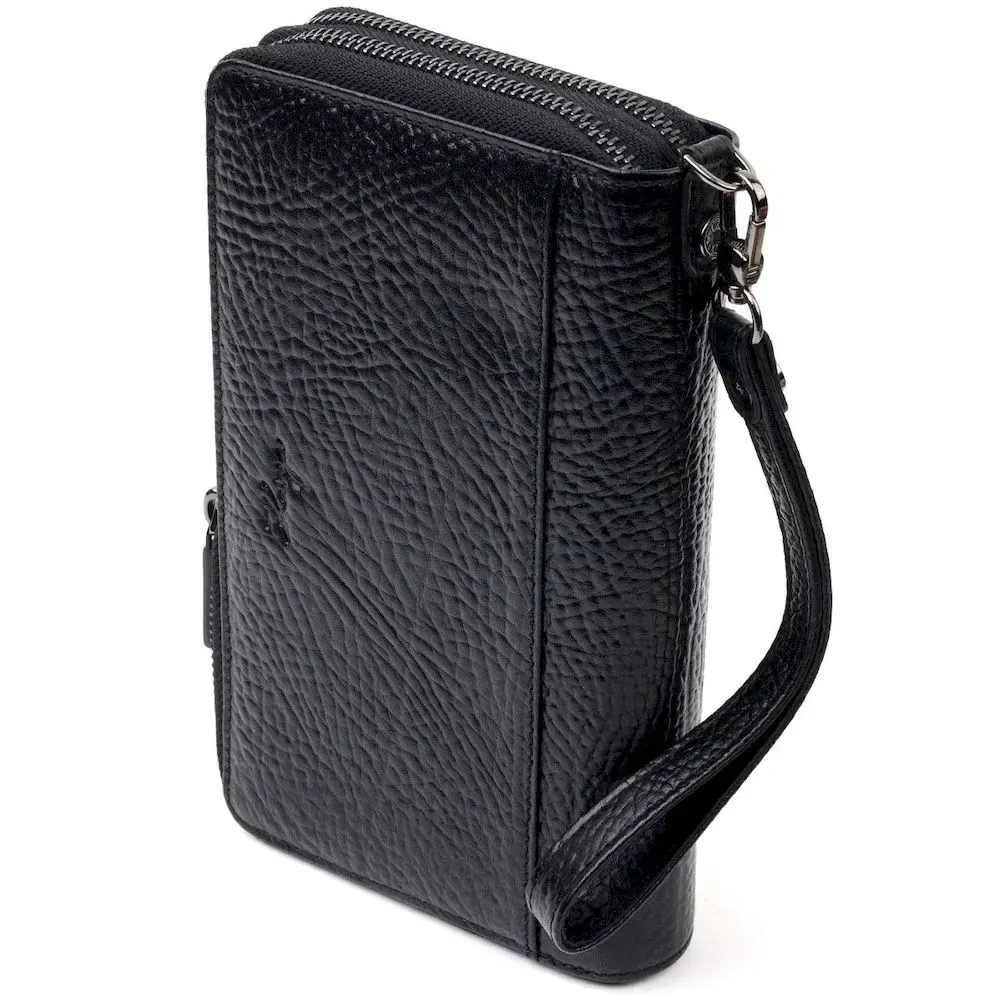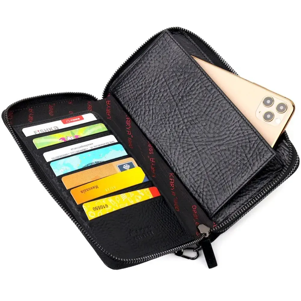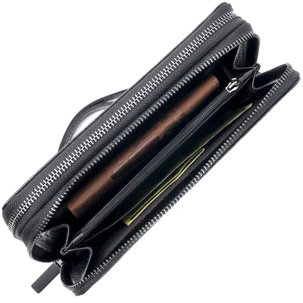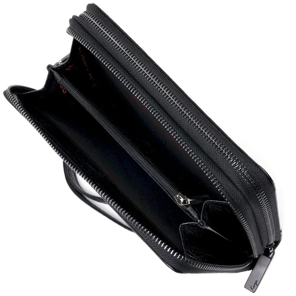 Вместительный мужской клатч на два отделения KARYA 20905 кожаный Черный