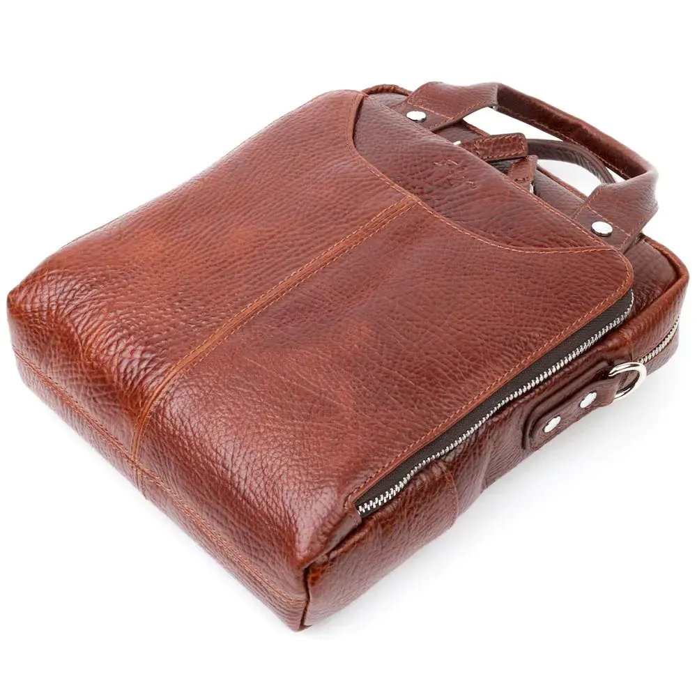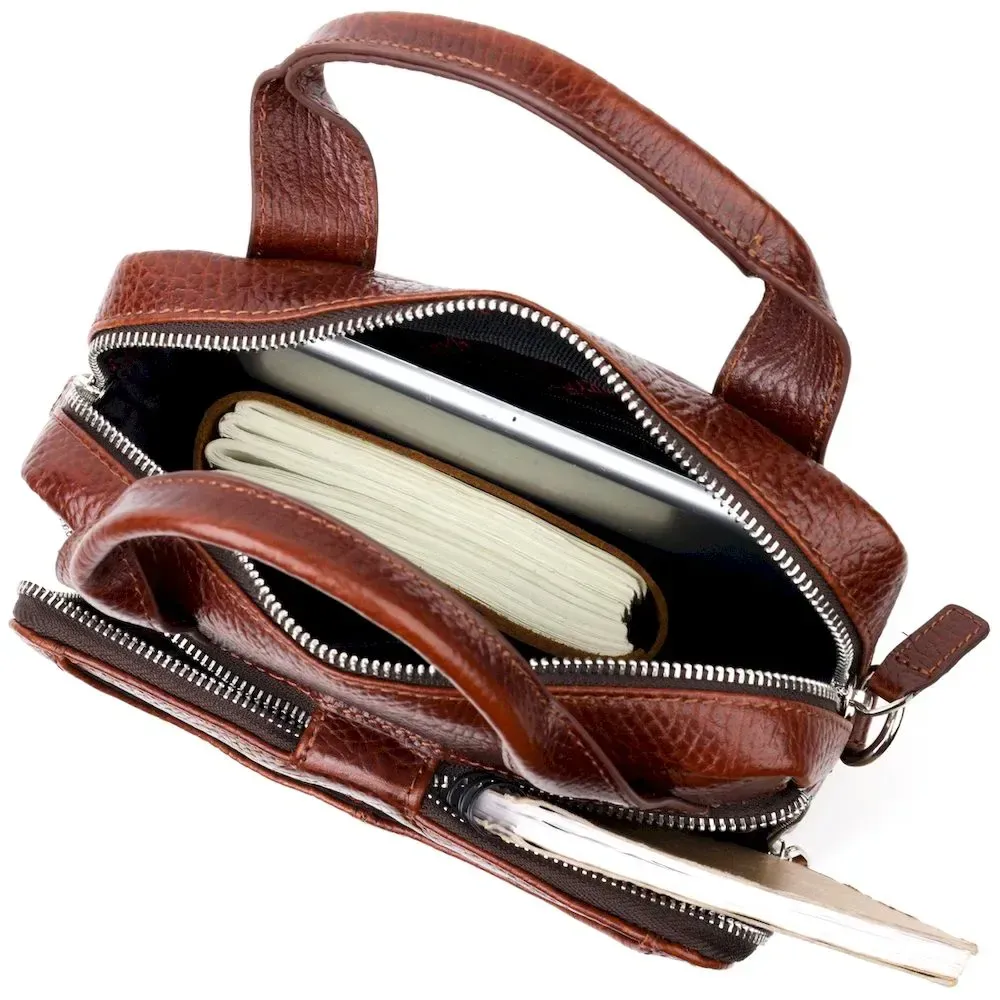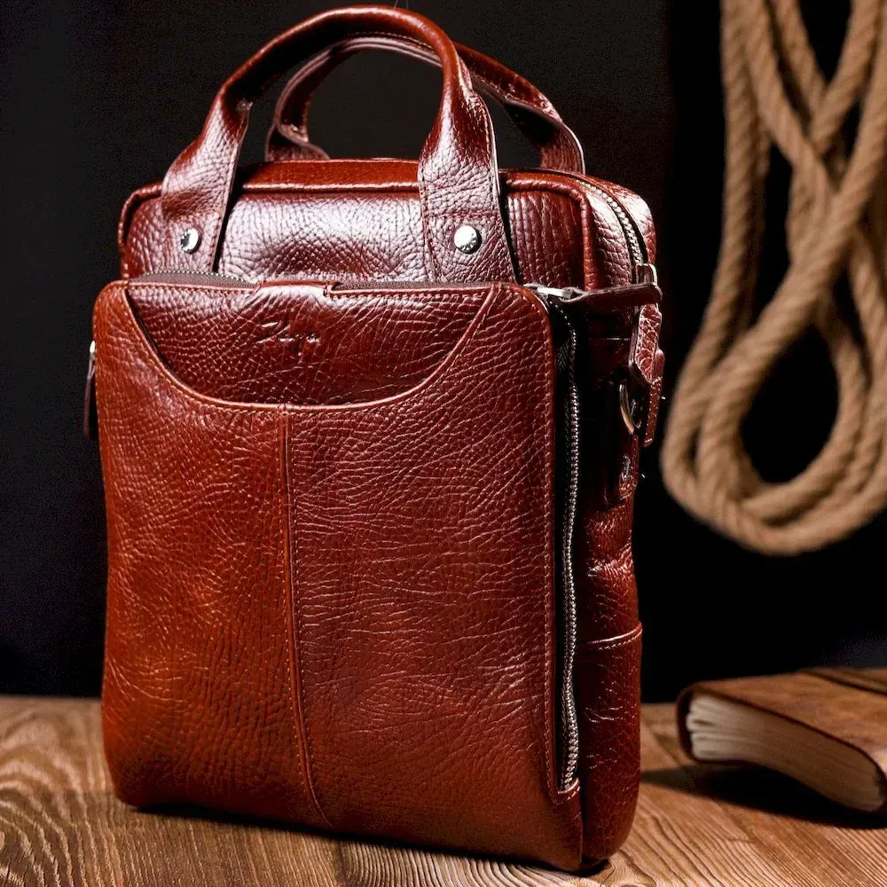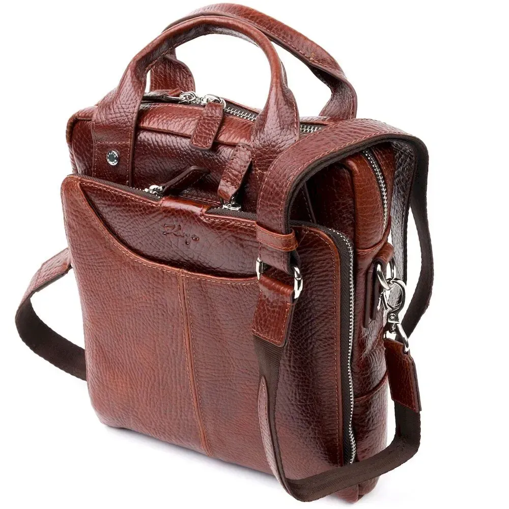 Мужская сумка коричневого цвета из натуральной зернистой кожи высокого качества. Аксессуар имеет надежную фурнитуру серебристого цвета и прочную подкладку. Изделие упаковано в фирменный текстильный мешок Karya. Качественная мужская сумка из натуральной кожи, всегда была отличным подарком для мужчины любого возраста.