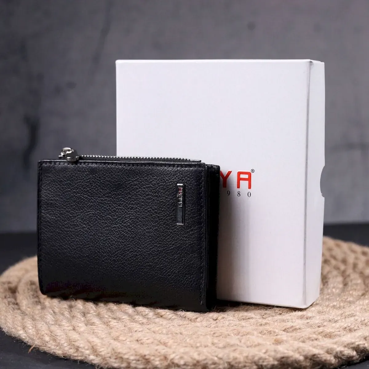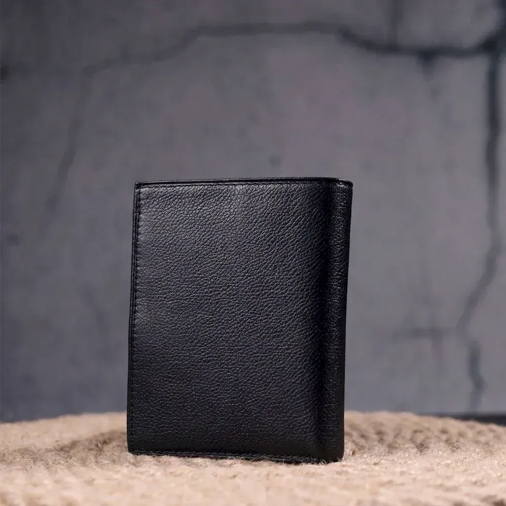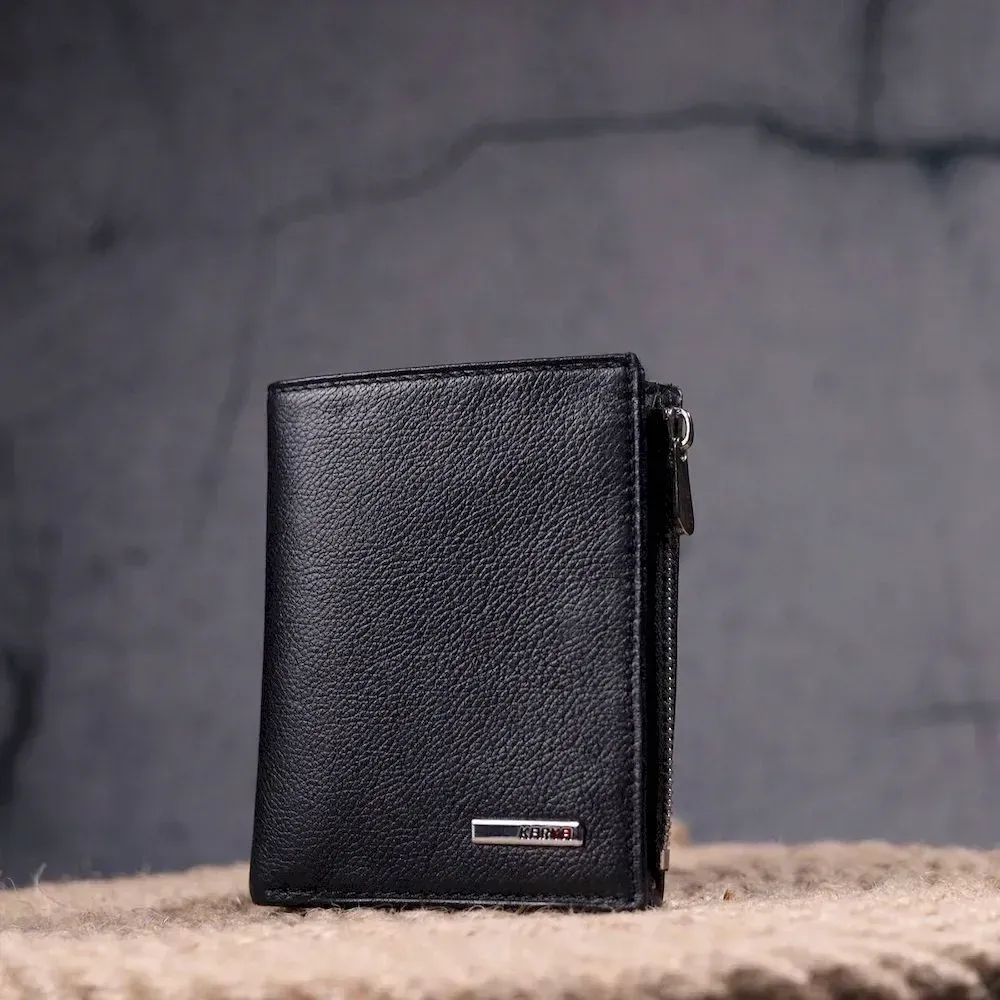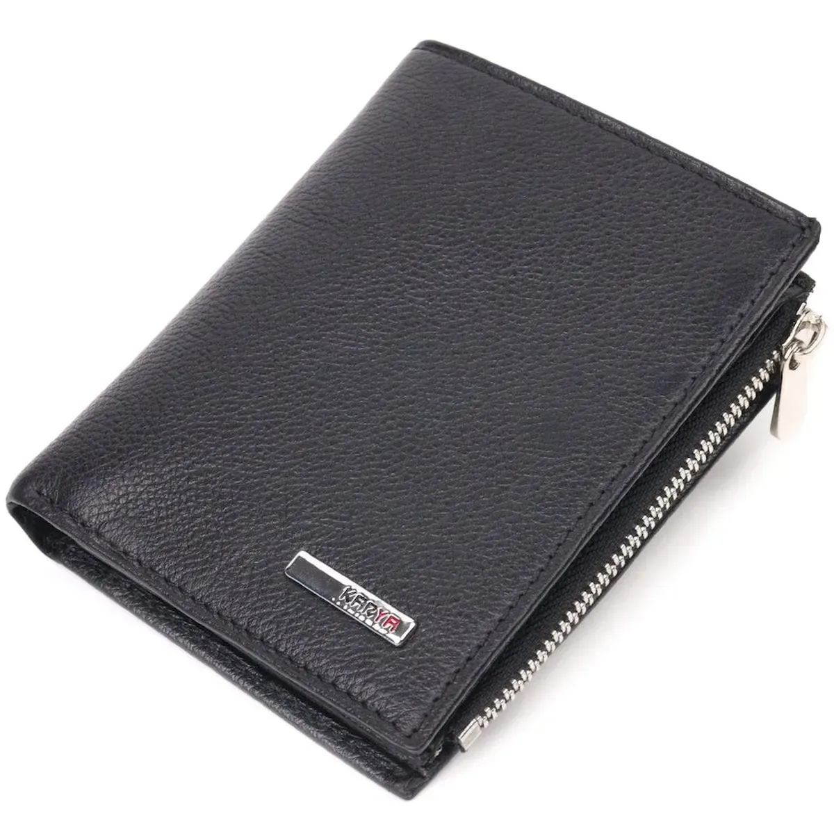 Вместительный вертикальный небольшой кожаный кошелек KARYA 21384 Черный