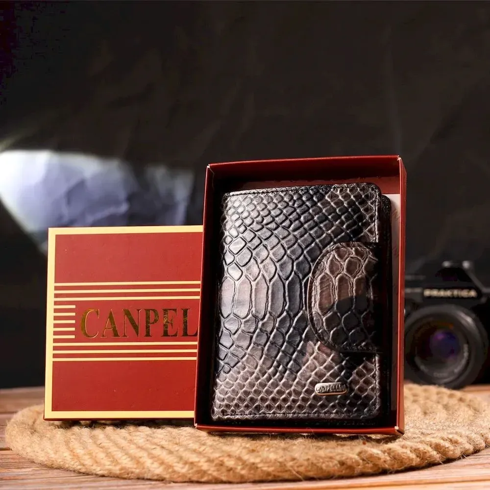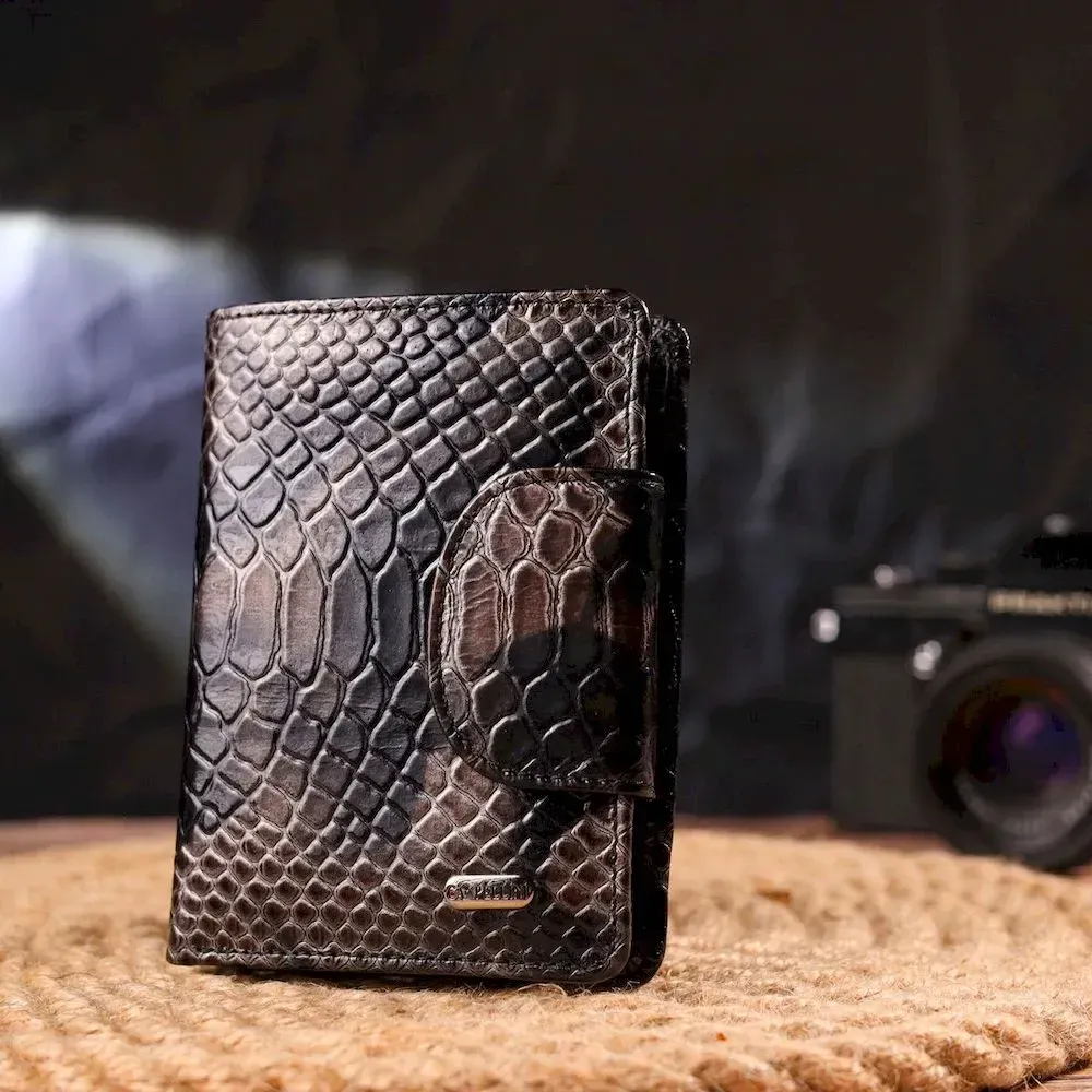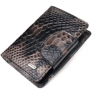 Вместительный вертикальный женский кошелек из натуральной кожи с тиснением под змею CANPELLINI 21676 Разноцветный