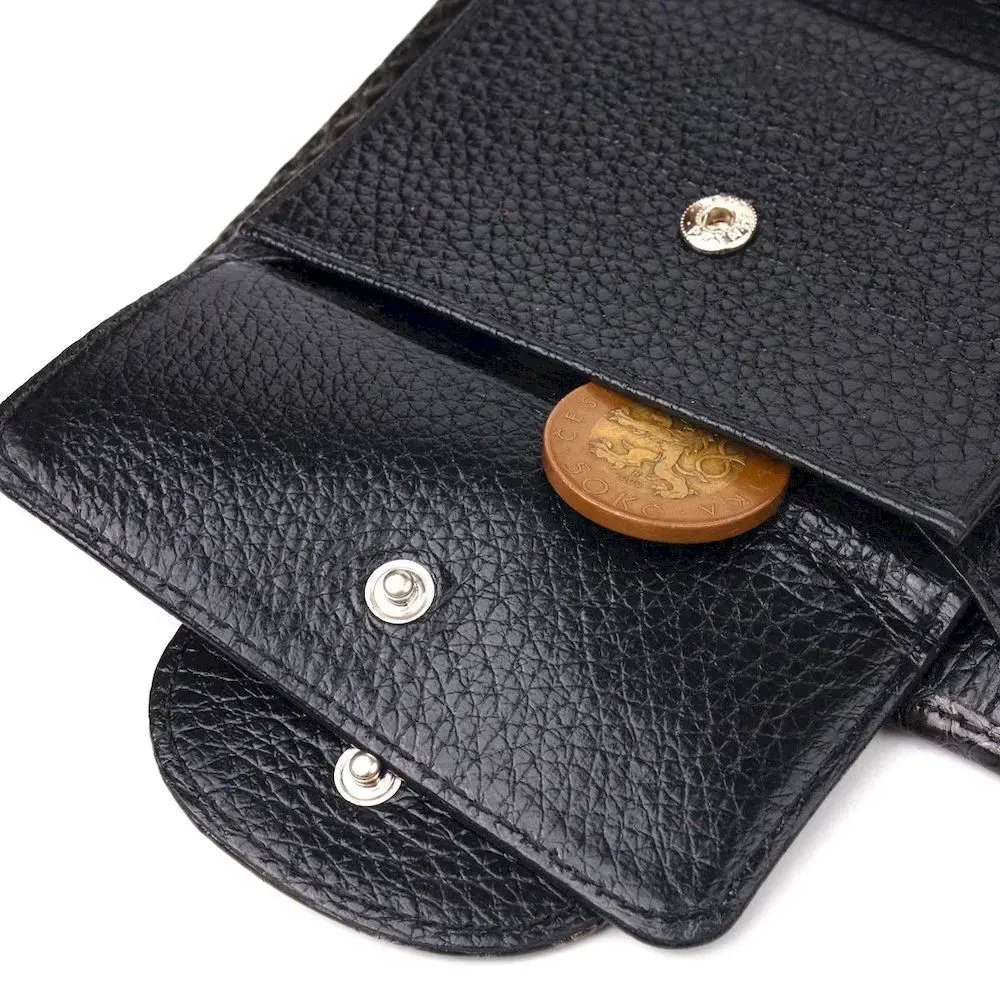 - монетница, что закрывается клапаном на кнопку;