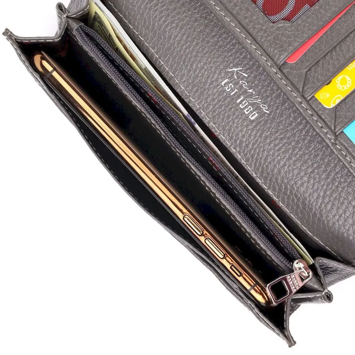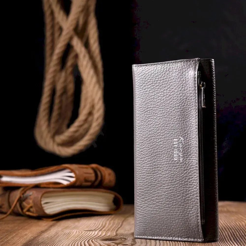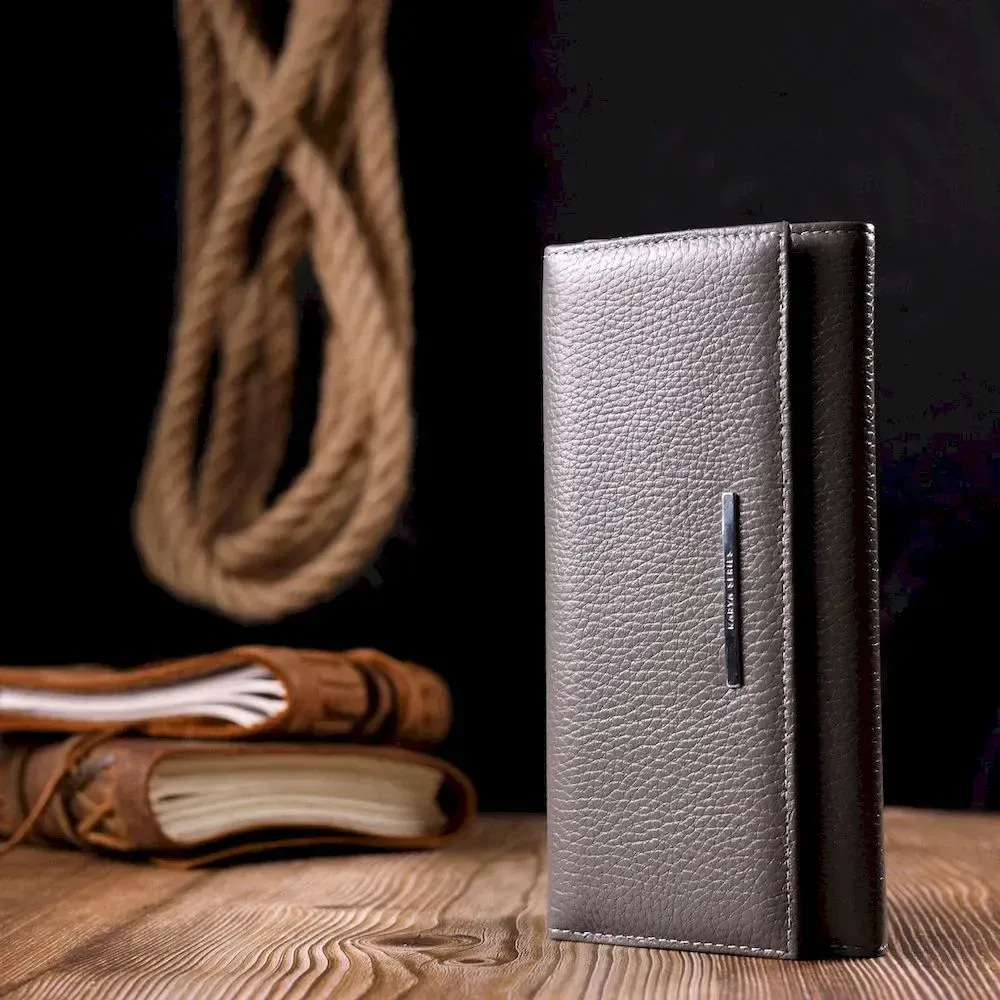 Вместительный женский кошелек из натуральной кожи KARYA 21020 Серый