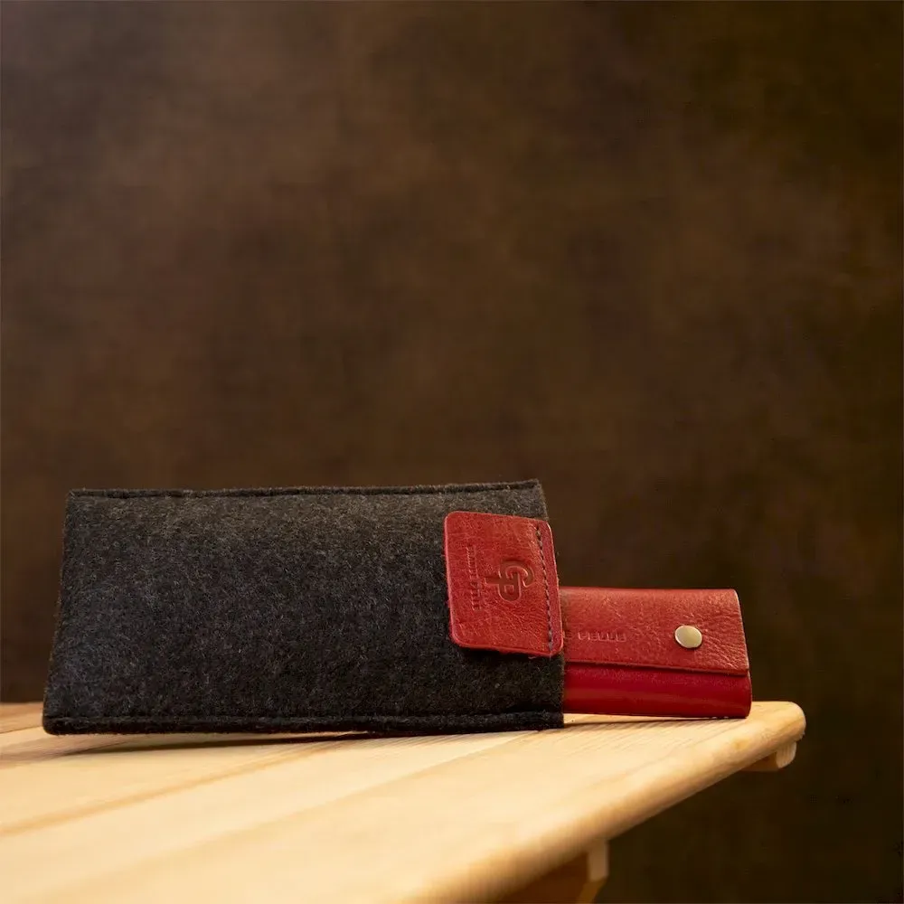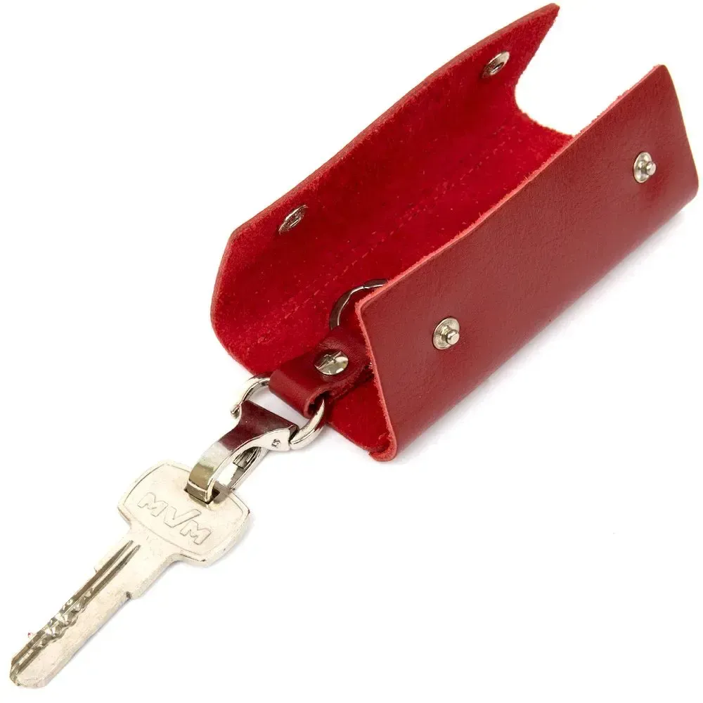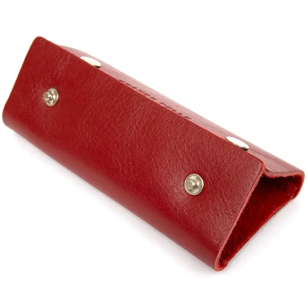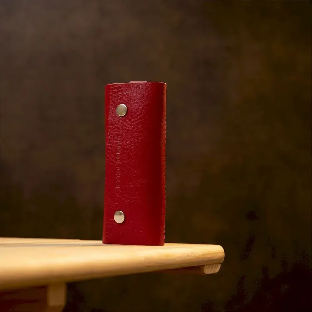 Добротная компактная ключница из высококачественной натуральной кожи. Закрывается в нахлест с помощью двух металлических кнопок. Имеет красивый насыщенный красный цвет и такие же швы, которые сделаны очень надежно и аккуратно. Упакована в черный фирменный чехол.