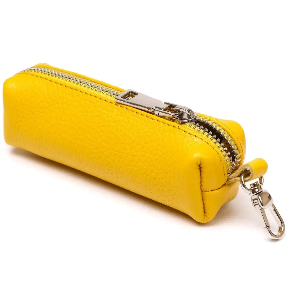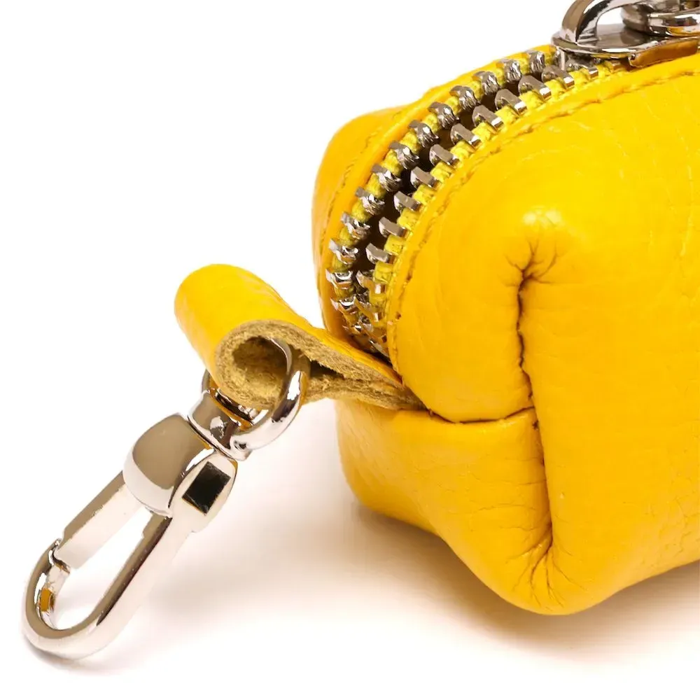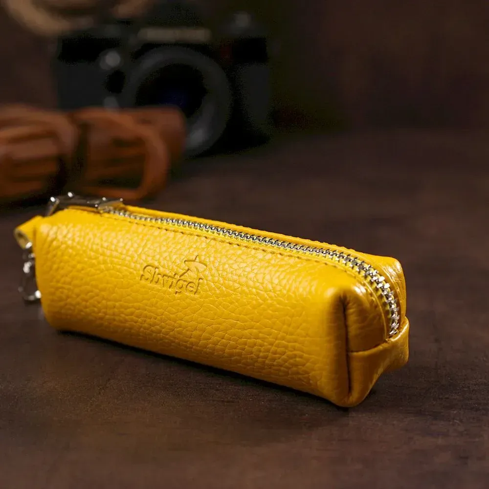 Яркая красивая ключница в сочном желтом цвете, который непременно сможет поднять настроение даже зимой. Изготовлена из натуральной высококлассной кожи повышенной прочности. Фурнитура сделана в серебрённом цвете. Ключницу можно также крепить к поясу или внутри сумки, чтобы она была всегда под рукой и не терялась.