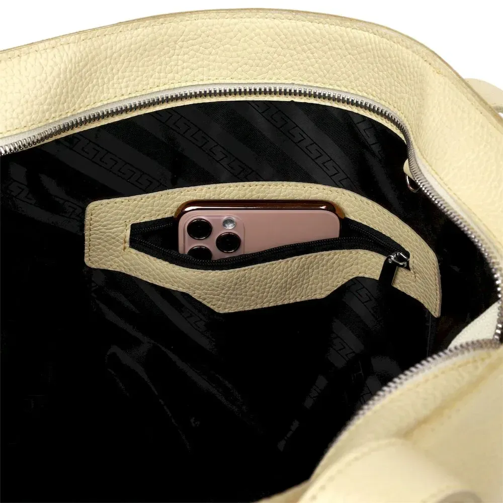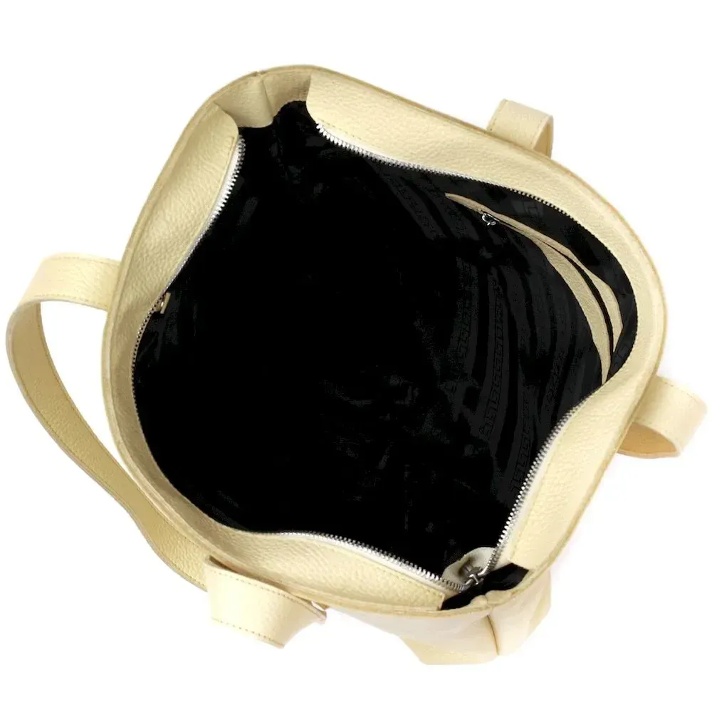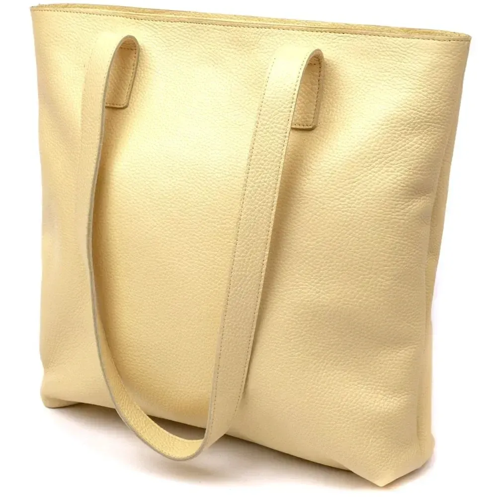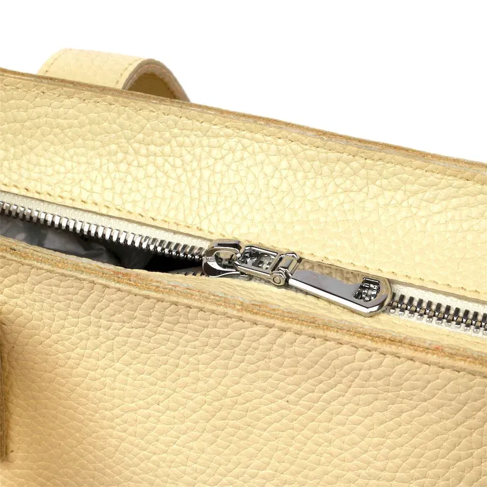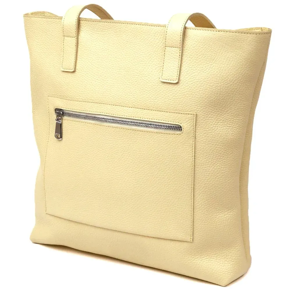 Стильная женская сумка в изумительном лимонном цвете, что смотрится по-летнему свежо и красиво. Материал изготовления – натуральная кожа высокого качества с повышенными показателями устойчивости к износу. Внутреннее наполнение представлено в виде просторного основного отделения с внутренним небольшим карманом. На внешней стороне также есть кармашек на молнии.
