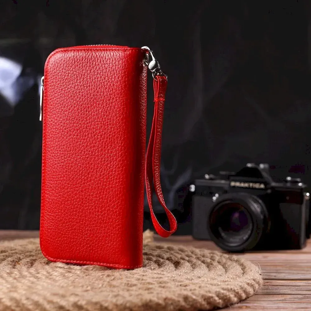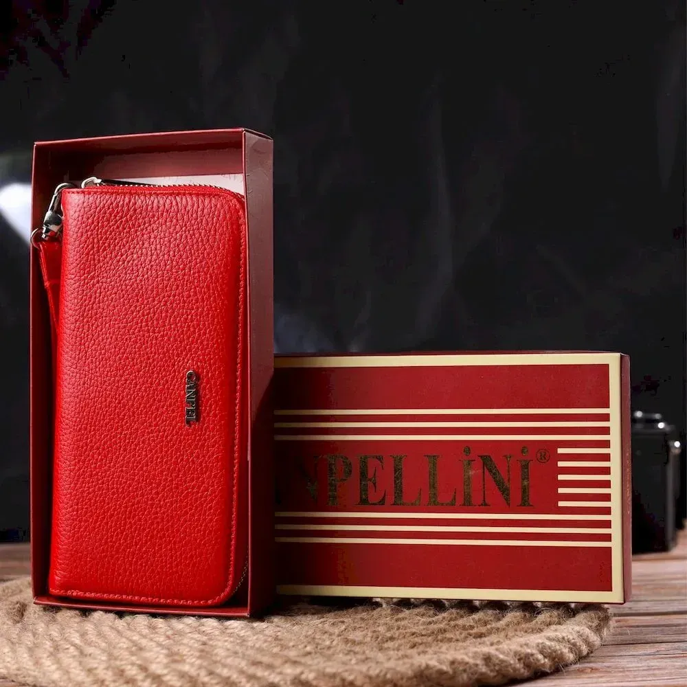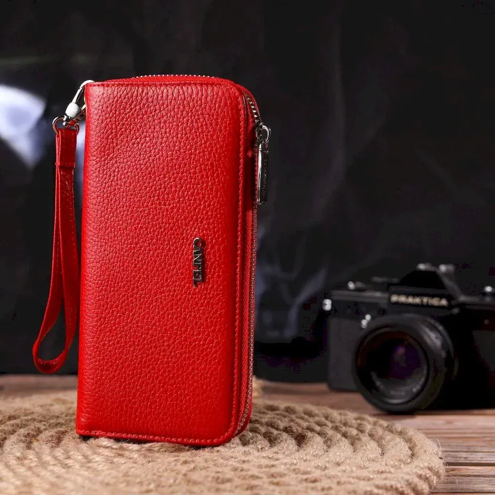 Яркий кошелек для женщин из натуральной зернистой кожи CANPELLINI 21615 Красный