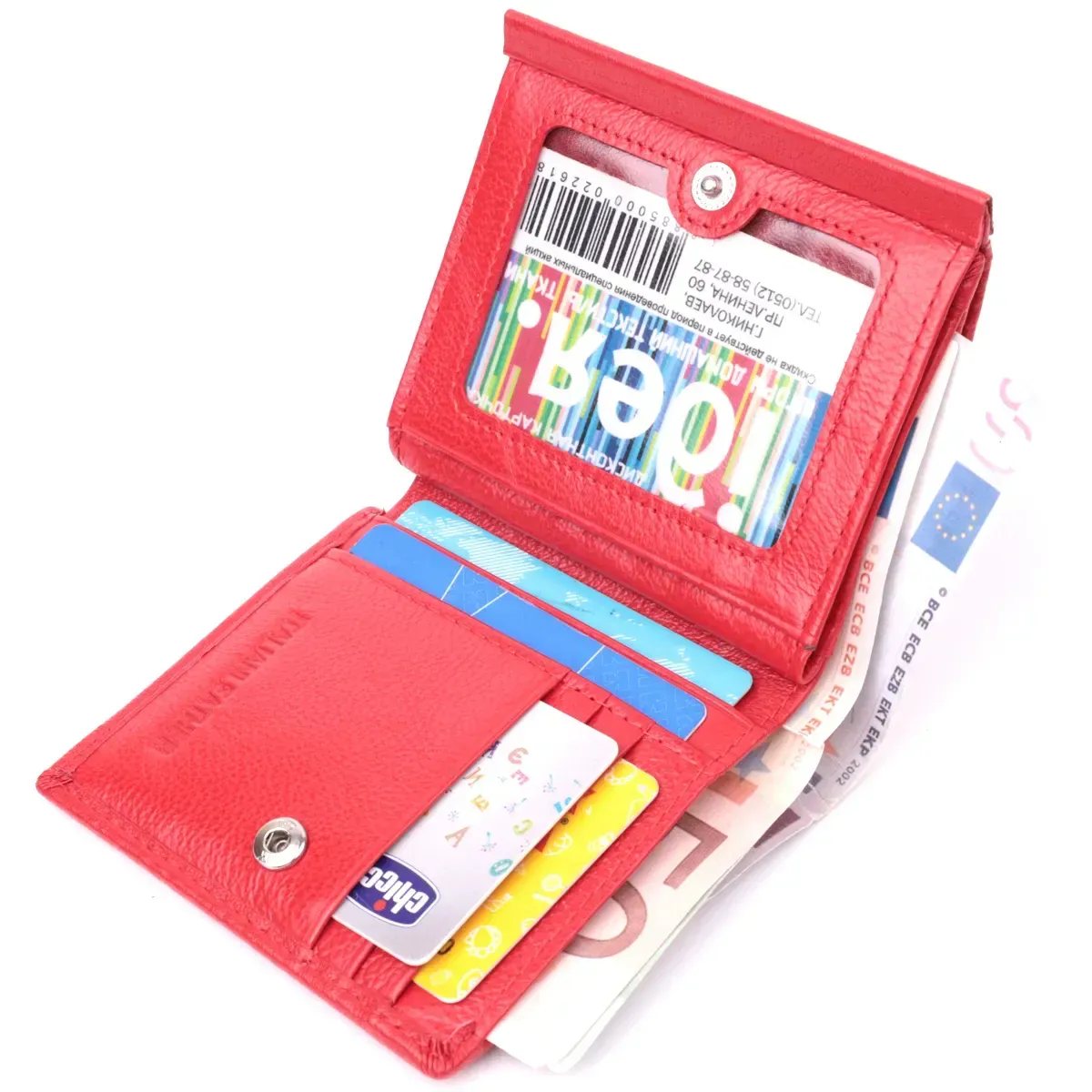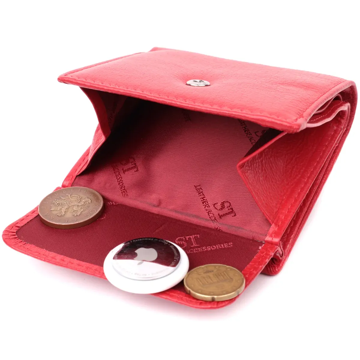 Яркий небольшой женский кошелек с монетницей снаружи из натуральной кожи ST Leather 22543 Красный