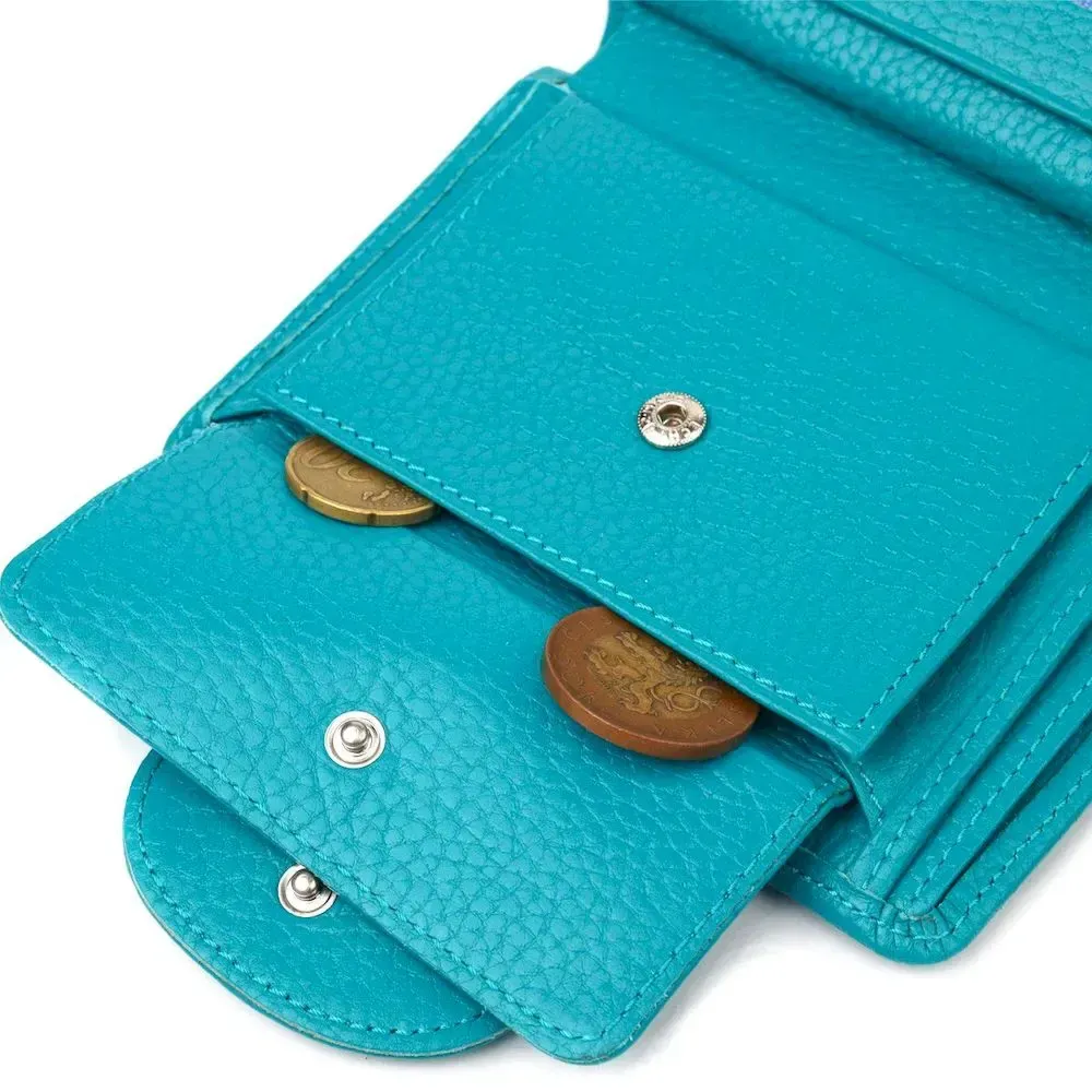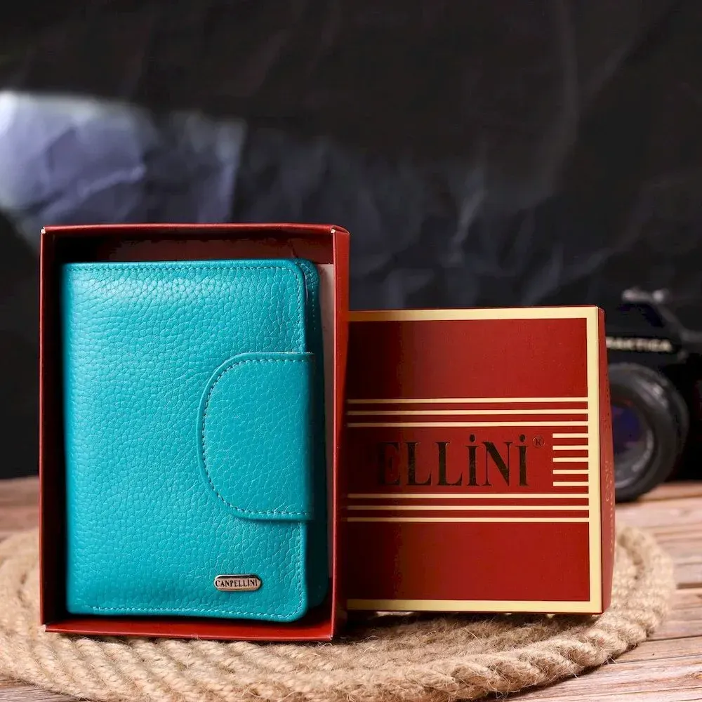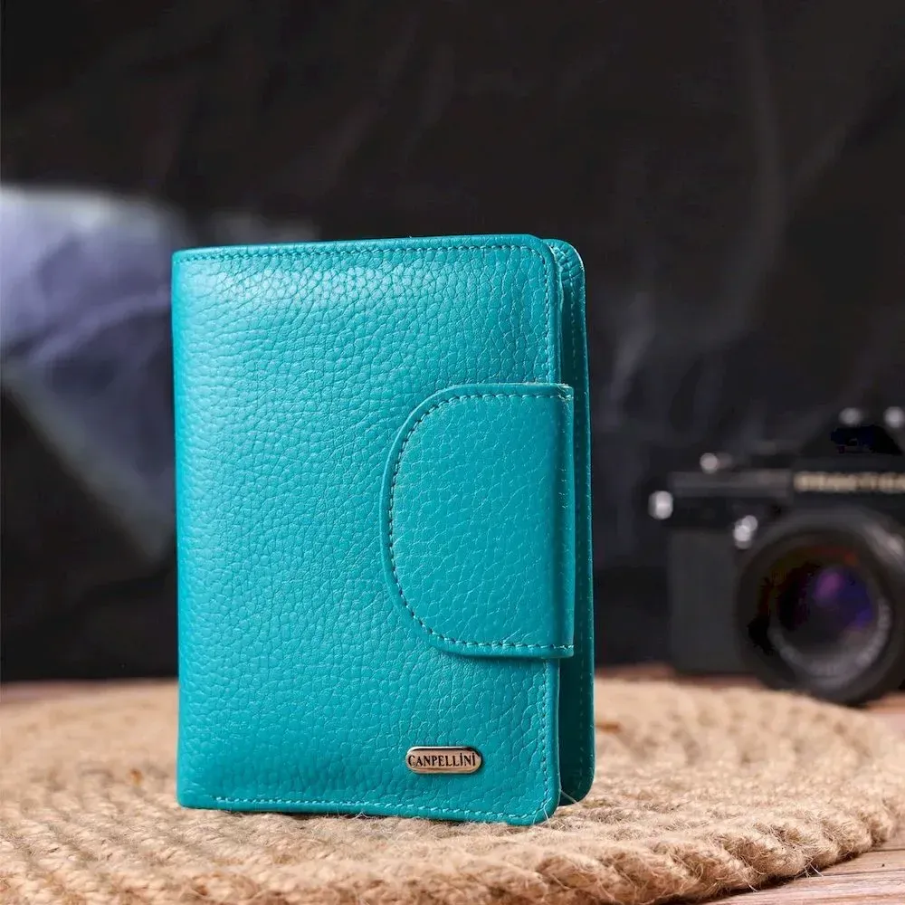 Яркий вертикальный кошелек из натуральной кожи CANPELLINI 21678 Бирюзовый
