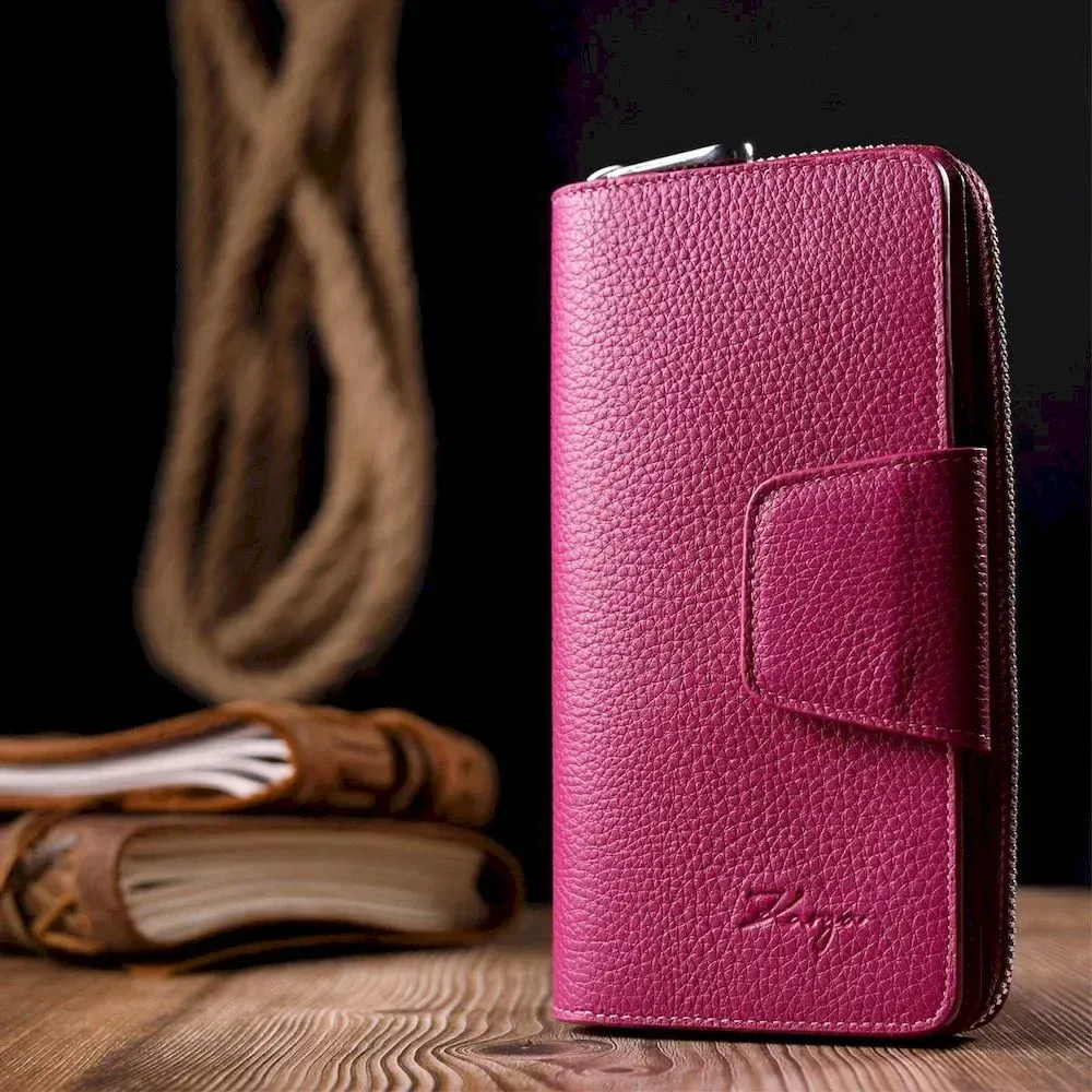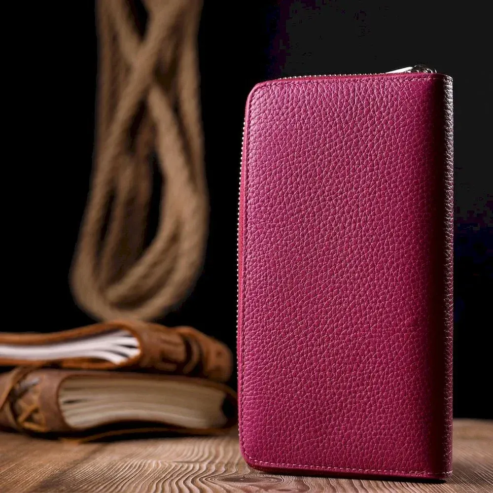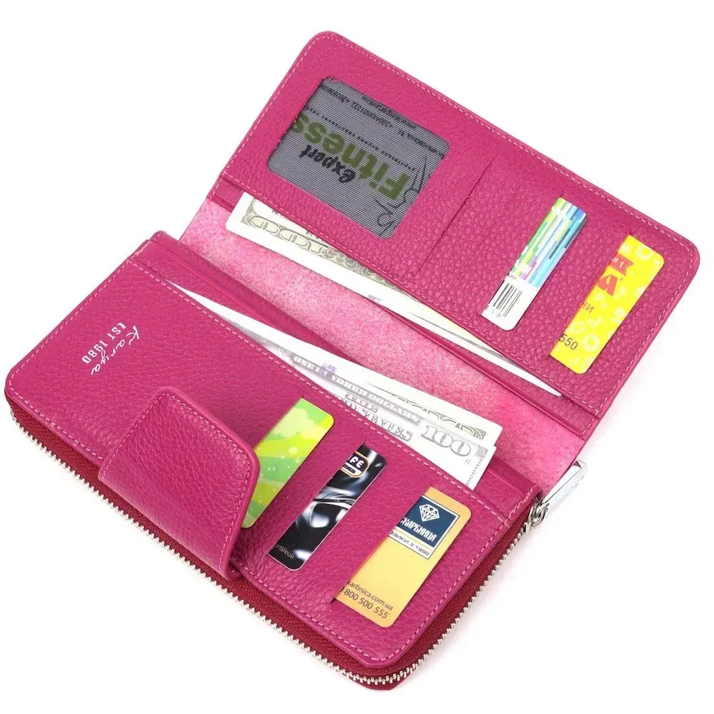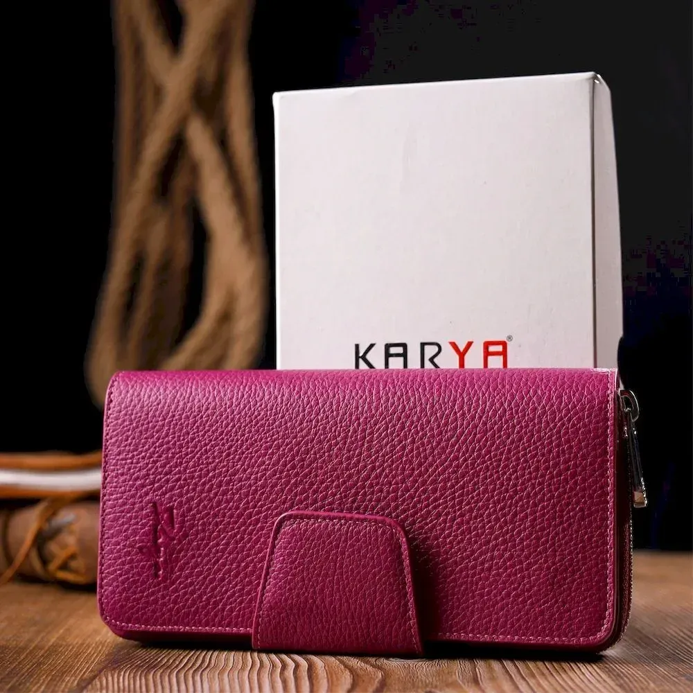 Яркий вместительный вертикальный женский кошелек из натуральной кожи KARYA 21160 Фиолетовый