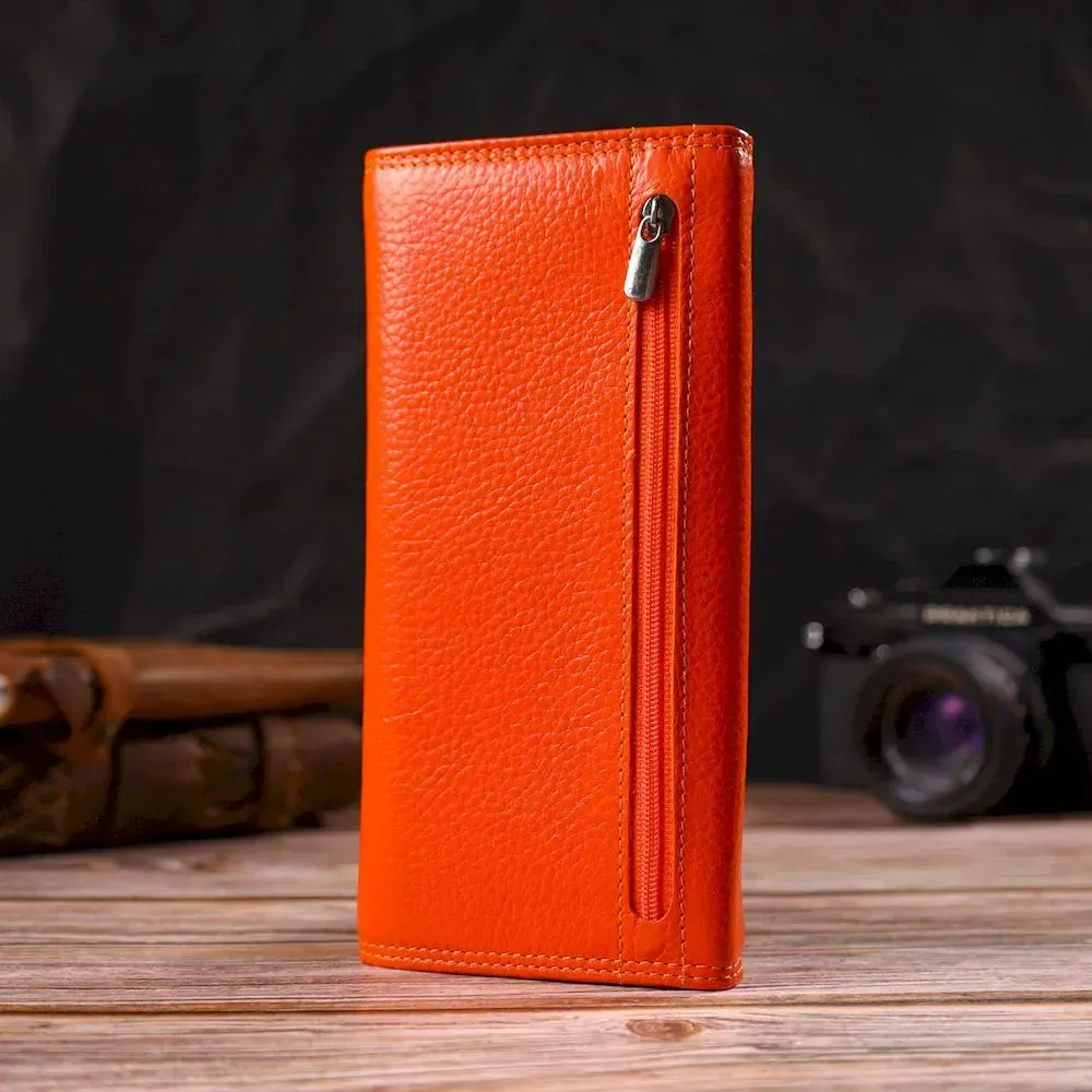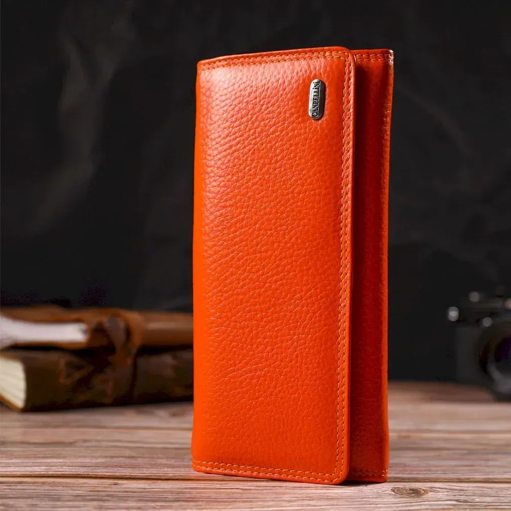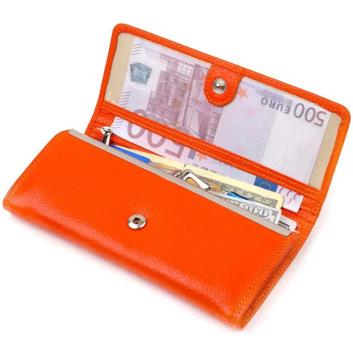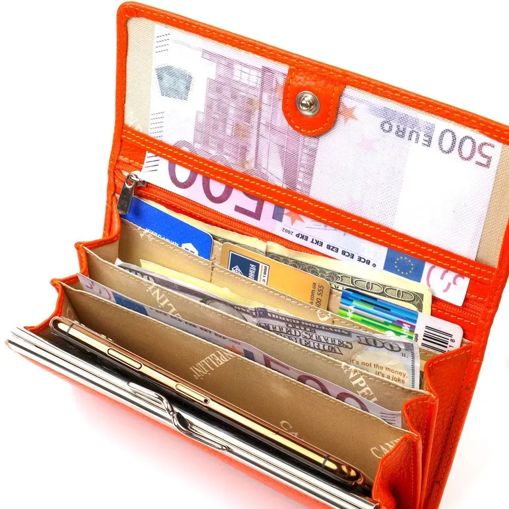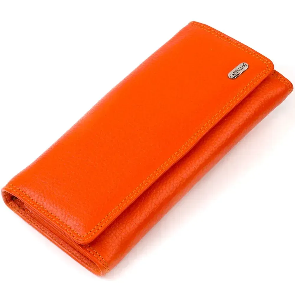 Яркий женский кошелек из натуральной зернистой кожи CANPELLINI 21706 Оранжевый