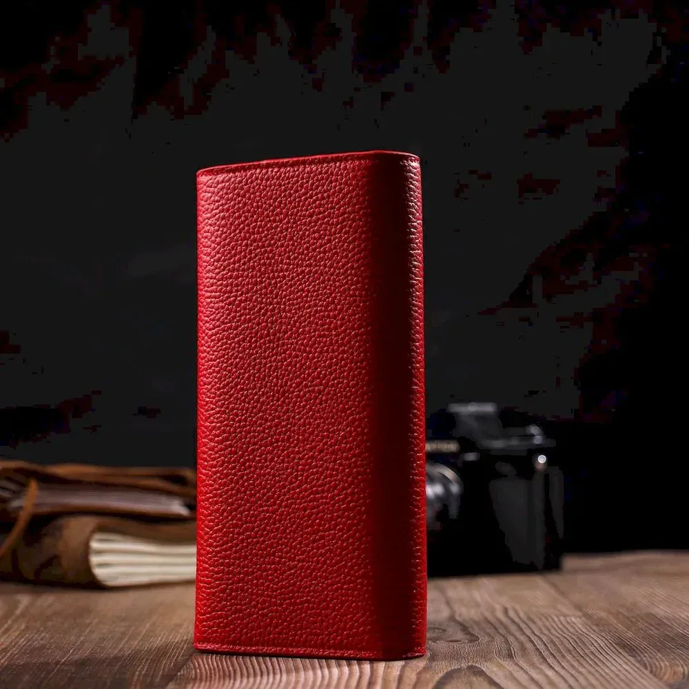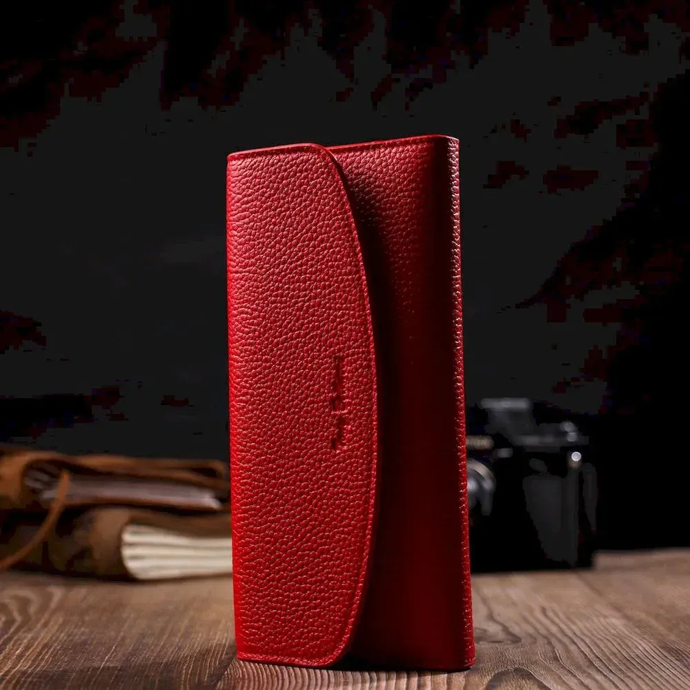 Красочный женский кошелек из натуральной кожи флотар, для которой характерна прочность, износостойкость и зернистая фактура. Аксессуар состоит из одного широкого отделения для купюр, двенадцати ячеек для пластиковых карт, одного прилегающего кармана и монетницы на молнии. В изделии использована качественная фурнитура золотистого цвета. Закрывается кошелек клапаном на кнопку. Покупая этот кожаный кошелек, Вы не только приобретаете стильную вещь, но и получаете качественный аксессуар, который прослужит не один год.