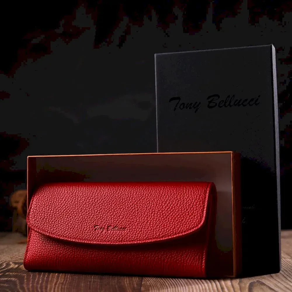 Яркий женский кошелек с монетницей на молнии из натуральной кожи Tony Bellucci 21969 Красный