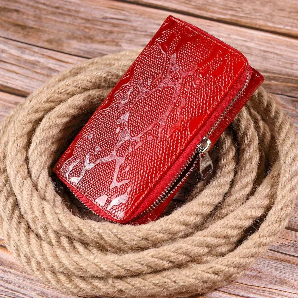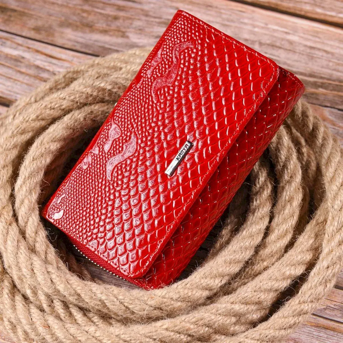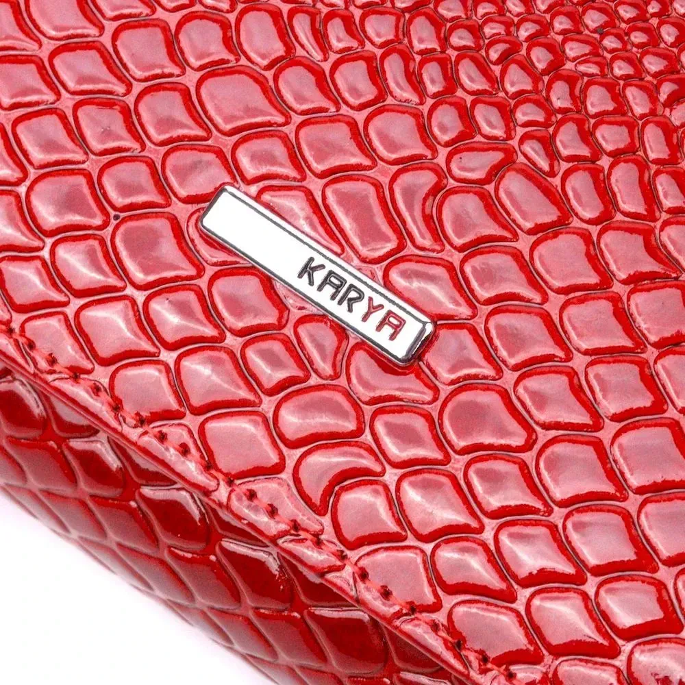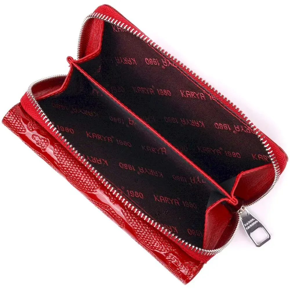 Яркое женское портмоне из лакированной фактурной кожи KARYA 21428 Красный