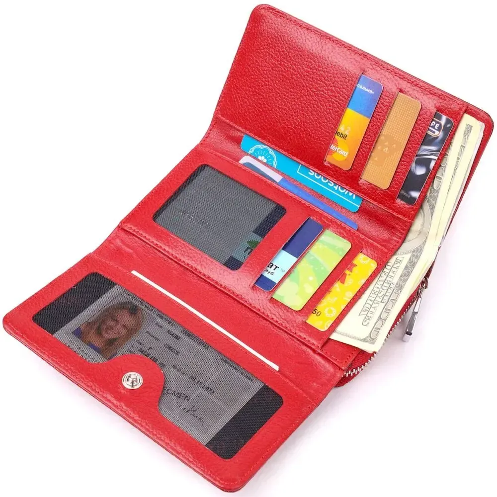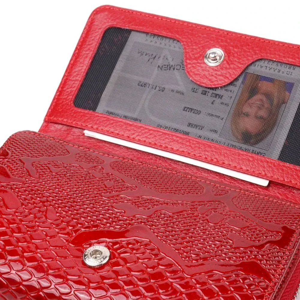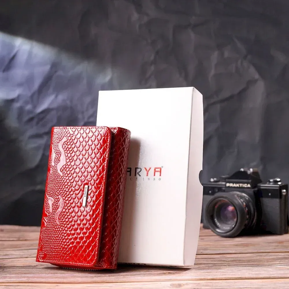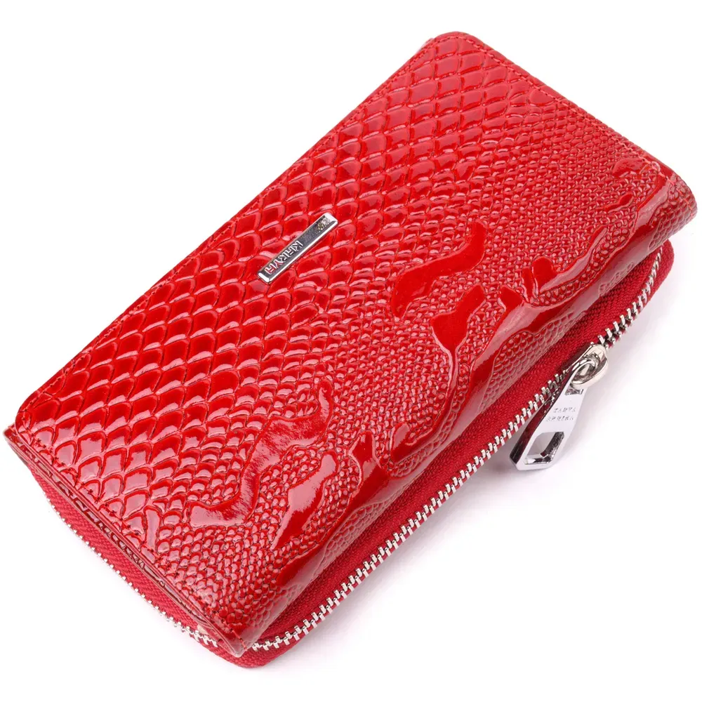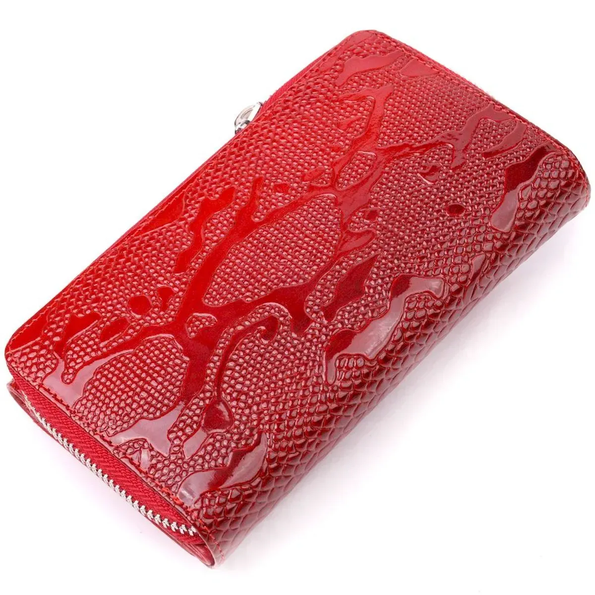 Яркое женское портмоне из лакированной фактурной кожи KARYA 21428 Красный