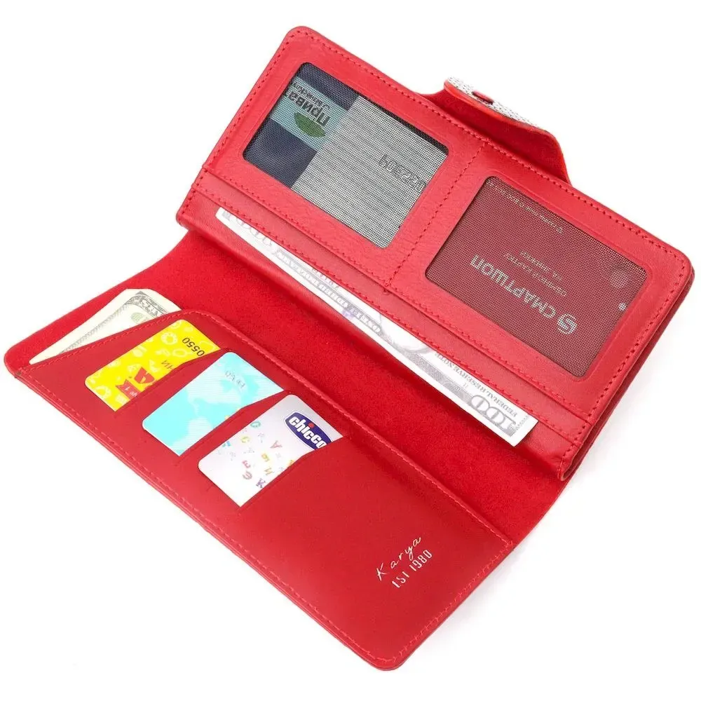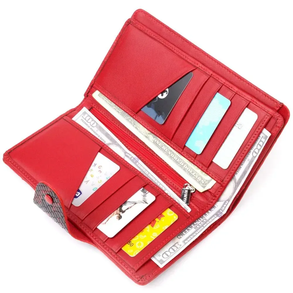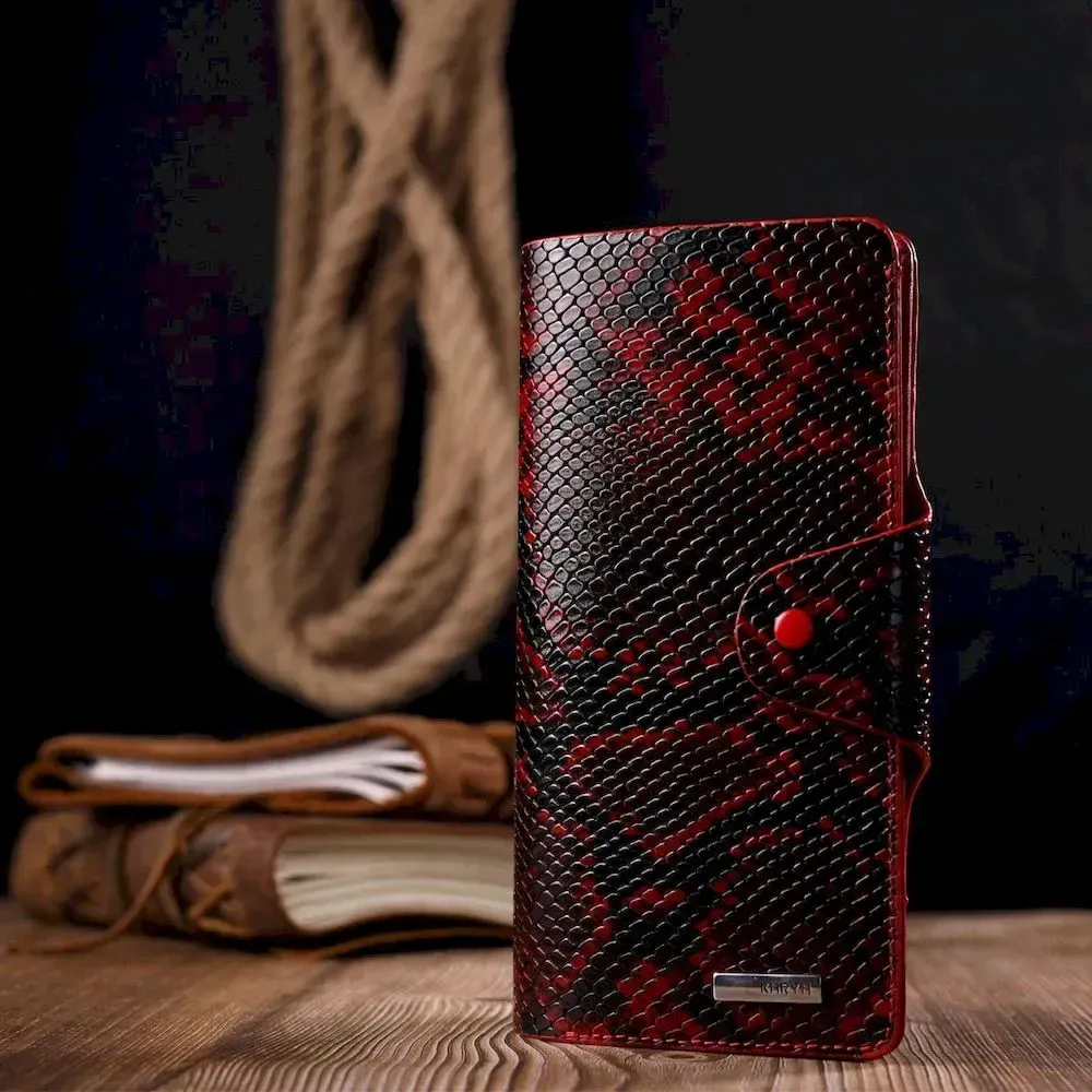 Яркое женское портмоне из натуральной фактурной кожи под змею KARYA 21003 Красный