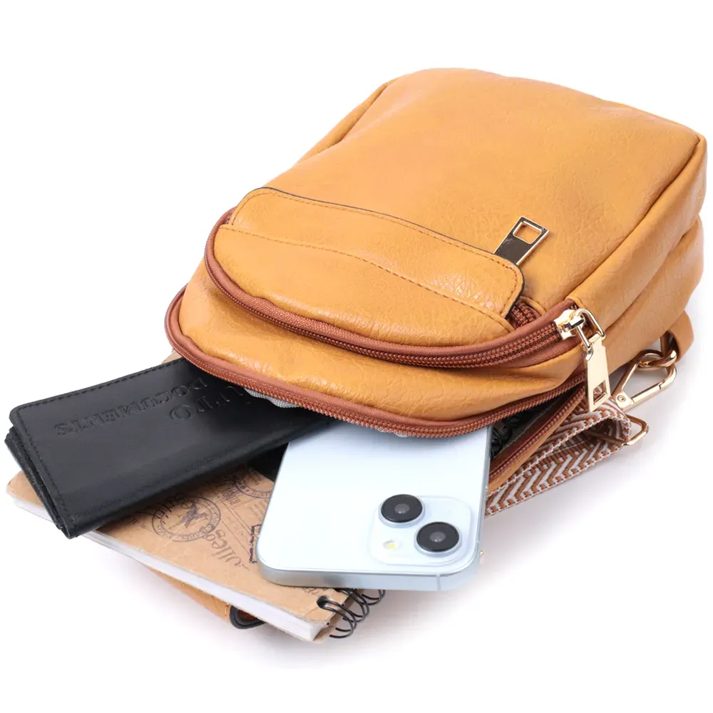 Яскрава жіноча сумка через плече з отвором для навушників з екошкіри Vintage 22788 Жовтий