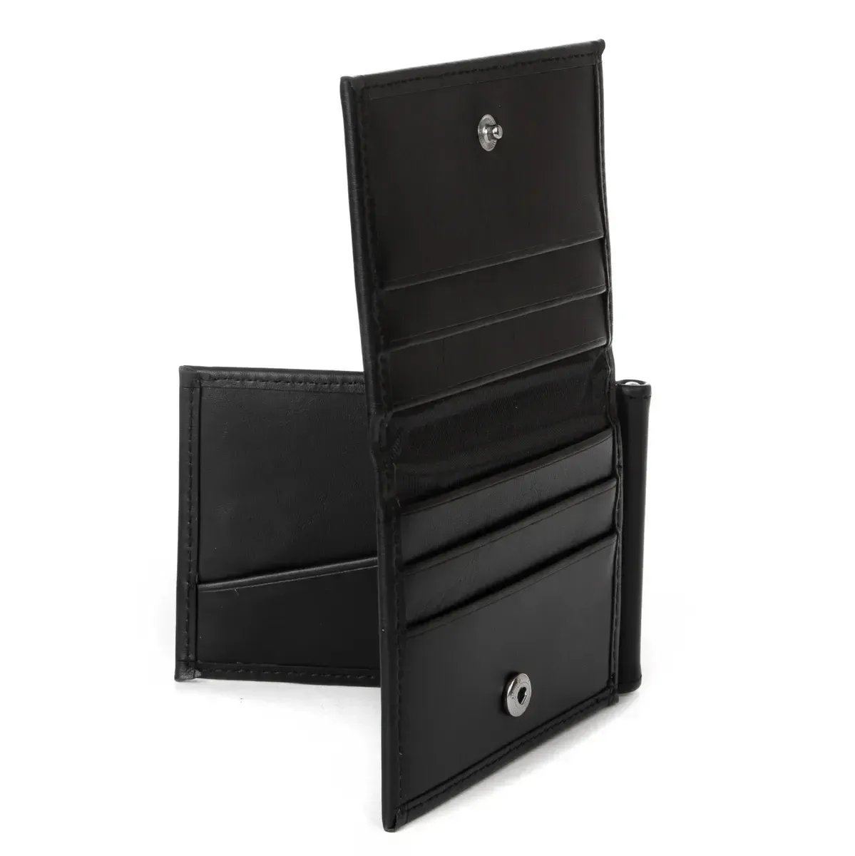 Магнитный зажим для банкнот. Снаружи под клапаном находится блок для 6 визитных карт.