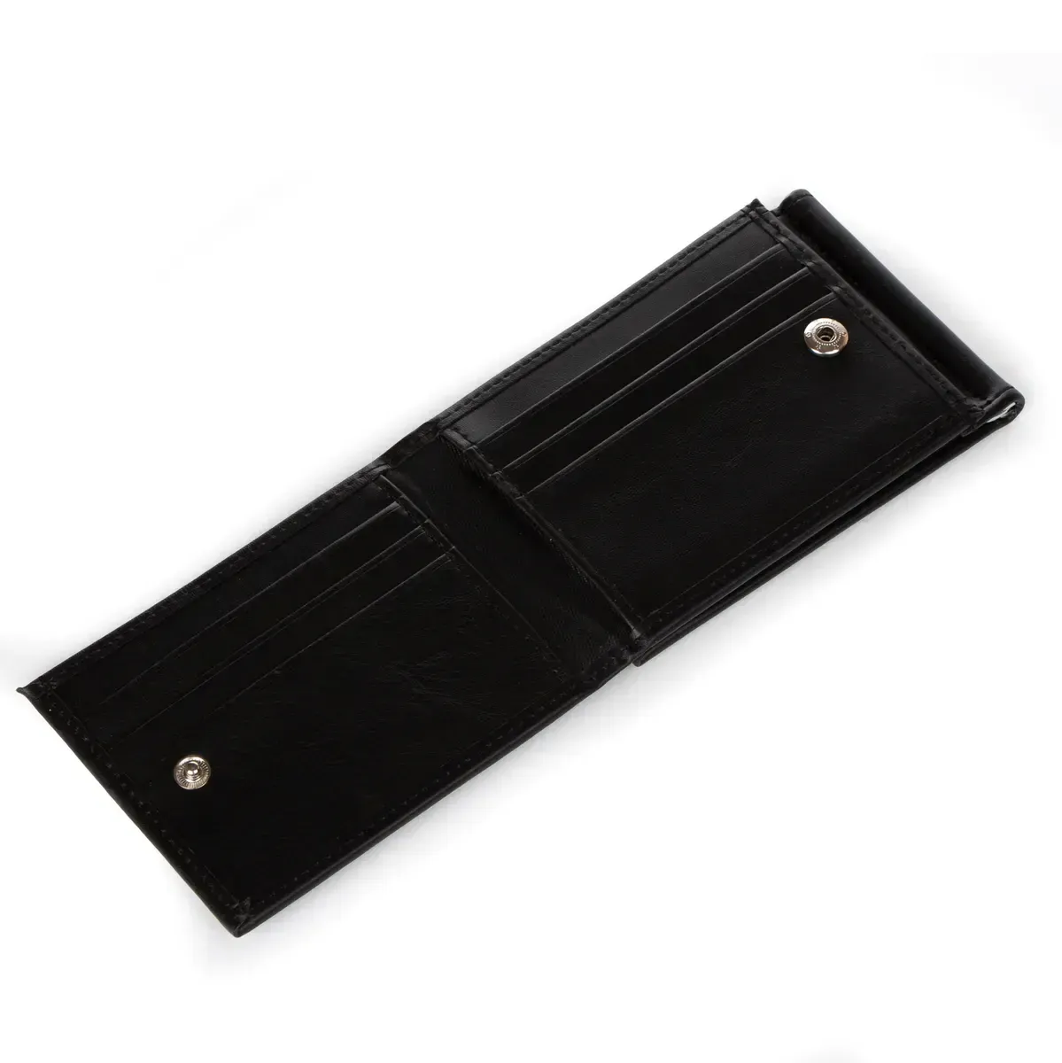 Магнитный зажим для банкнот. Снаружи под клапаном находится блок для 6 визитных карт.