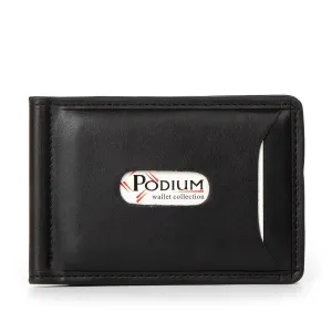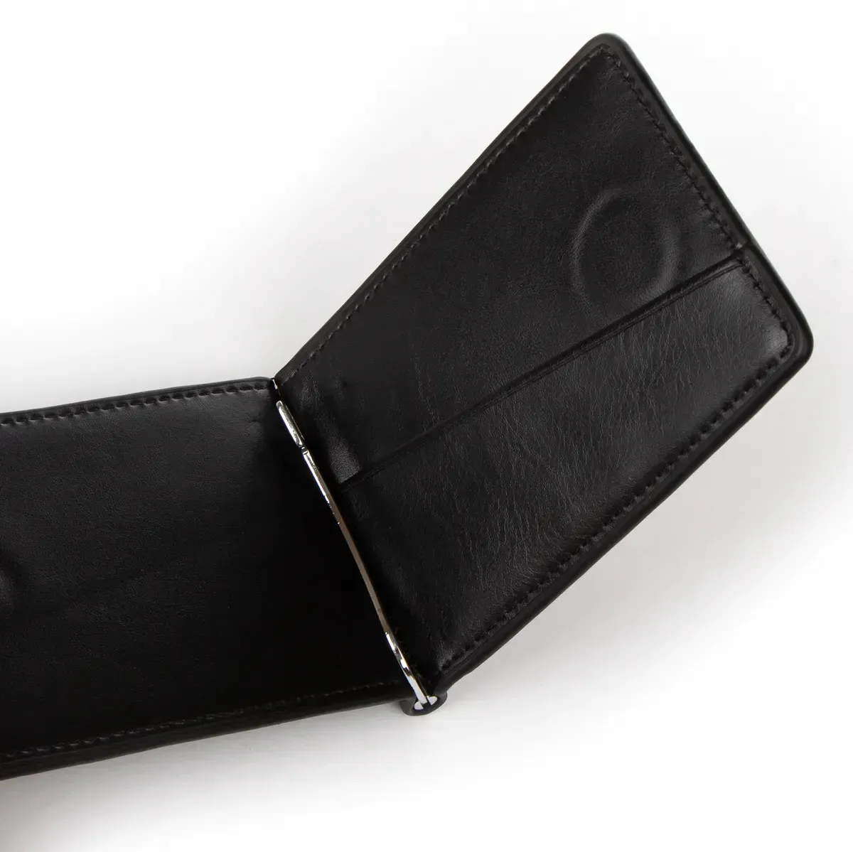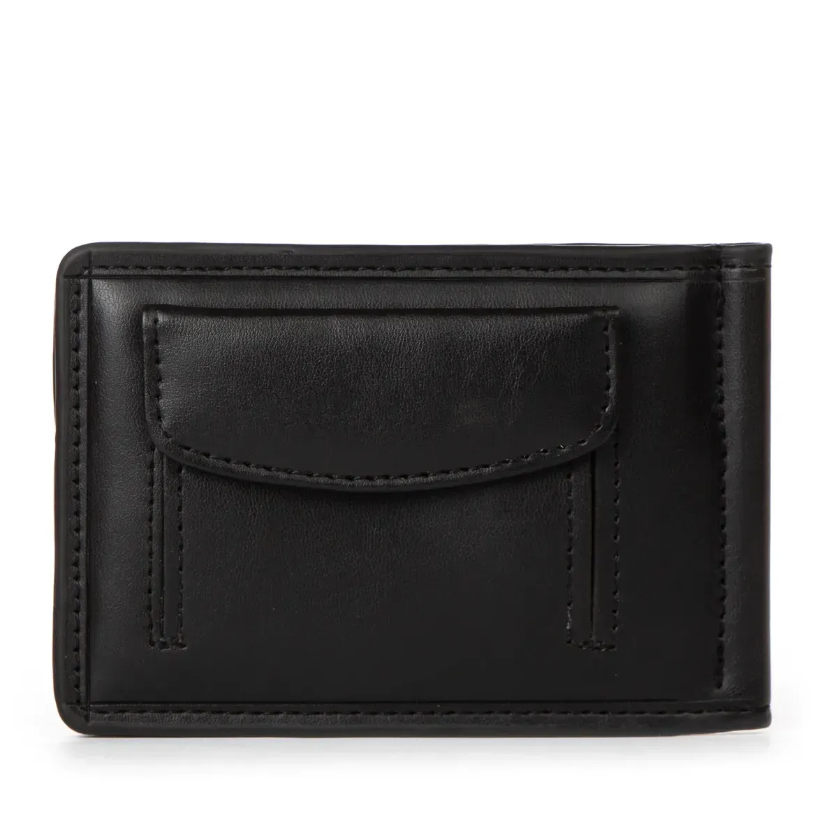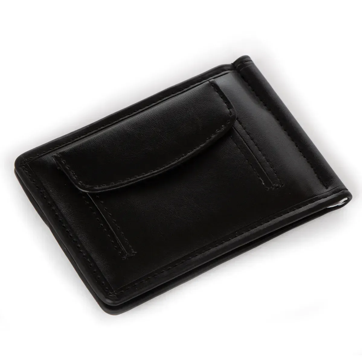 Магнитный зажим для банкнот. На фасаде находится один открытый карман. На обратной стороне есть карман-монетница на кнопке.