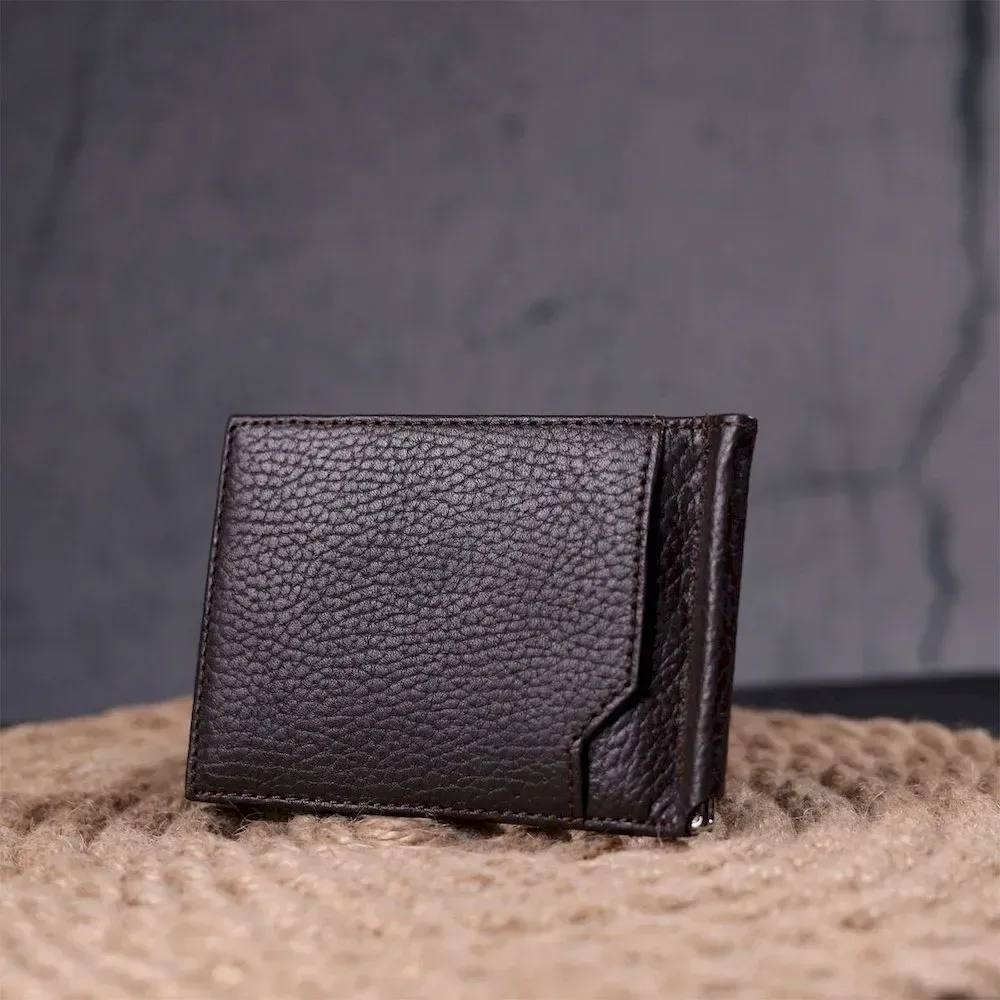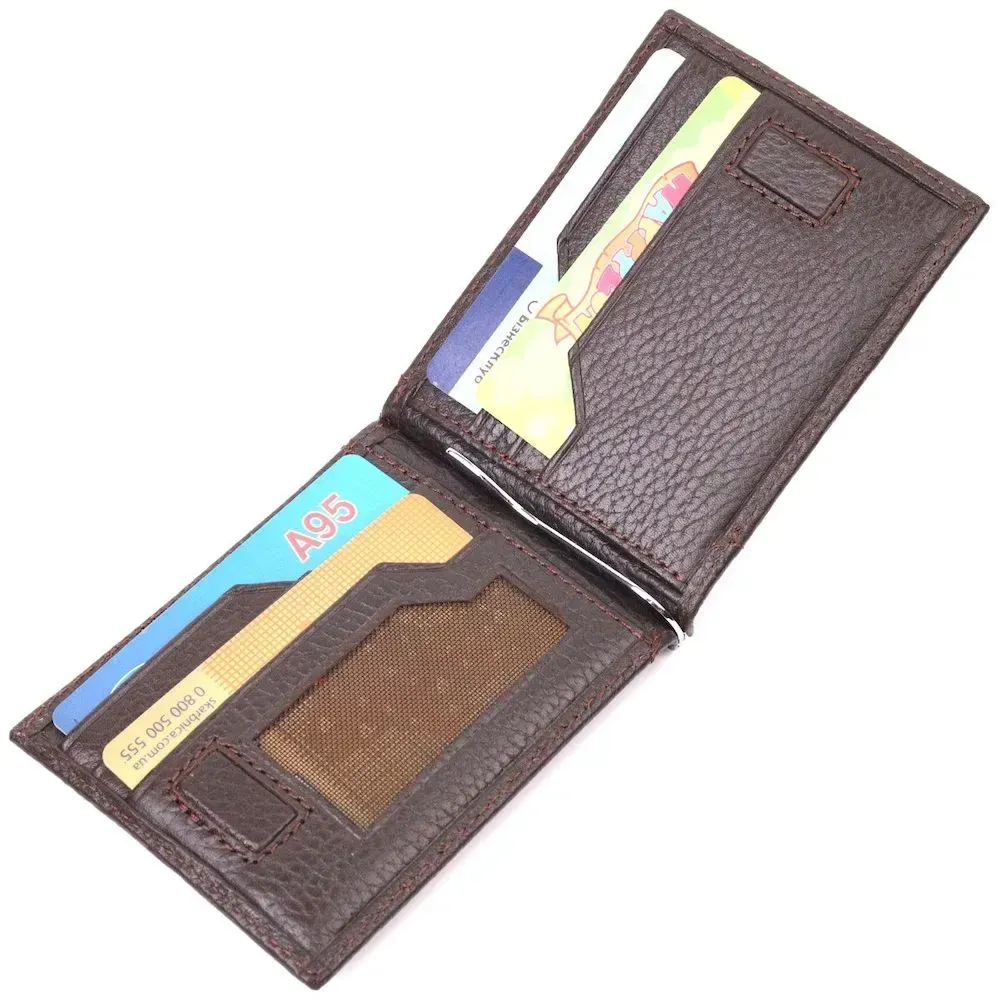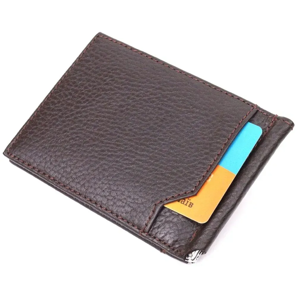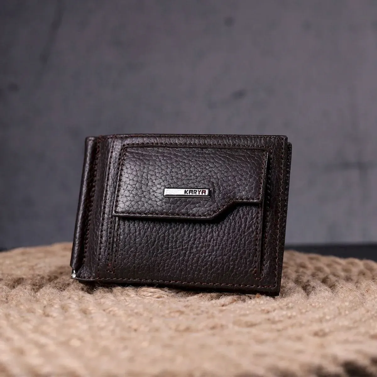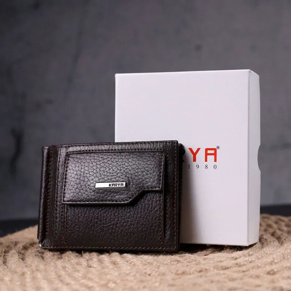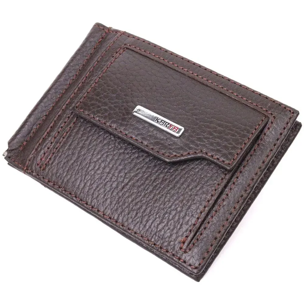 Зажим для мужчин с монетницей из натуральной кожи KARYA 21344 Коричневый