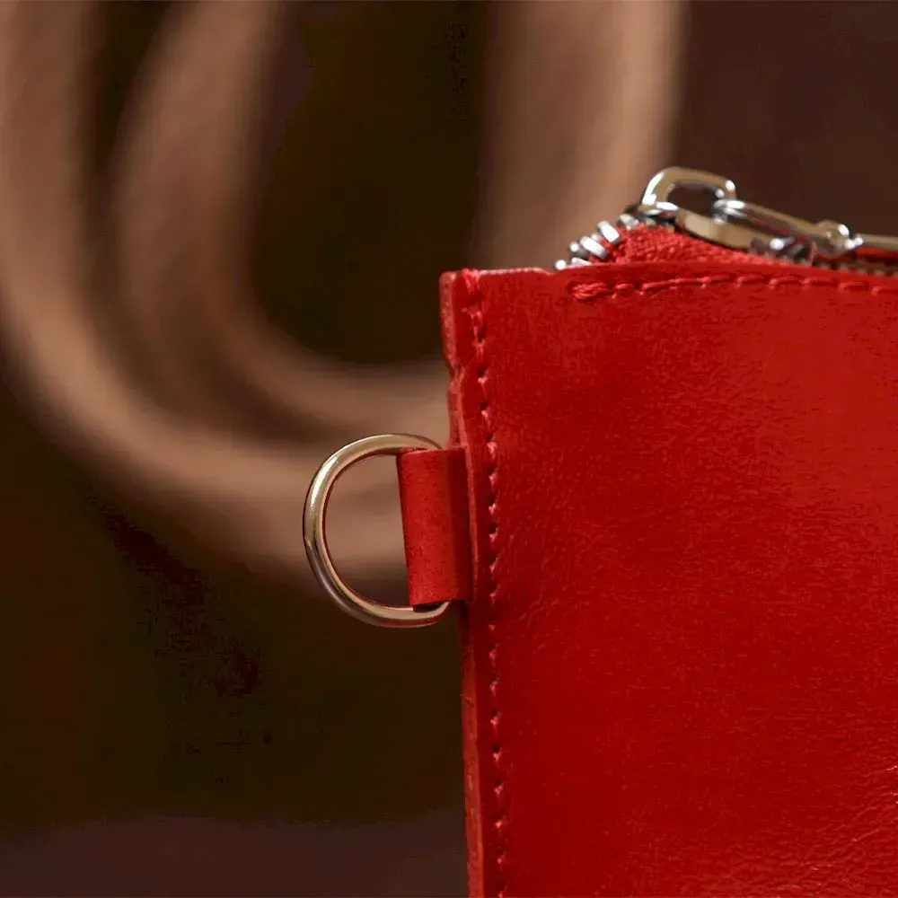 Замечательная и практичная женская косметичка небольшого размера в стильном дизайне. Выполнено изделие из натуральной кожи высокого качества и улучшенными характеристиками эксплуатации. Изделие имеет насыщенный красный цвет с легким переливом и гладкую фактуру. Такой аксессуар необходим каждой женщине, поэтому спешите купить себе или на подарок.