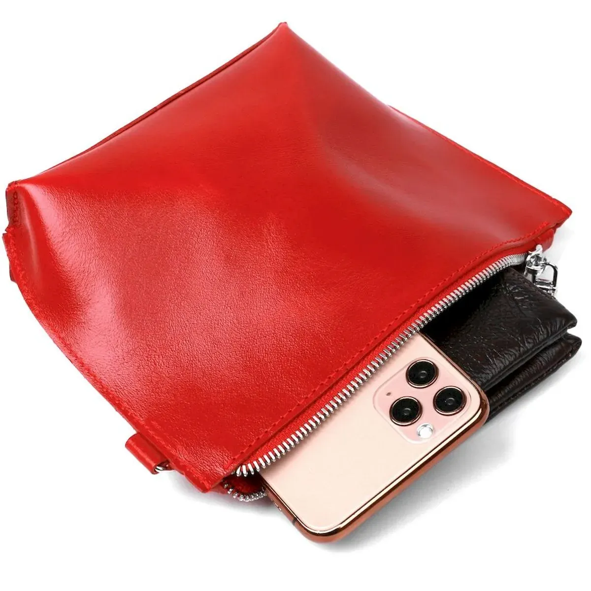 Женская глянцевая косметичка из натуральной кожи Shvigel 16410 Красный