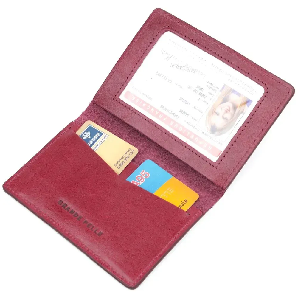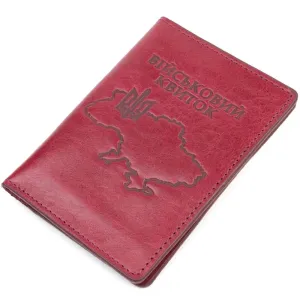 Женская обложка на военный билет из глянцевой кожи Карта GRANDE PELLE 16779 Бордовая