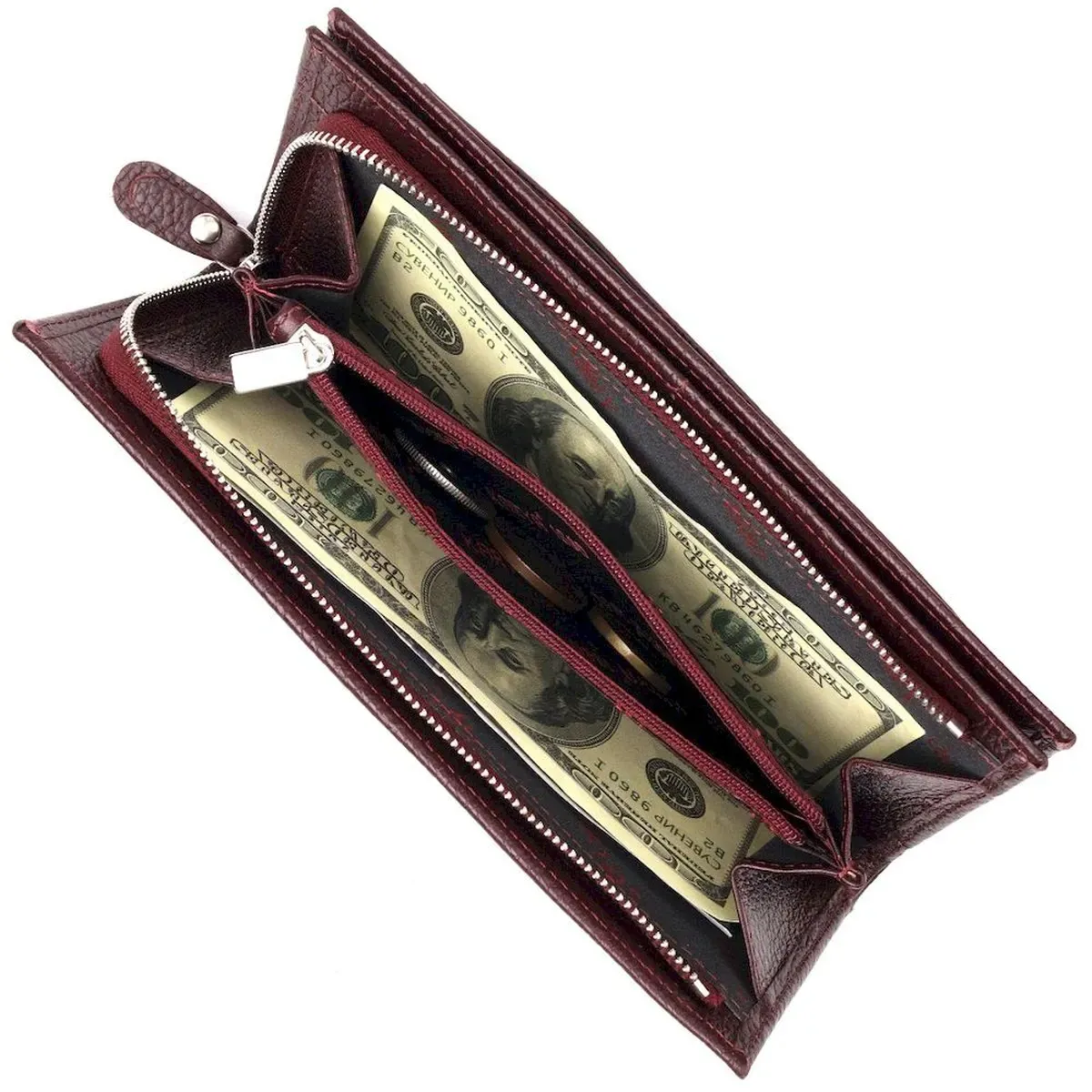 Женский горизонтальный кошелек из натуральной кожи KARYA 21090 Бордовый