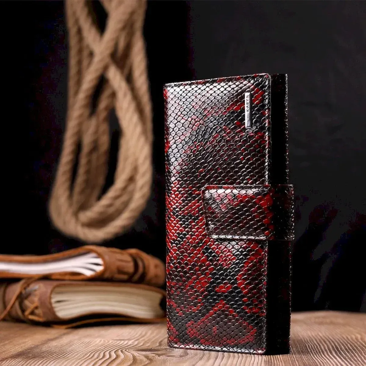 Женский стильный кошелек из натуральной фактурной кожи под змею KARYA 21030 Разноцветный