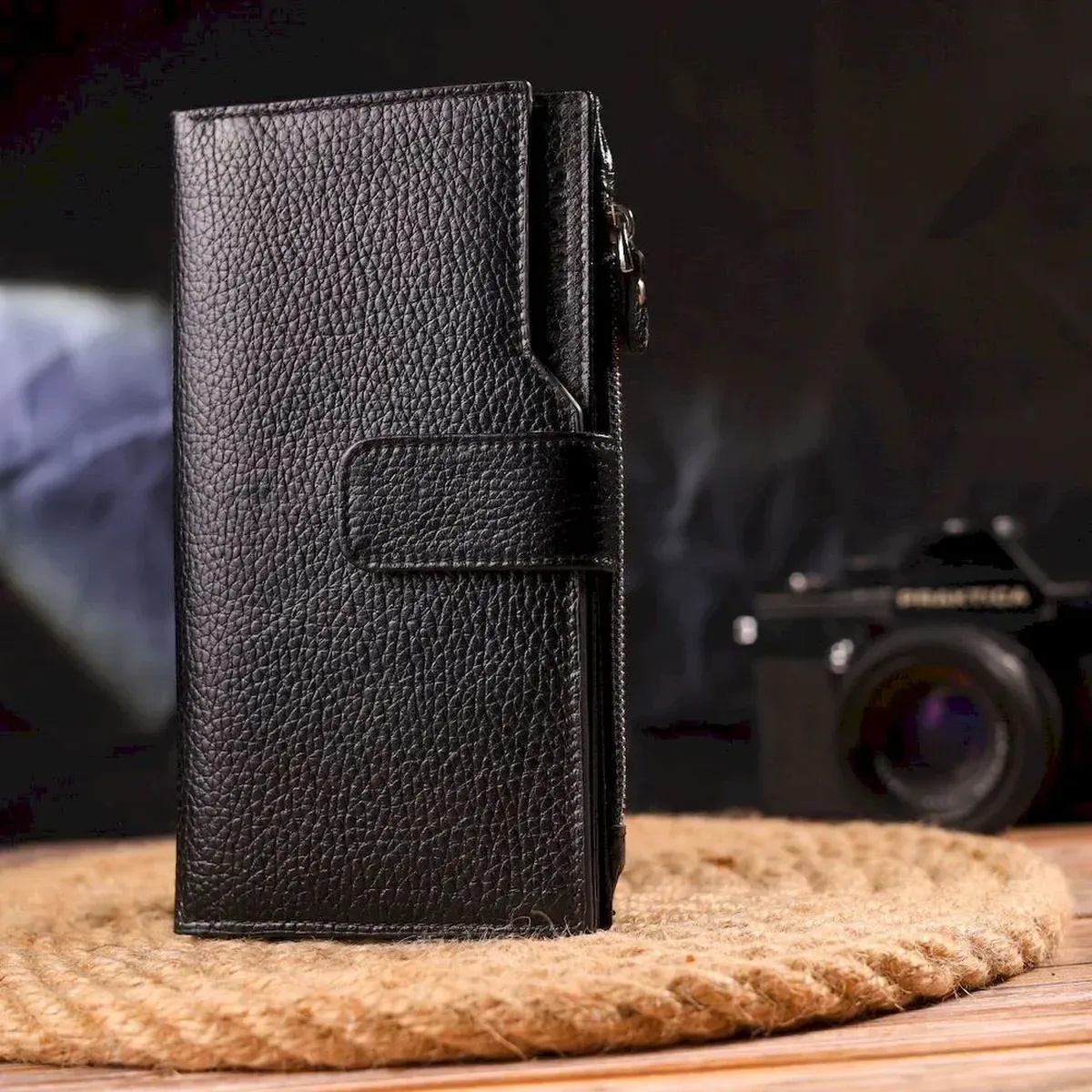 Превосходный женский кошелек, из натуральной кожи. Аксессуар имеет шесть прилегающих карманов, в которые поместятся купюры всех номиналов, вместительную монетницу и двадцать карманов для карточек. Закрывается аксессуар хлястиком на кнопку. Если Вы хотите порадовать и себя и удивить близких, то непеременно покупайте кожаные аксессуары в нашем магазине, качество и цена Вас однозначно порадует.