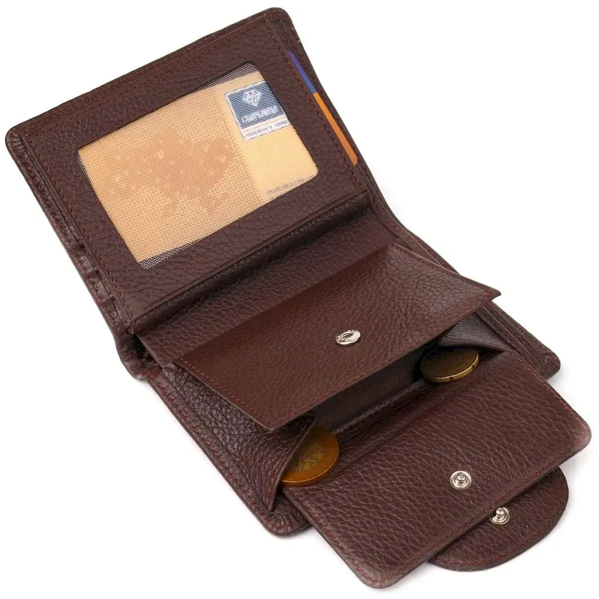 Женский практичный кошелек компактного размера из натуральной кожи. Аксессуар имеет отделение для купюр с перегородкой, монетницу, что закрывается клапаном на кнопку, скрытый карман и семь отсеков для карточек, два из них под сеточкой. Закрывается аксессуар в два сложения хлястиком на кнопку. Качественный кожаный аксессуар всегда считался показателем вкуса и достатка, именно такие изделия представлени в нашем магазине, у нас каждый найдет что-то для себя.