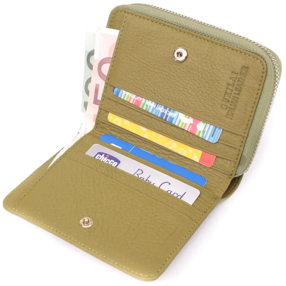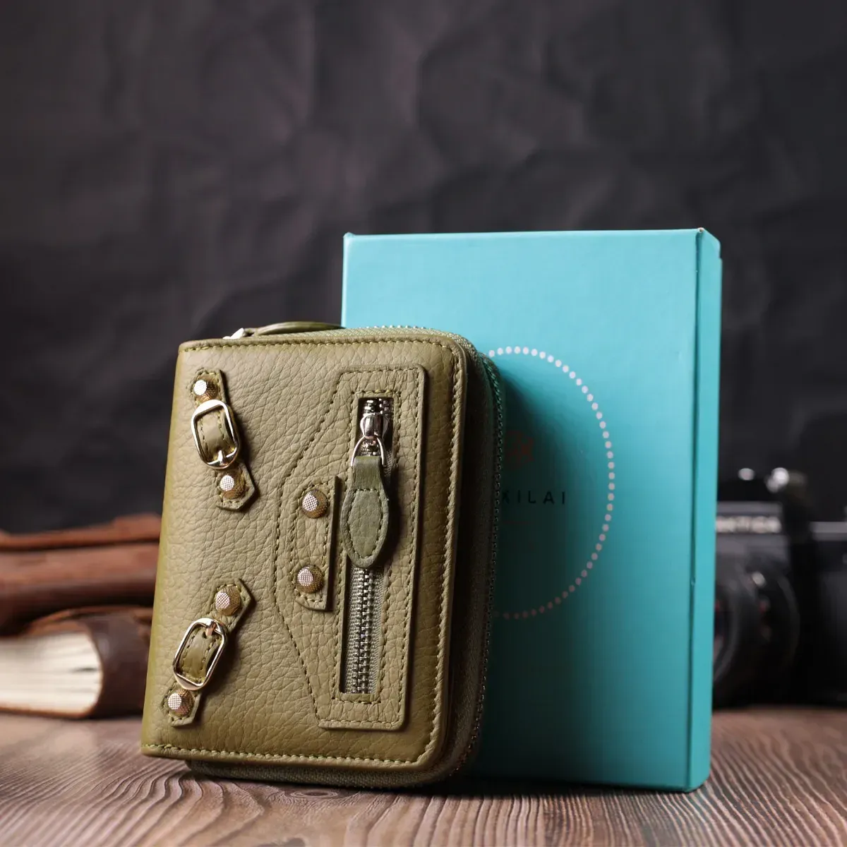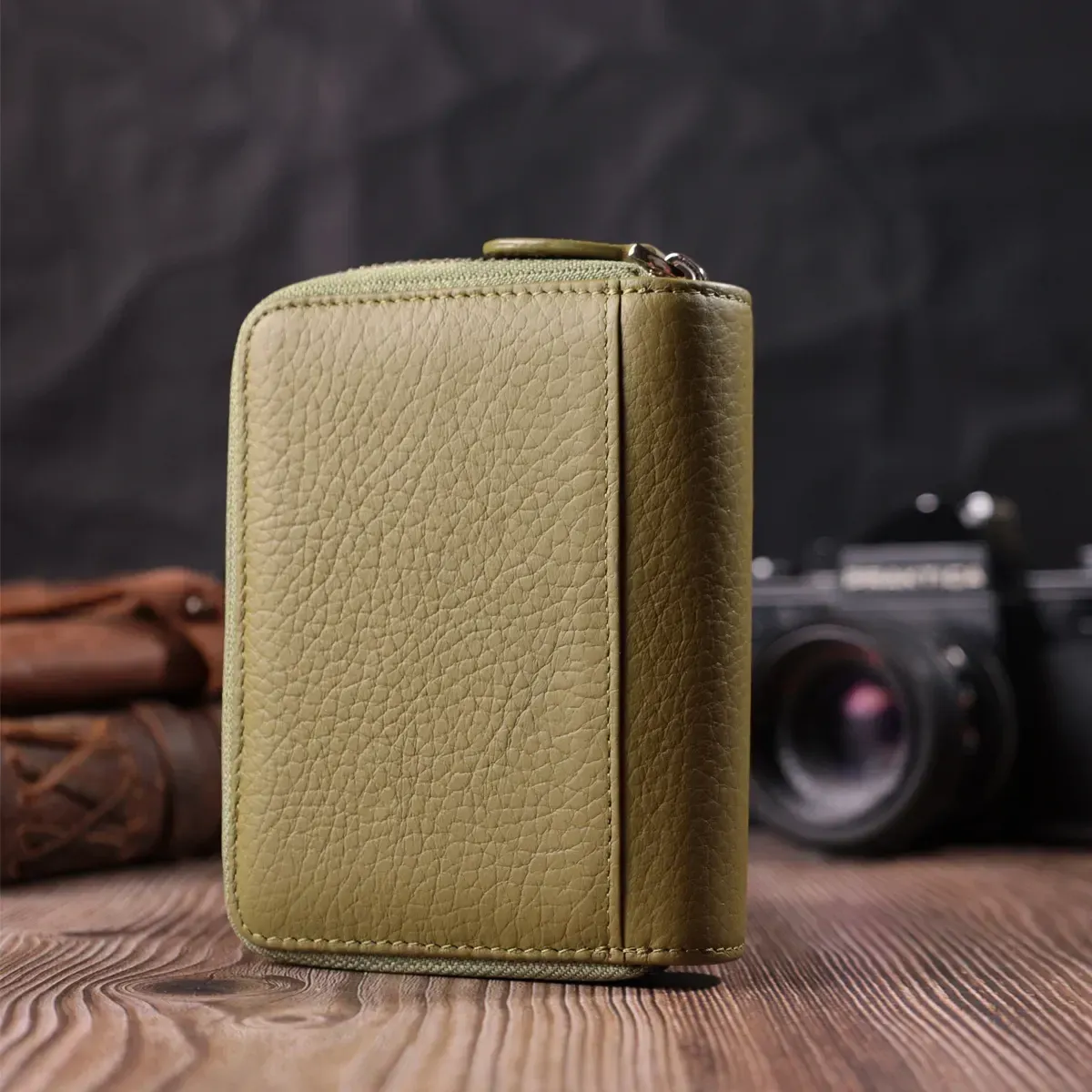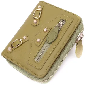 Красивый и стильный компактный женский кошелек из натуральной высококачественной кожи для тех, кто не любит большие громоздкие кошельки, которые часто занимают половину сумки. Данная модель небольшого размера, но имеет практичное и функциональное наполнение. Также отличительной особенностью является красивый оливковый цвет, который очень актуален в этом сезоне.