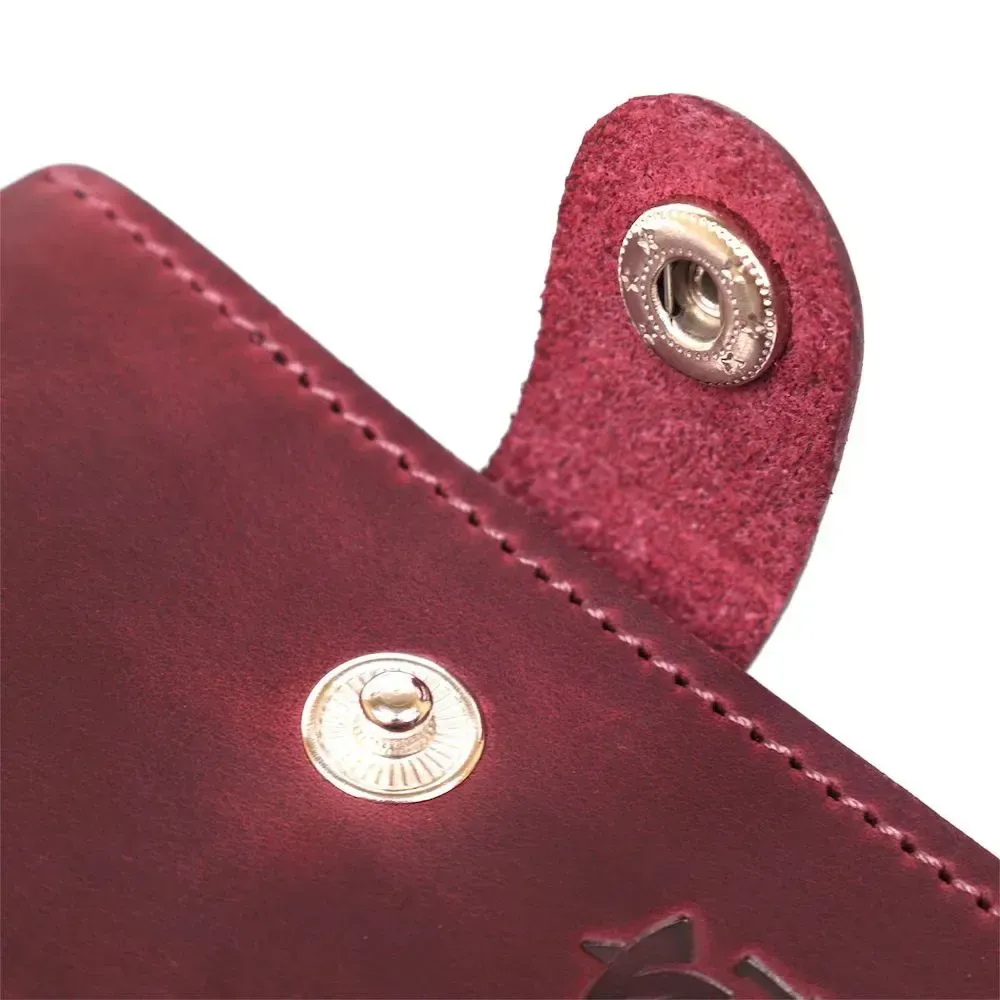 Превосходное винтажное женское портмоне в темно-бордовом цвете, что смотрится очень стильно и красиво. Изготовлено оно из натуральной кожи с повышенной стойкостью к износу. Внутренне наполнение представлено в виде вместительного основного отделения для купюр на всю длину и четырех слотов для пластиковых карточек. Данный аксессуар – отличный подарок любимому человеку.